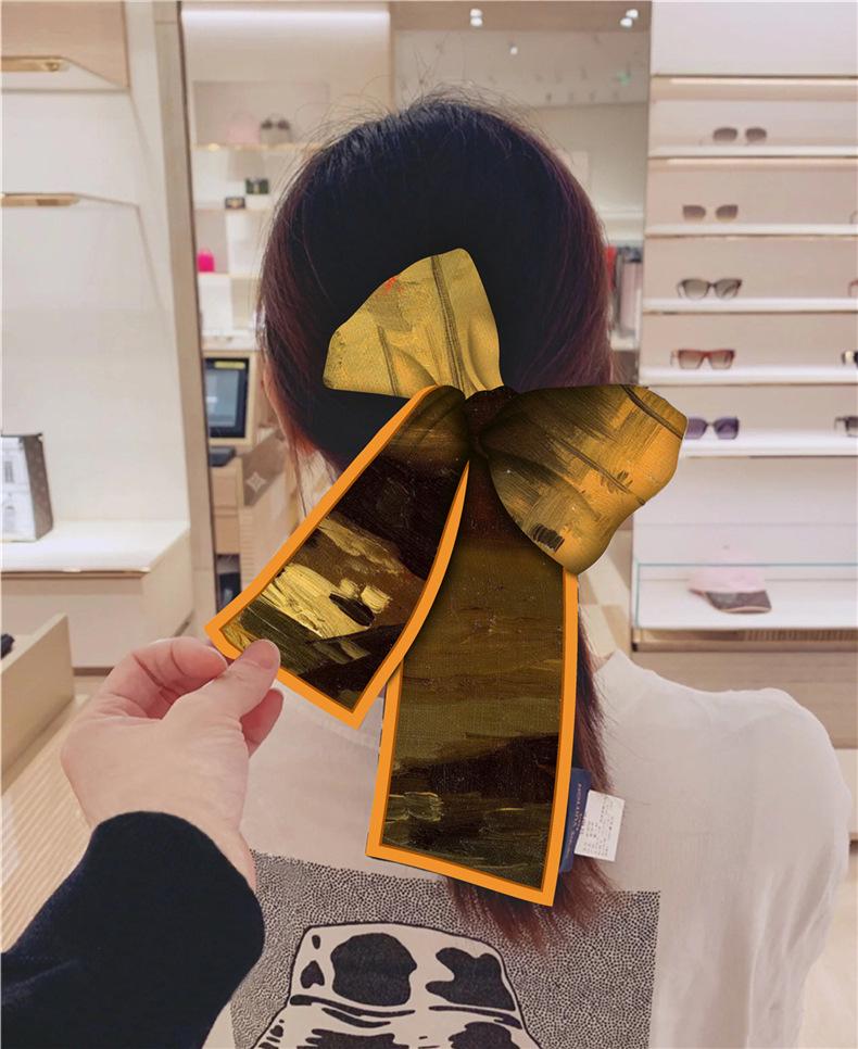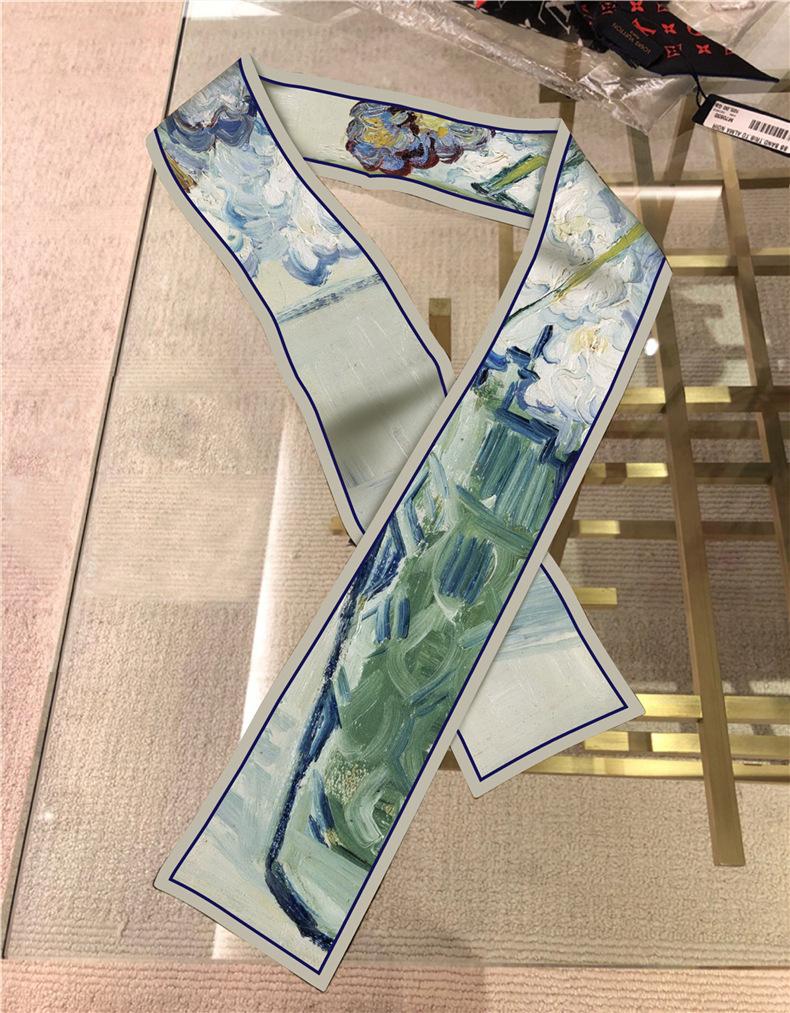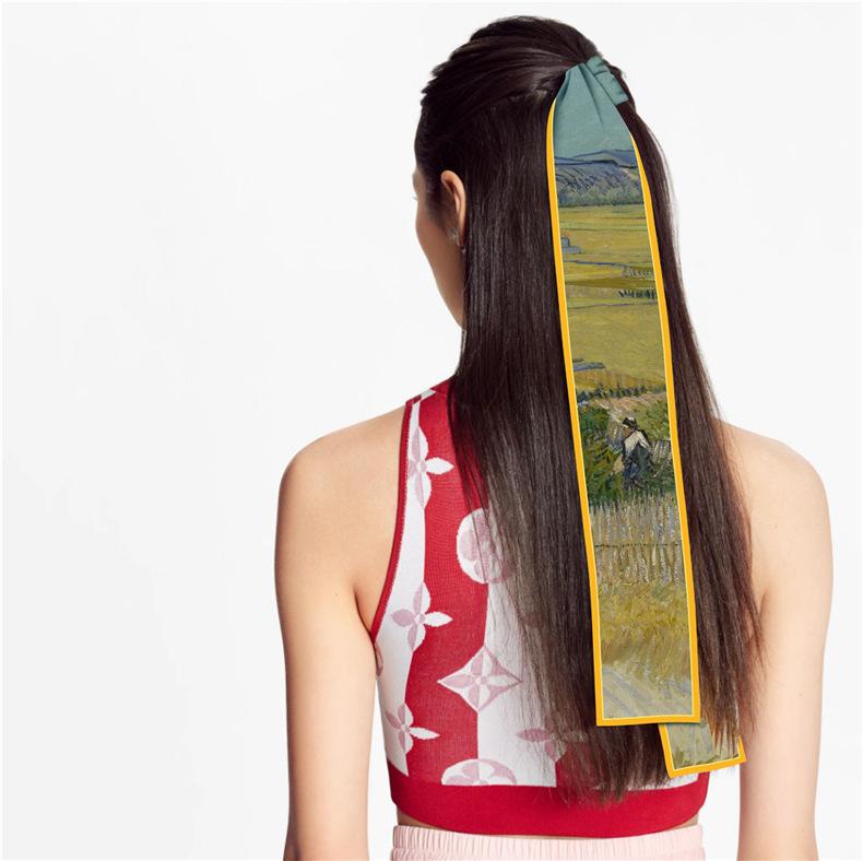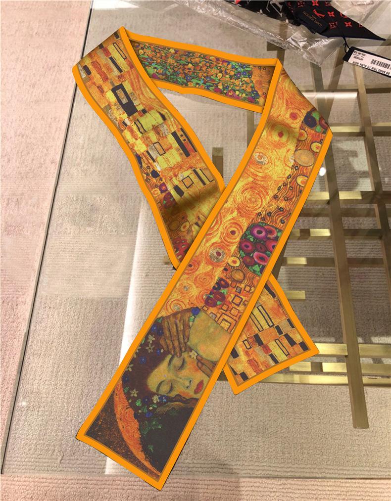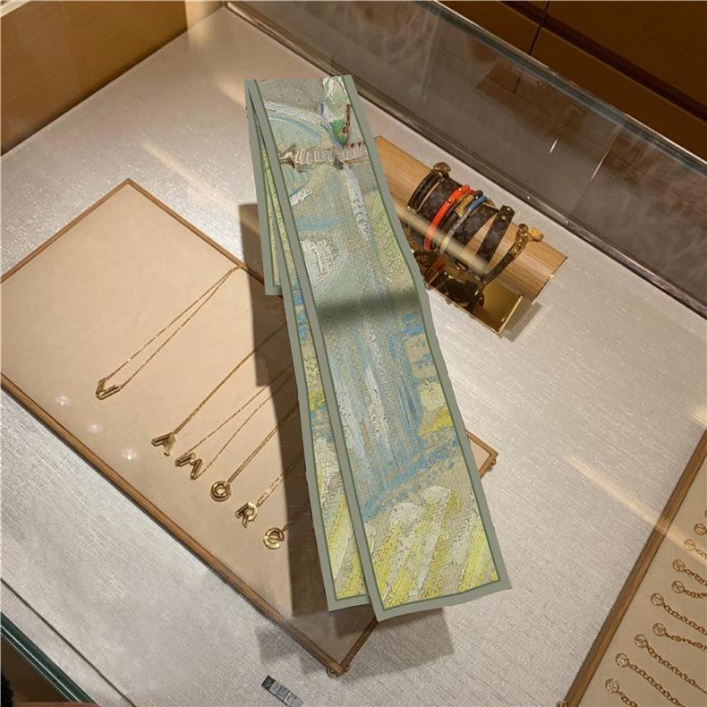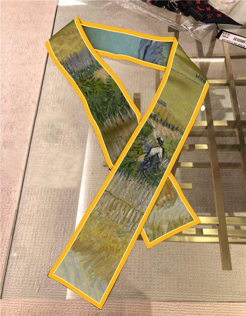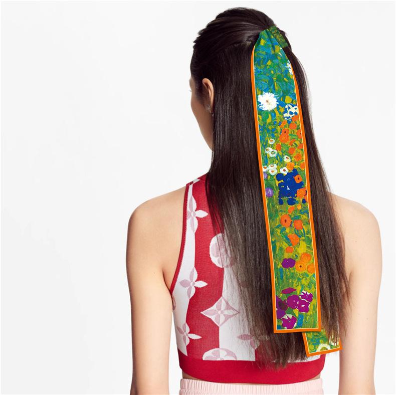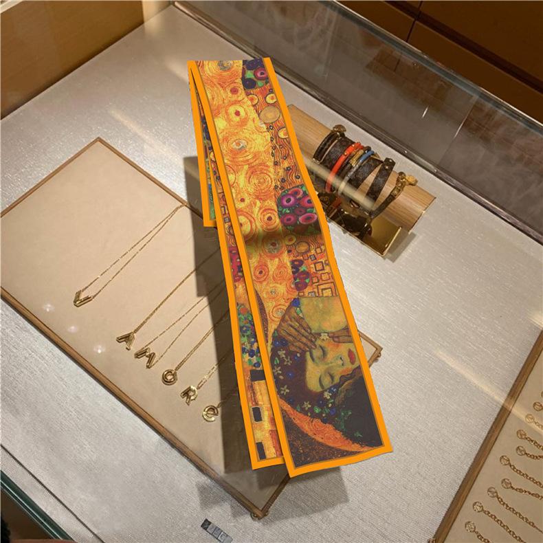 | Bufanda de cinta estilo pintura al óleo, versión coreana, fina y estrecha, larga, de imitación de seda, banda para el cabello decorativa de moda femenina, venta al por mayor |
