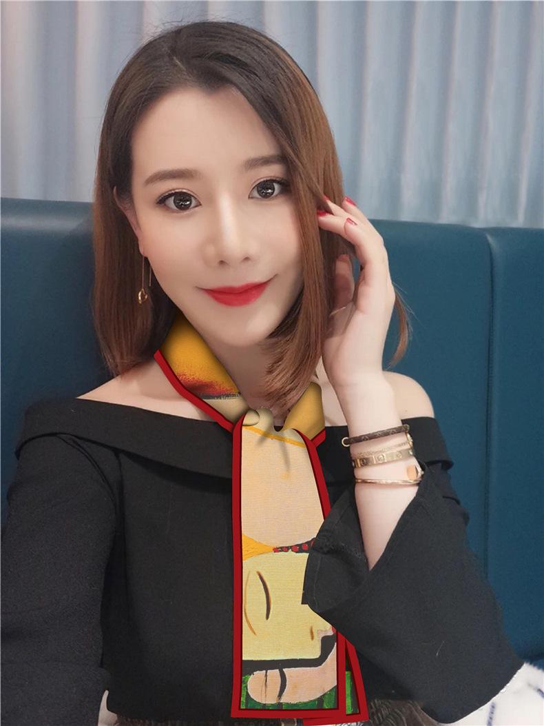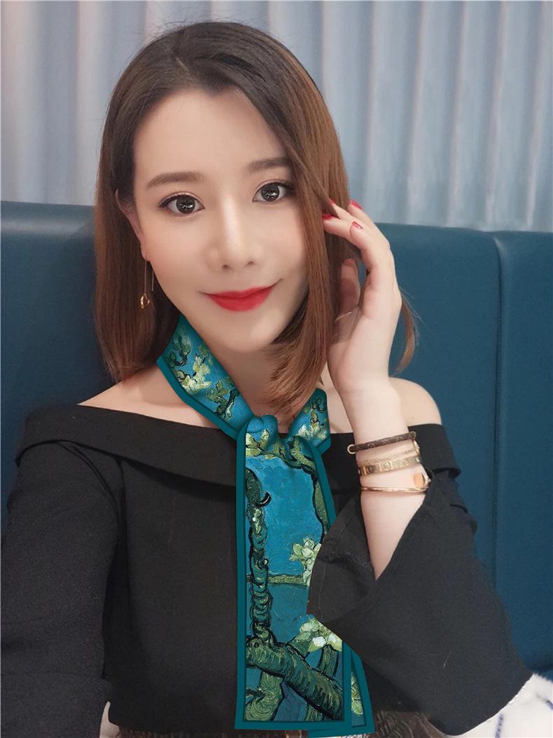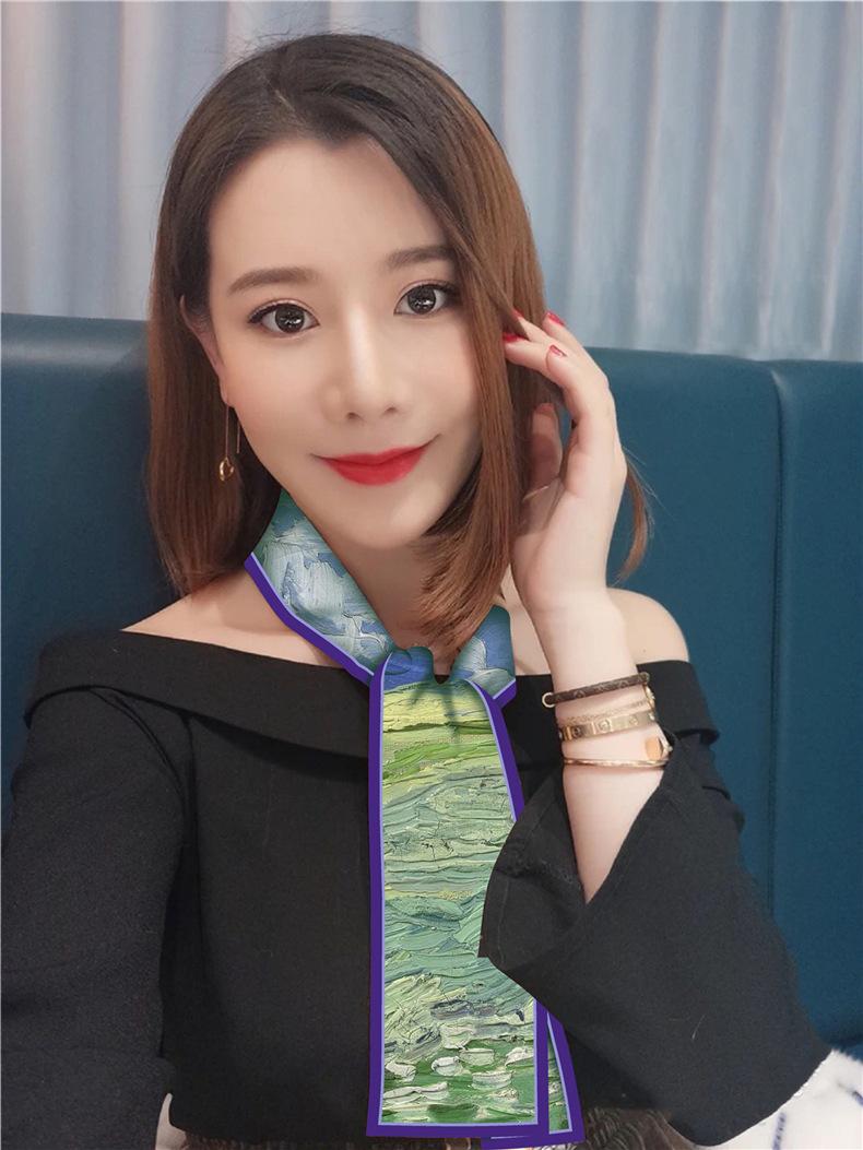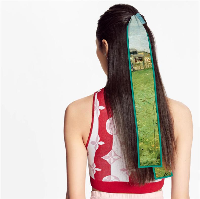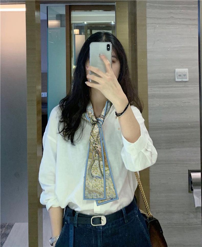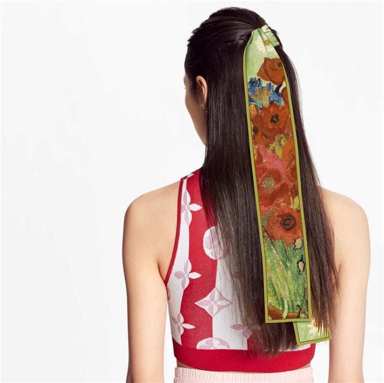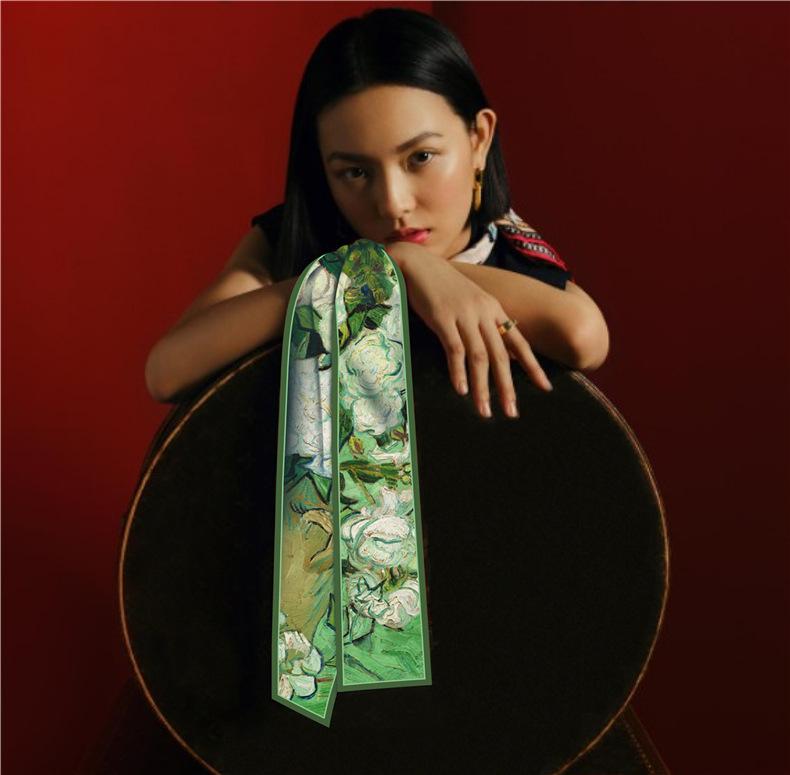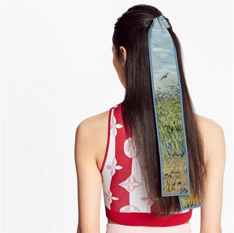 | Bufanda de cinta estilo pintura al óleo, versión coreana, fina y estrecha, larga, de imitación de seda, banda para el cabello decorativa de moda femenina, venta al por mayor |