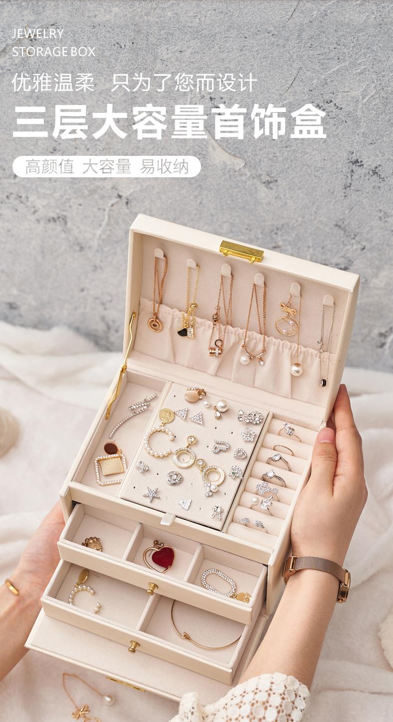 Joyero con cajón de tres capas, joyero creativo, pendientes, joyero vintage con cerradura