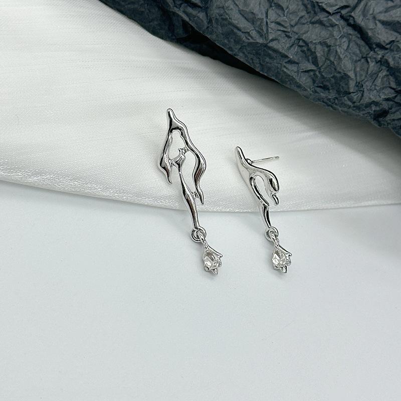 Pendientes de gota de agua con diseño asimétrico de viento frío y personalidad, pendientes de lujo ligeros y de nicho, pendientes con sentido avanzado.