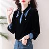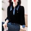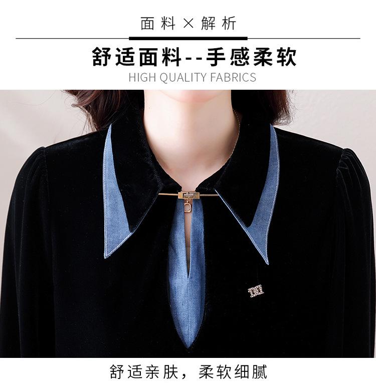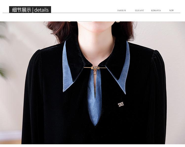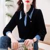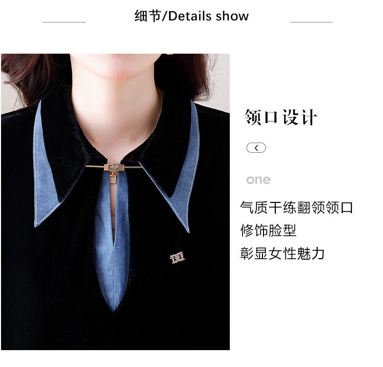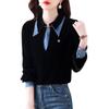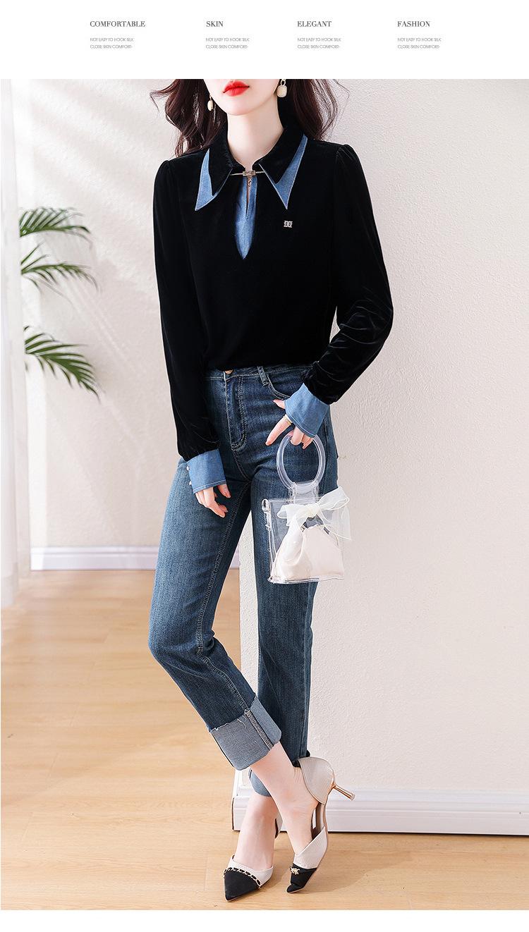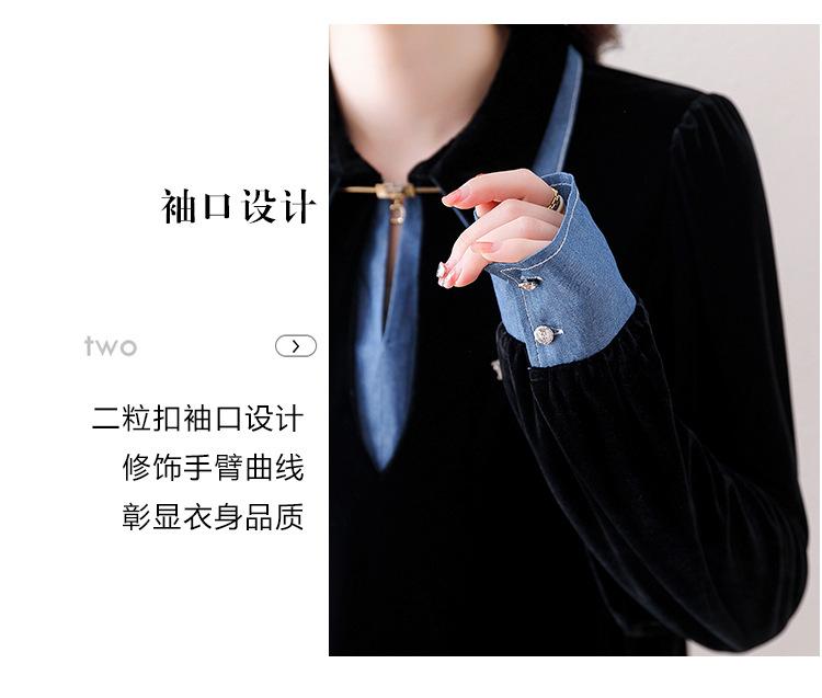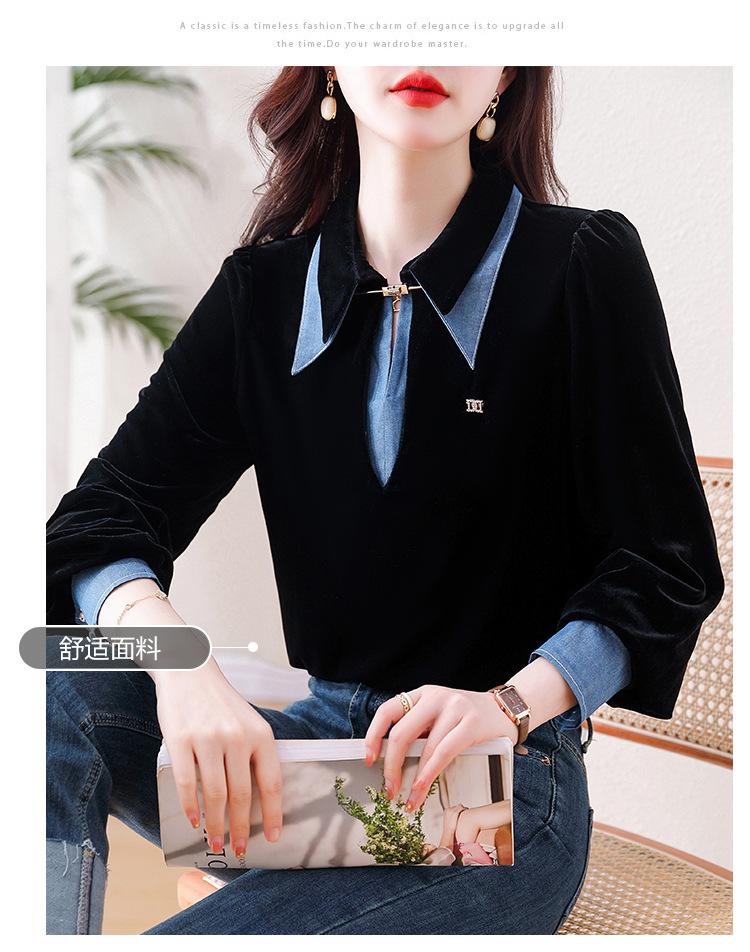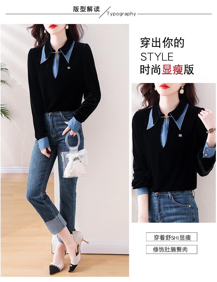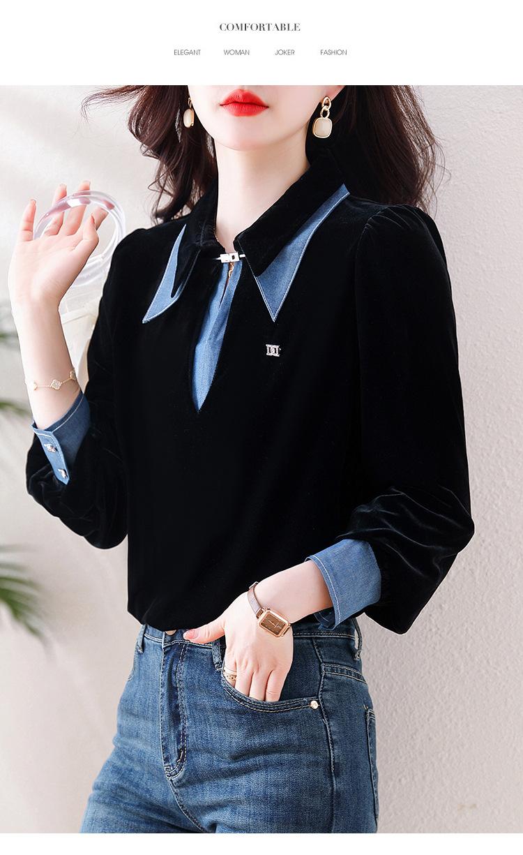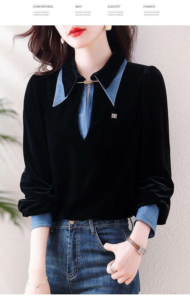 Compra Camisa de dos piezas falsas estilo coreano para mujer 2023 otoño nuevo diseño nicho Top de terciopelo con costuras de mezclilla al por mayor en Joom.pro