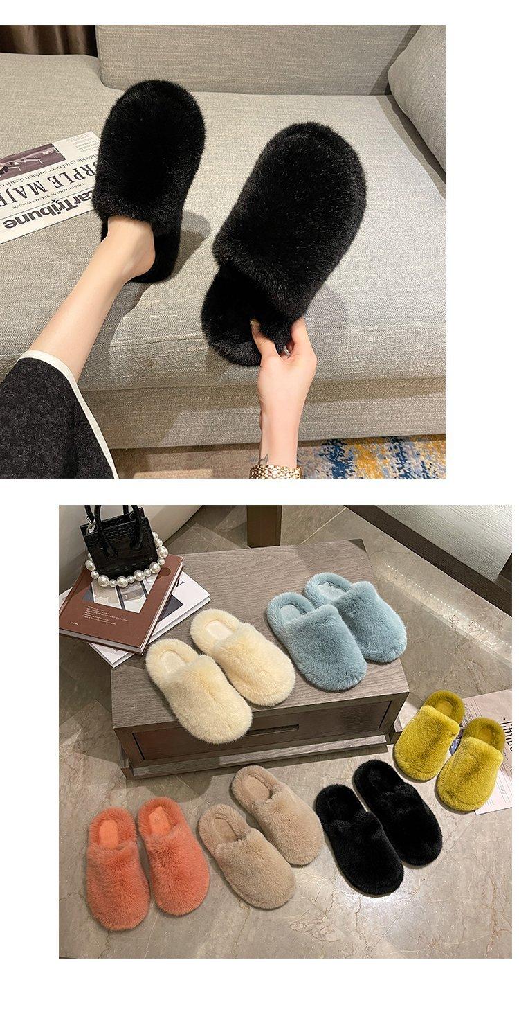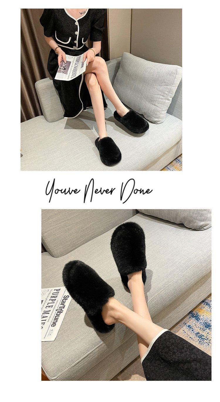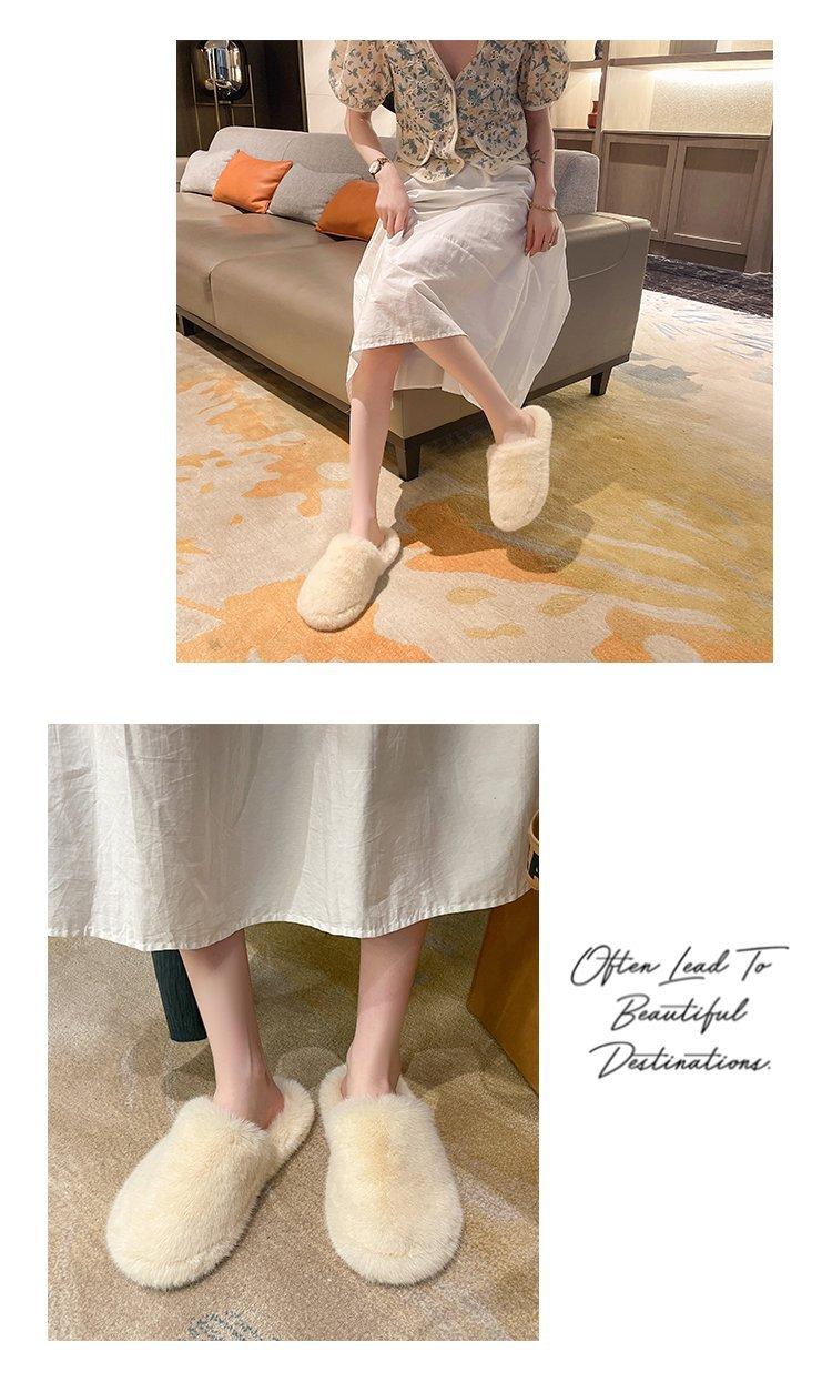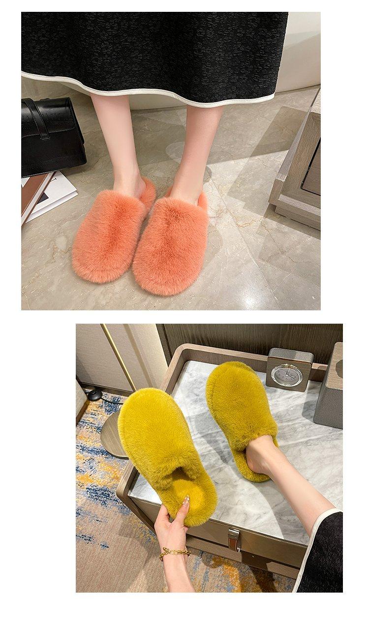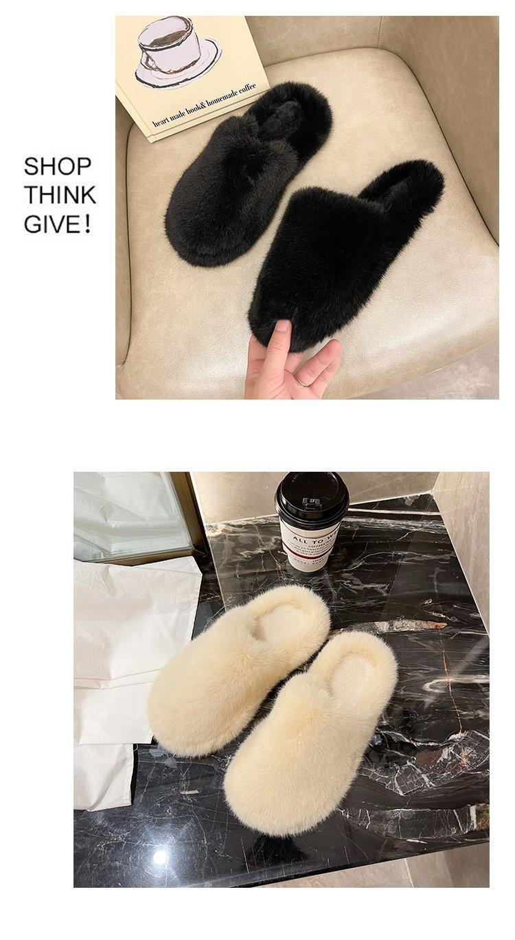 Pantuflas Exteriores de Felpa para Casa para Mujer 2025 Otoño e Invierno Nuevo Estilo Coreano Simple Moda Suela Suave Cómodas Zapatillas Peludas Perezosas