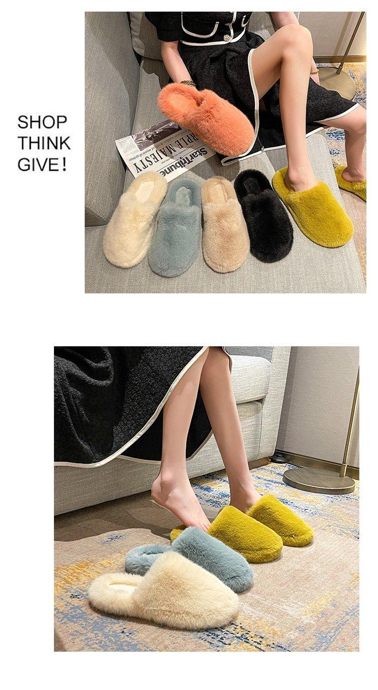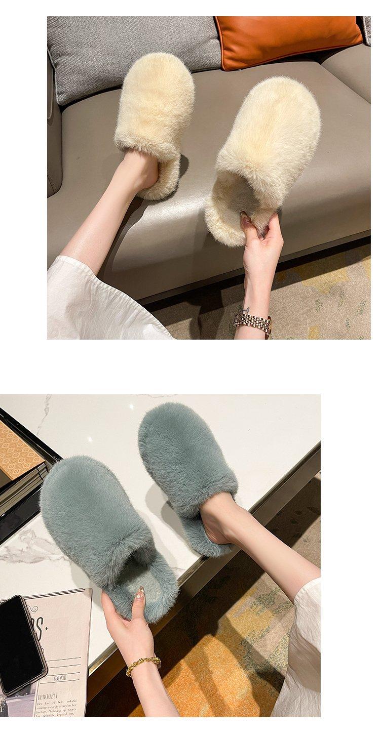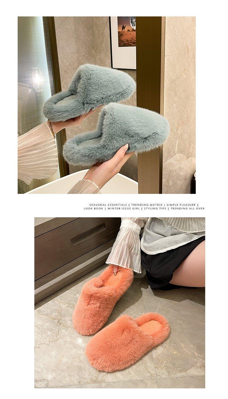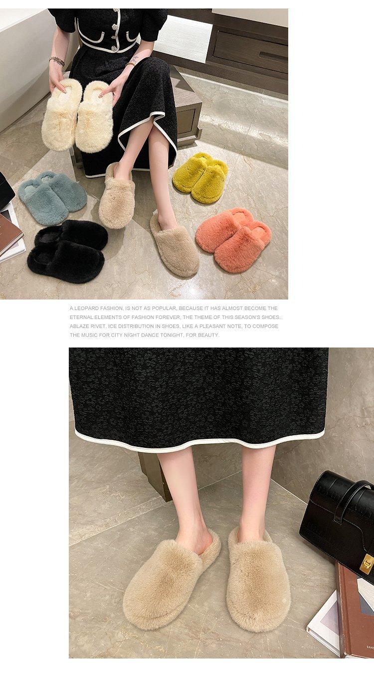 Pantuflas Exteriores de Felpa para Casa para Mujer 2025 Otoño e Invierno Nuevo Estilo Coreano Simple Moda Suela Suave Cómodas Zapatillas Peludas Perezosas