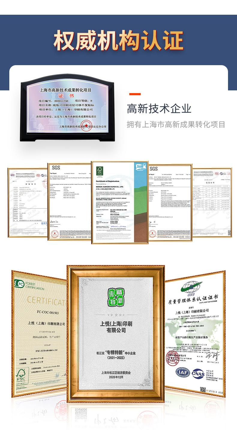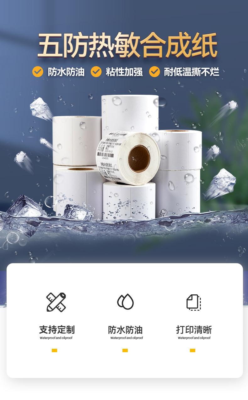 Papel térmico sintético Shangyue resistente al desgarro a baja temperatura, papel de impresión de etiquetas térmicas, papel térmico a prueba de congelación y almacenamiento en frío.