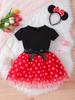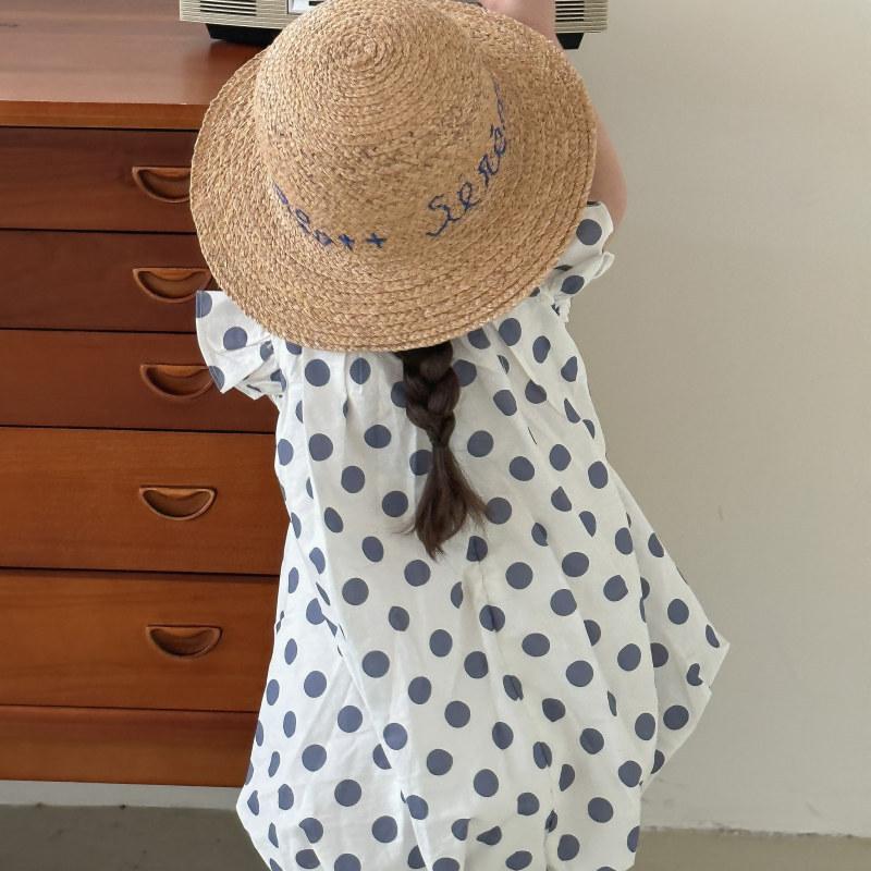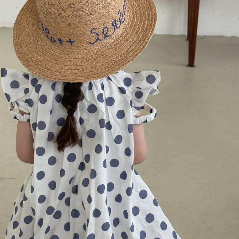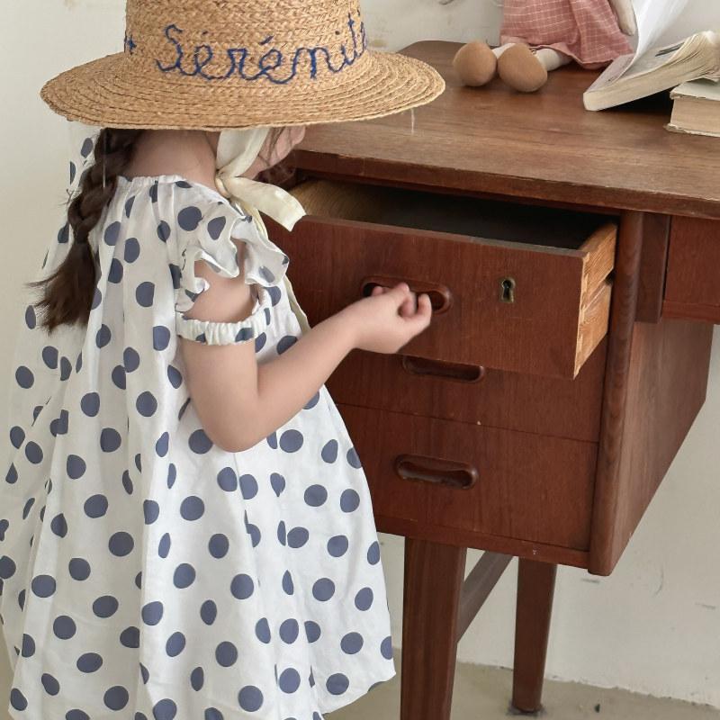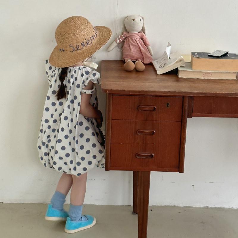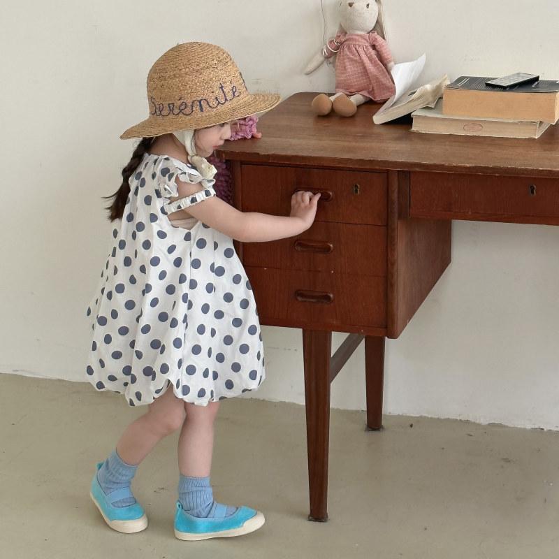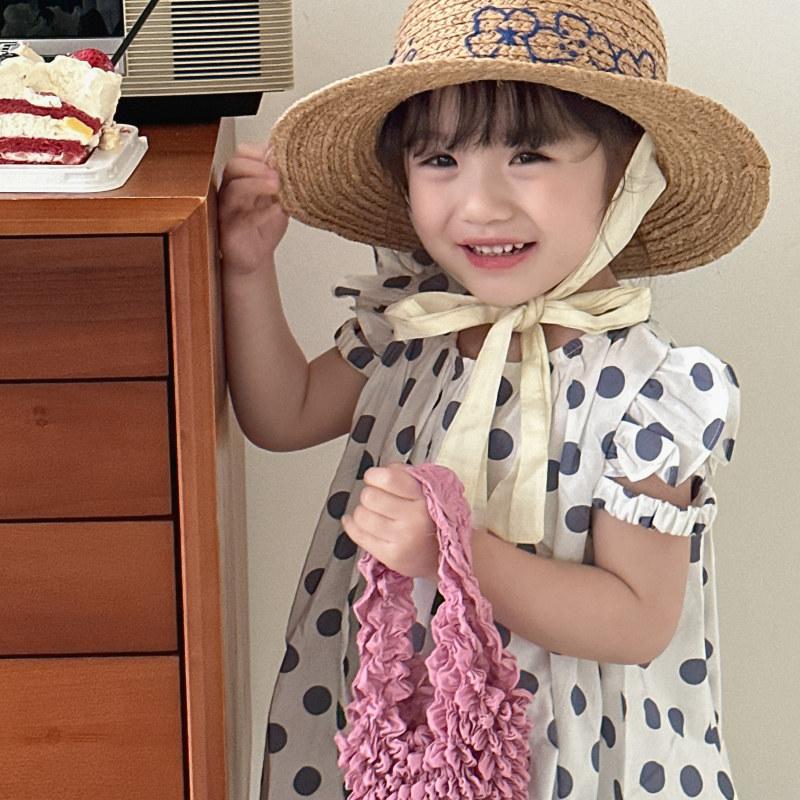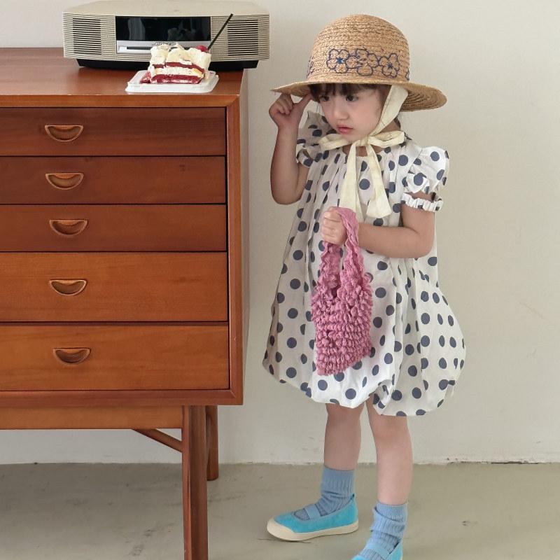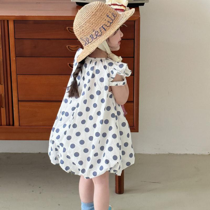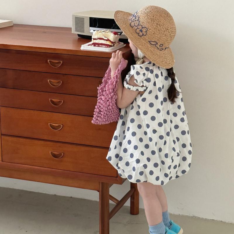 Vestido para Niñas Ropa Coreana para Niños 2024 Verano Nuevo Vestido de Lunares para Niña Pequeña Vestido de Princesa de Manga Abullonada para Niños Pequeños y Medianos
