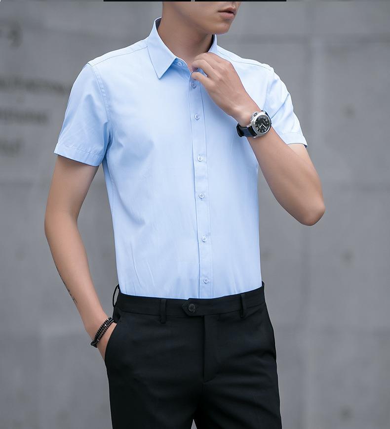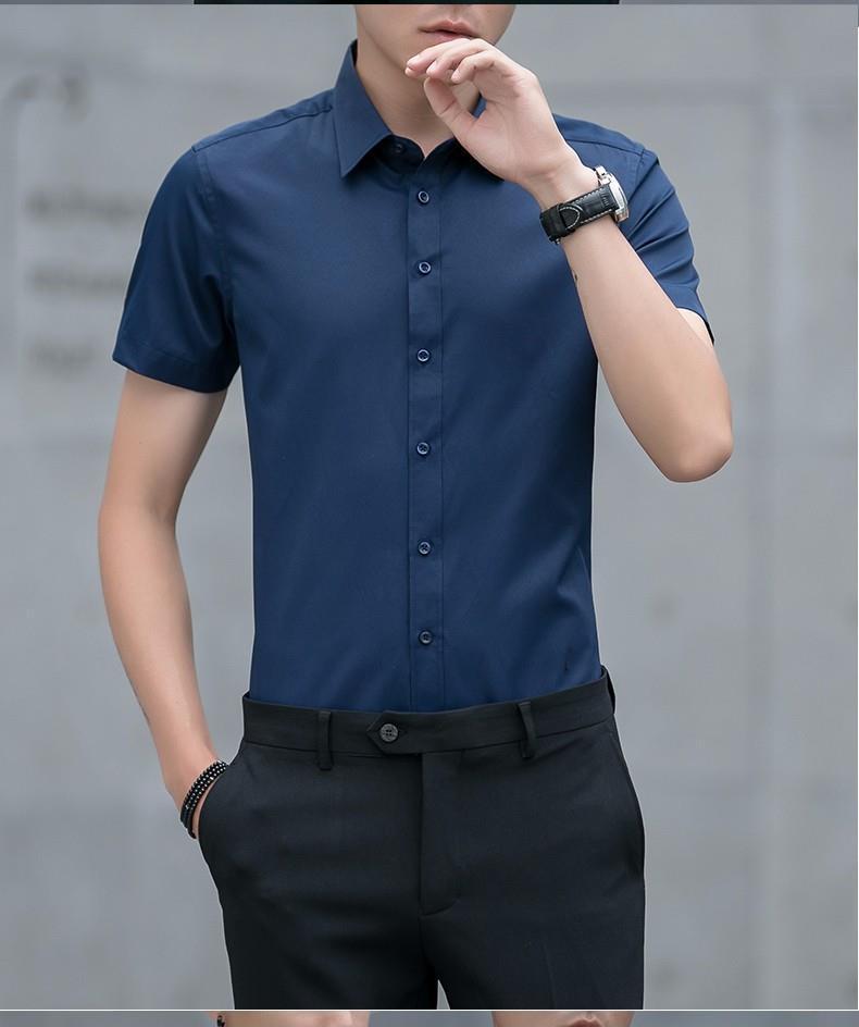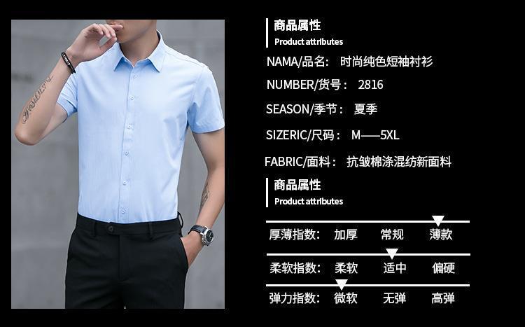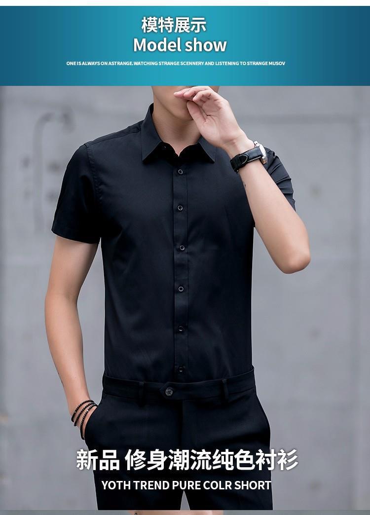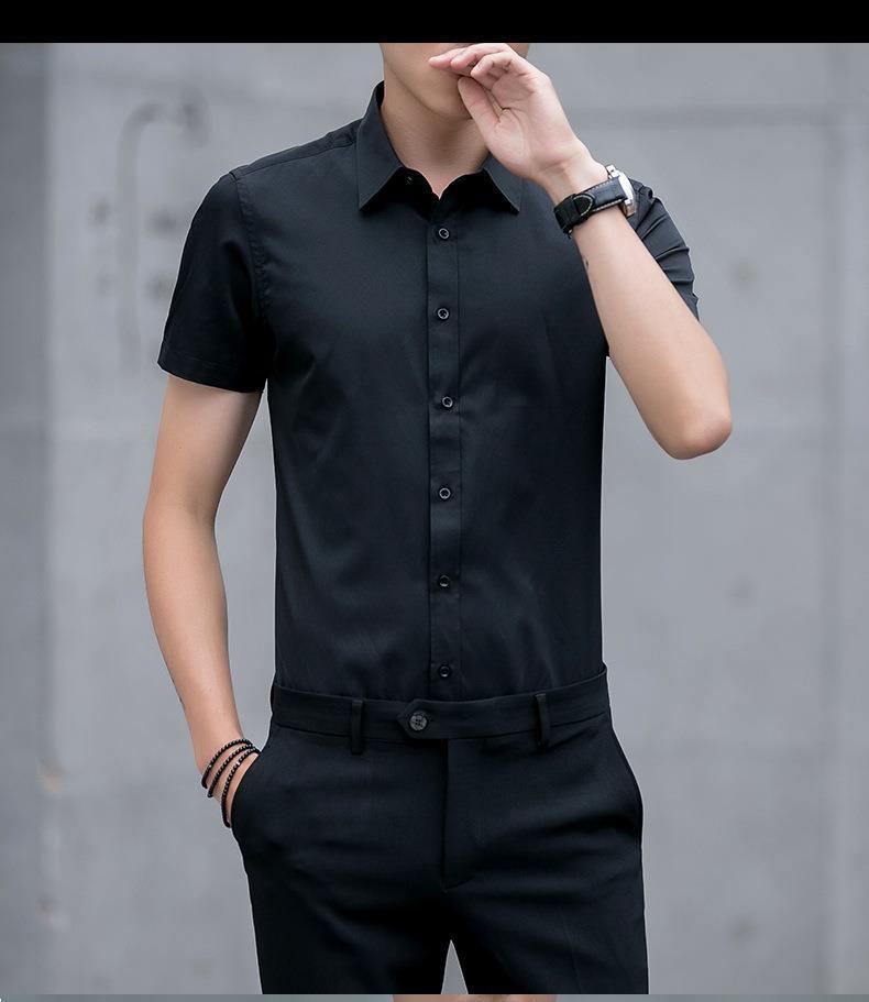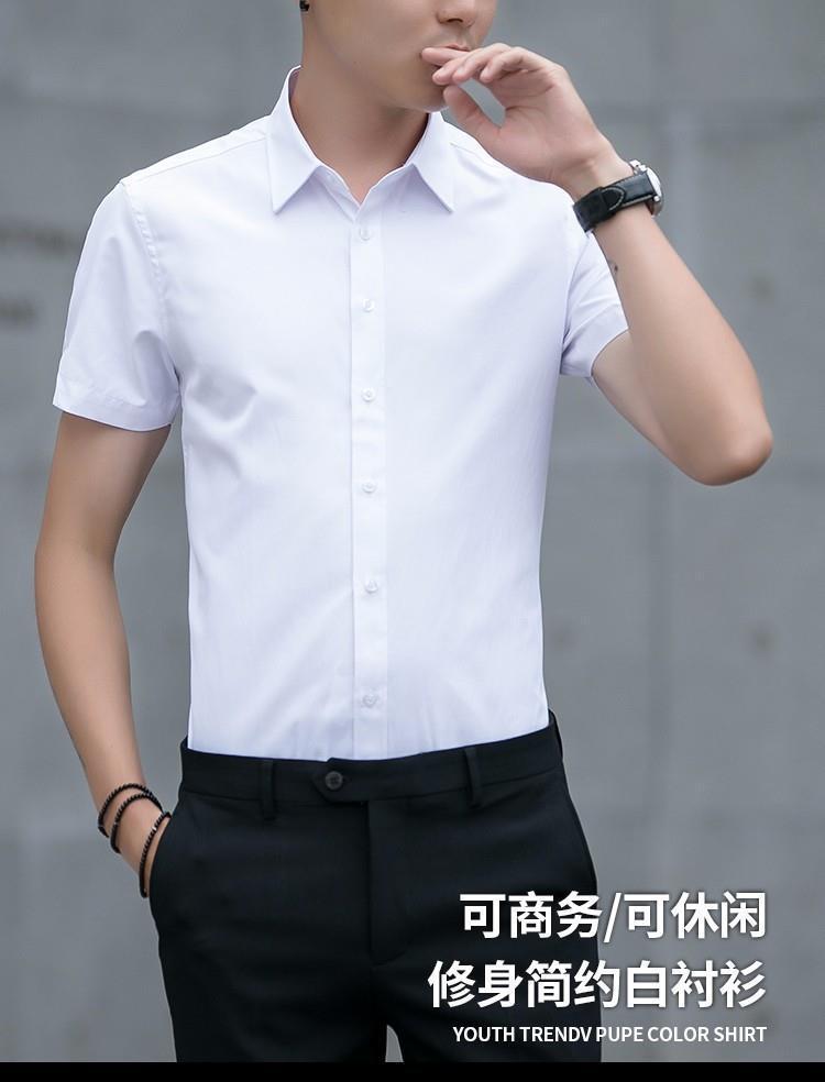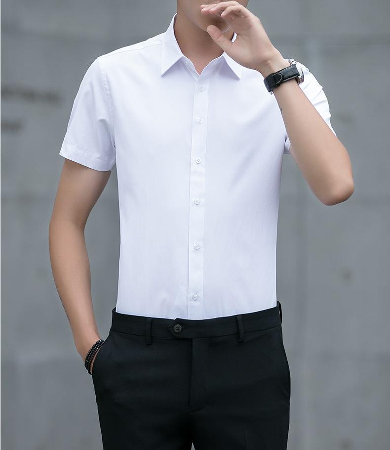 Camisa blanca de manga corta para hombre, sin planchado, corte entallado, antiplisado, ropa de trabajo de negocios, ropa formal profesional de otoño, camisa larga para hombre