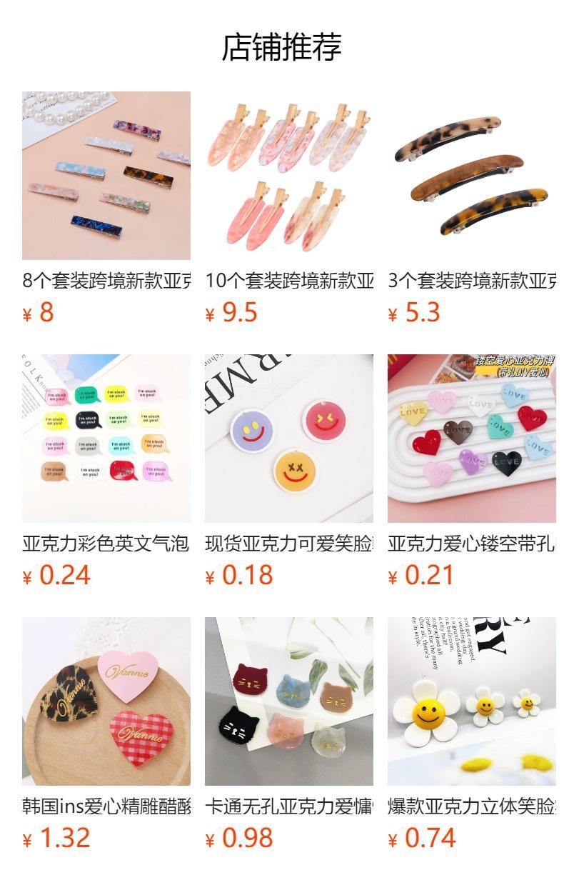 Venta directa de fábricaAdmite todo tipo deAcrílico,ácido acéticoaccesorios para el cabello,Accesorios, accesorios colgantespor encargo,concentrarse encomercio exteriorDesarrollo de productos. ¡Bienvenidos a consultar!