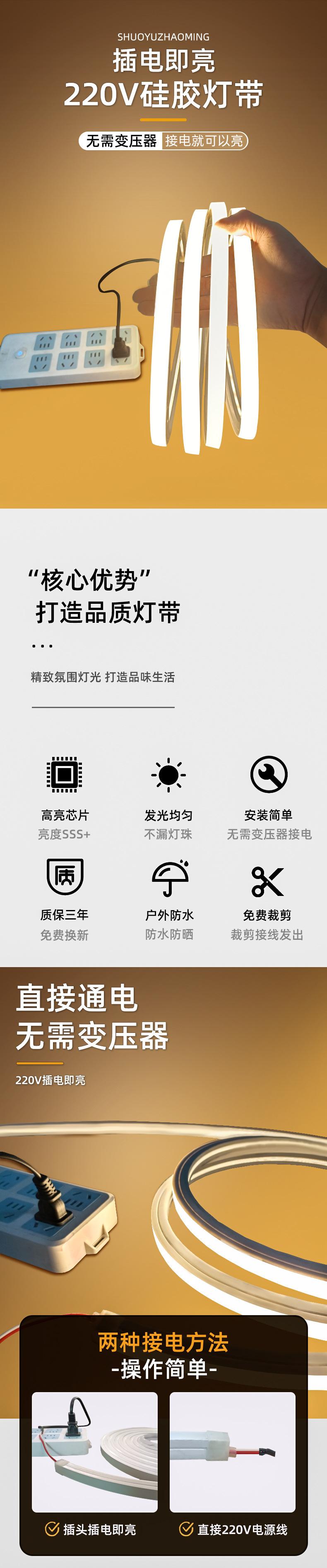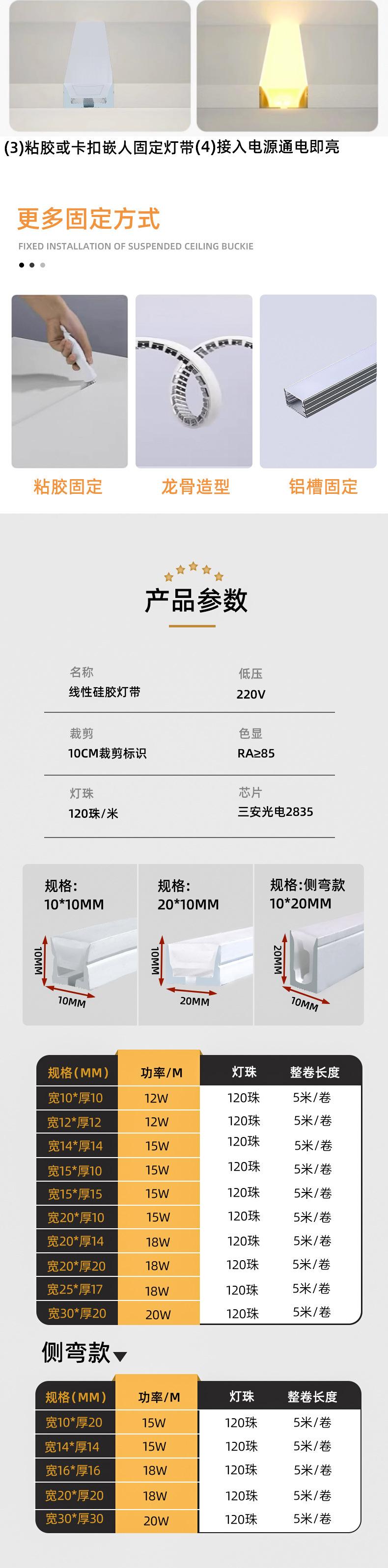 Tira de luz de silicona de alto voltaje de 220 V, tira de luz suave LED, luz lineal empotrada impermeable para exteriores de montaje abierto con ranura