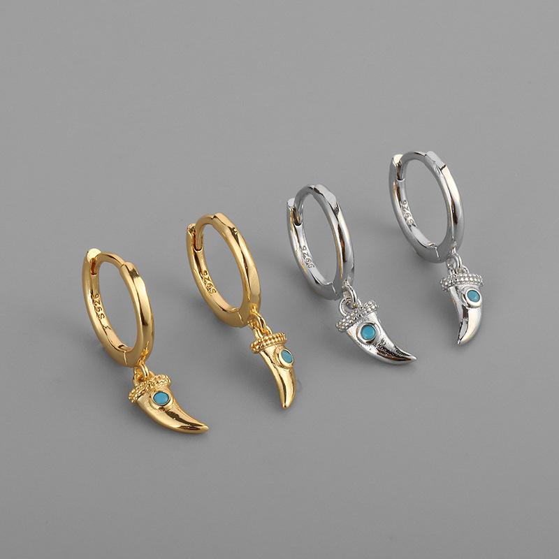 Spike Green Zircon Earrings-Gold, Wolf Green Zircon Earrings-Platinum