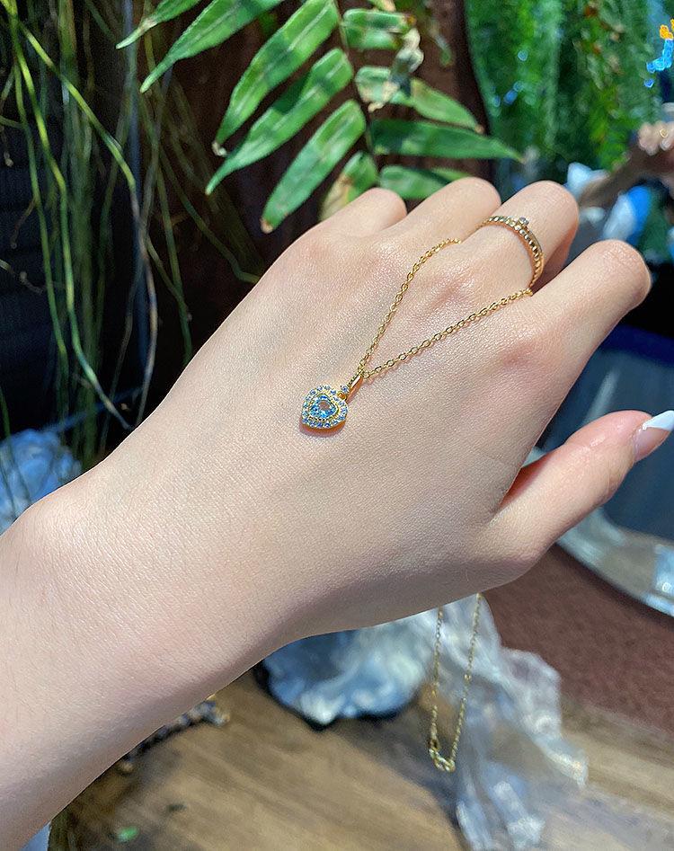 Diseño Nicho Collar de Cristal Rosa Collar de Aguamarina Collar de Diamante Amor Amor Resistencia al Agua Aumenta la Confianza