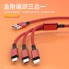 Cable de datos trenzado de nailon de uno a tres cabezales, 3 A, carga súper rápida, tres en uno, línea de carga para teléfono móvil, logotipo, pequeño regalo