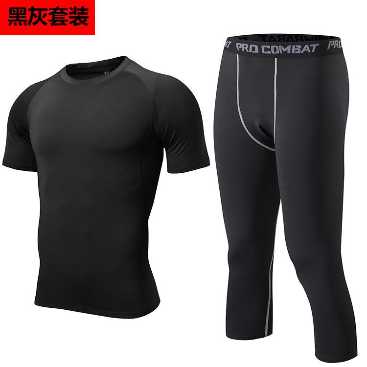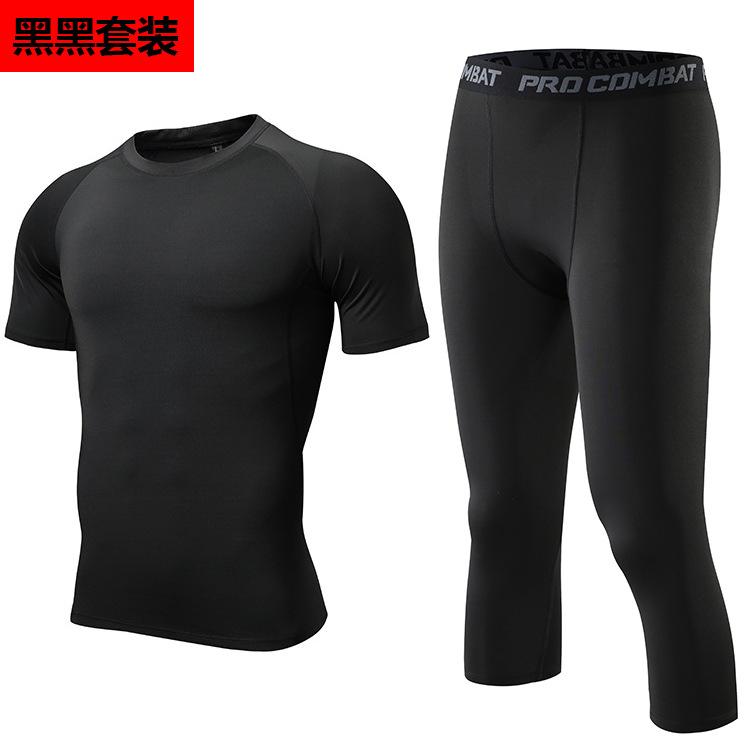 Mallas deportivas de manga corta para hombre, traje de fitness para hombre, pantalones cortos de secado rápido para baloncesto y running, traje deportivo de ocio para hombre