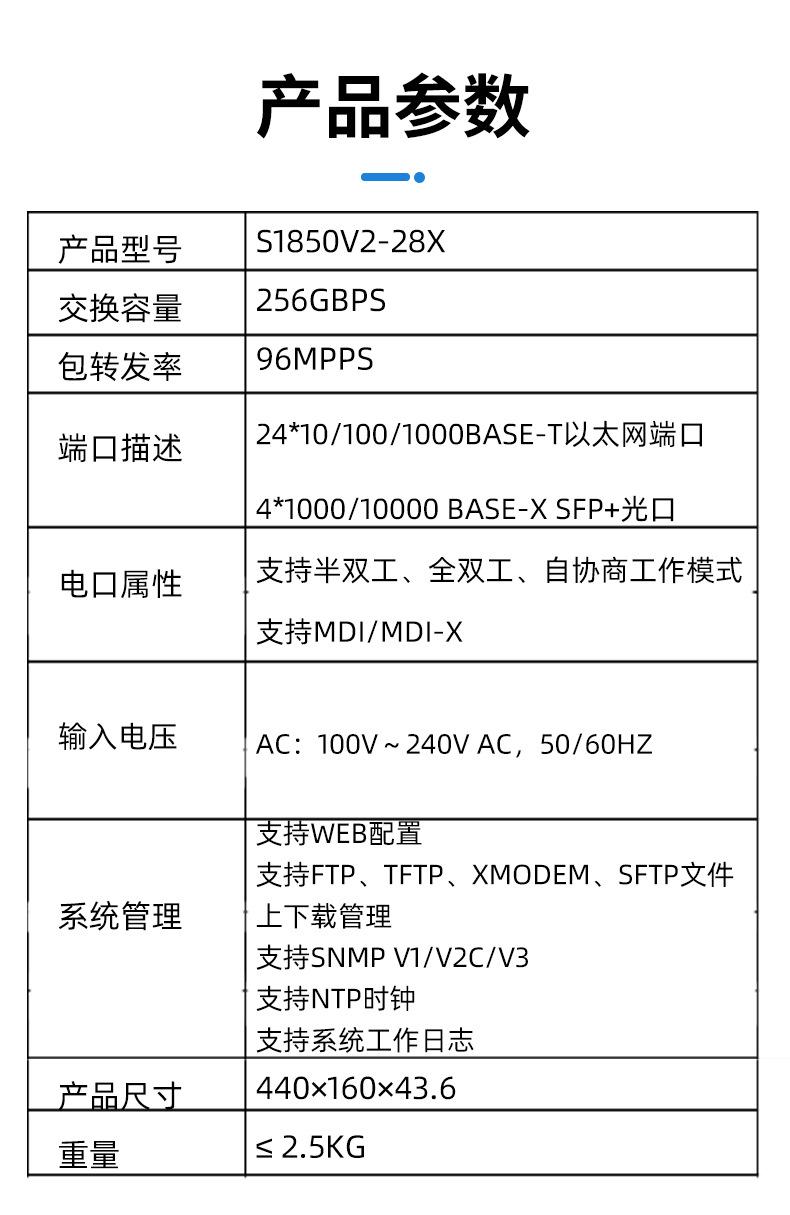 Switch Ethernet Gigabit de Grado Empresarial S1850V2-28X 24 Puertos Eléctricos + 4 Puertos Ópticos Switch Gestionado por Web