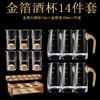 Regalos de Empresa Cristal Chino Vaso de Licor de Una Pieza Hoja de Oro Dispensador de Vino Jarra de Vino Copa de Vino Set de Vino Blanco