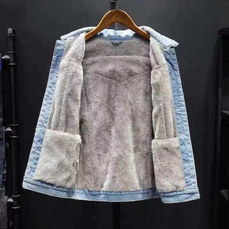 Chaqueta vaquera gruesa con forro polar para hombre, nueva llegada de otoño e invierno, chaqueta informal de piel de cordero para hombre, chaqueta cálida de algodón