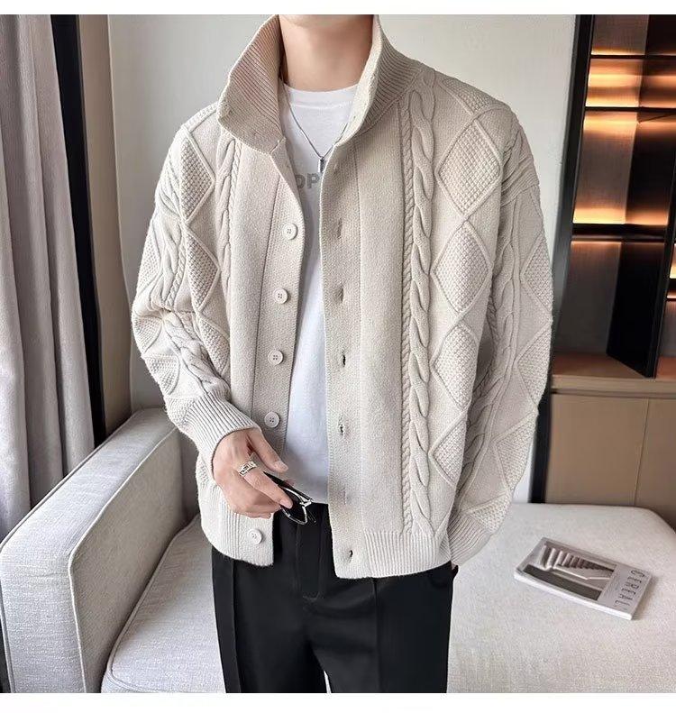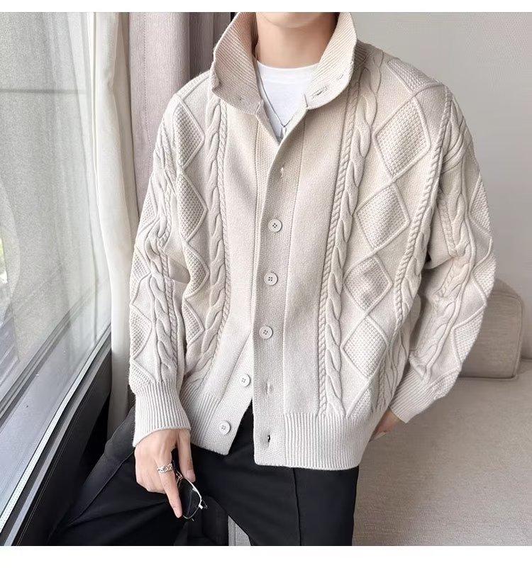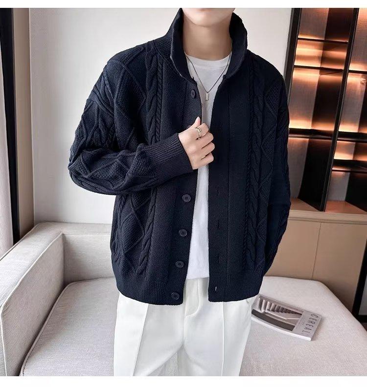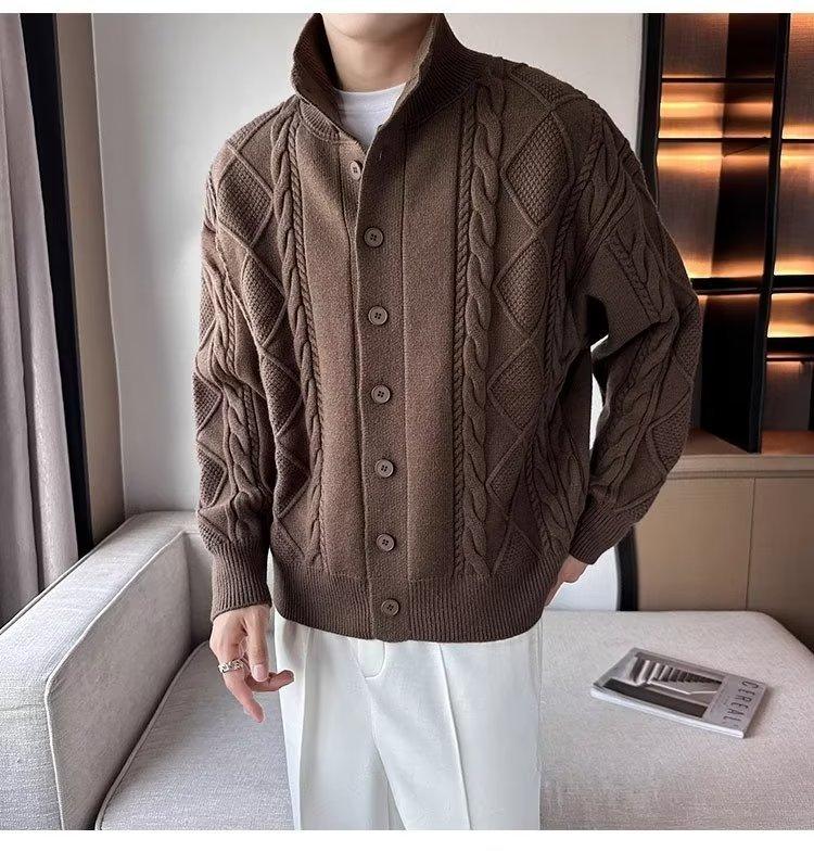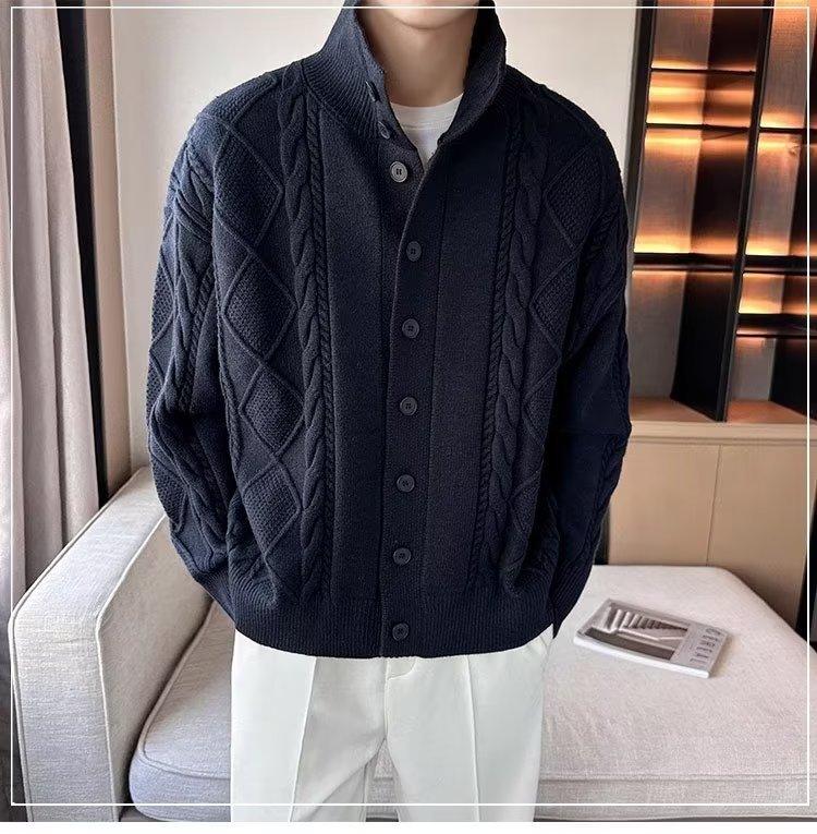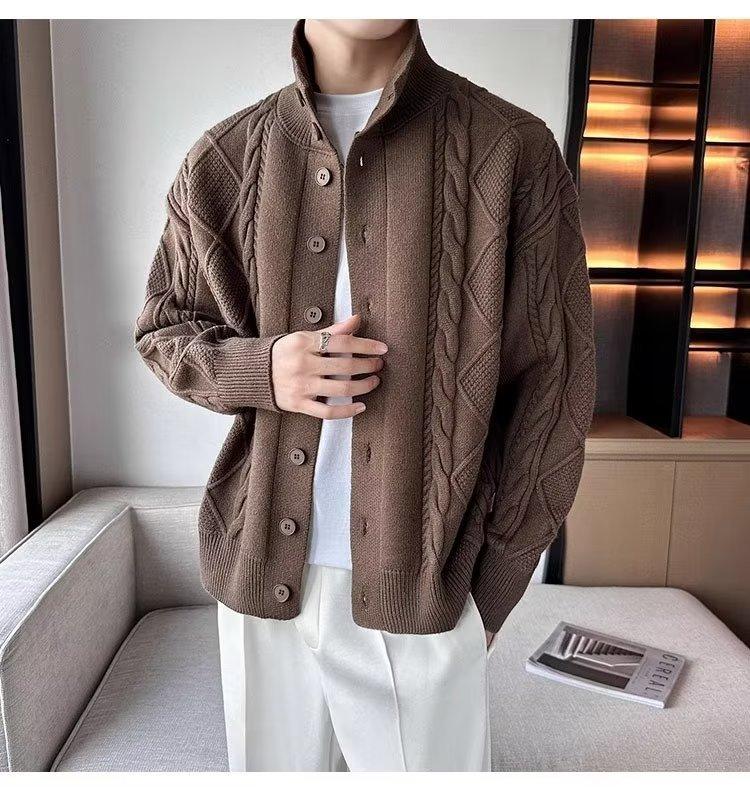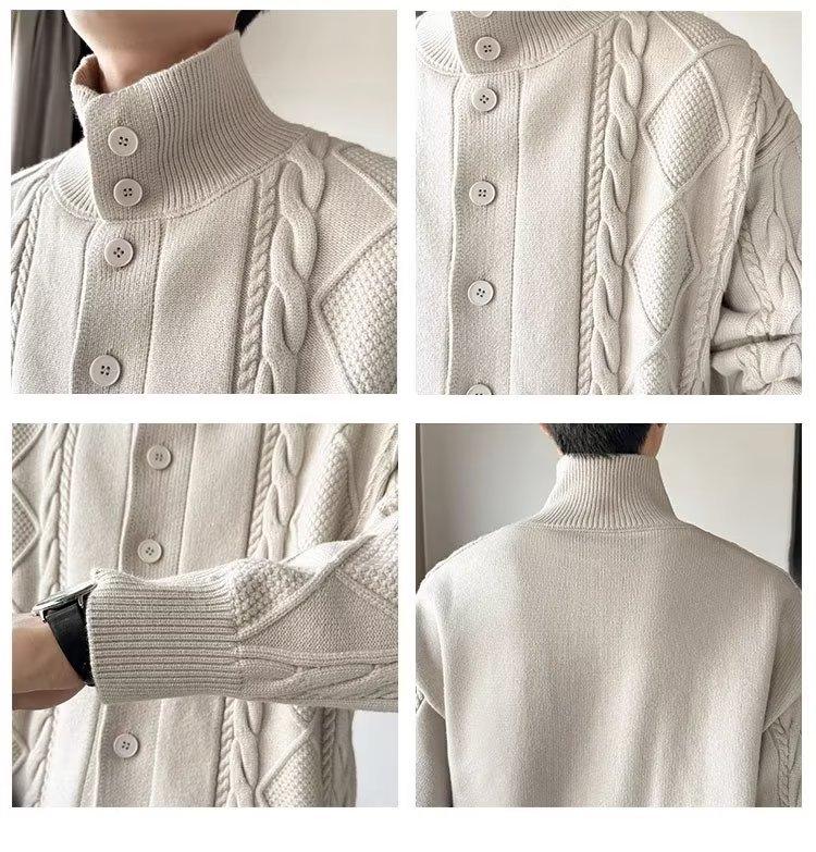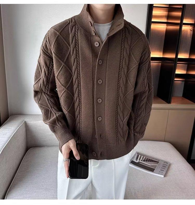 Cárdigan de punto trenzado de alta calidad para hombre y mujer, abrigo holgado de estilo coreano, suéter de cuello alto de color sólido, de moda, para otoño e invierno