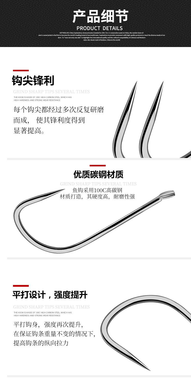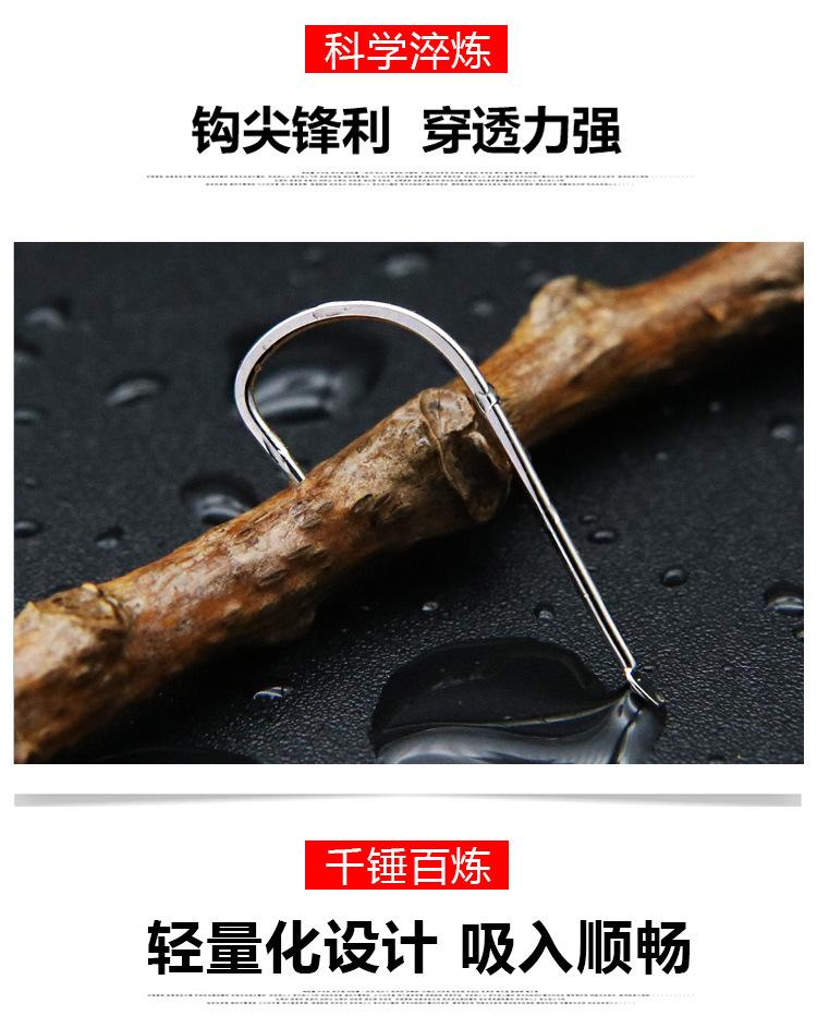 El propietario tiene algo que decir: El anzuelo es demasiado blando, puntiagudo o no está lo suficientemente afilado. Este anzuelo puede solucionar todo tipo de confusiones al pescar tilapia de hoyo negro. Un reemplazo más podría hacer que te arrepientas de haber perdido la corona del hoyo, te entiendo. La hilera principal de la Colección Secreta de Tilapia tiene un cebo de dientes finos que lo hace más rápido que en la pesca convencional. Para satisfacer las necesidades de los pescadores de tilapia de hoyo negro, utilizamos la manga como prototipo de diseño y ajustamos científicamente el grosor de la punta, el mango y el alambre del anzuelo. Creo que este anzuelo te ayudará a lograr buenos resultados.