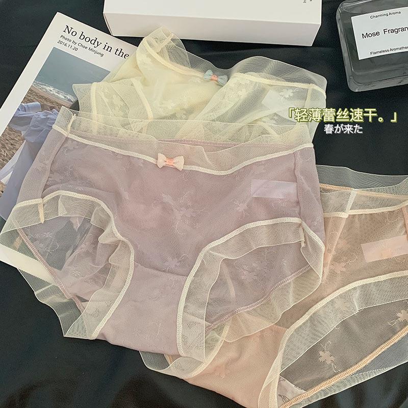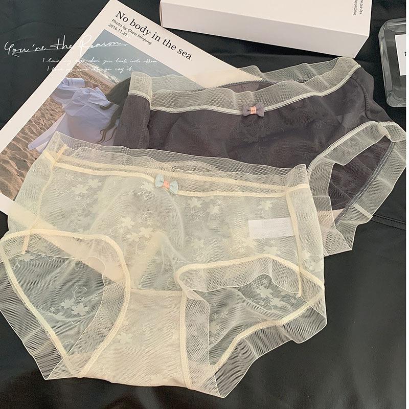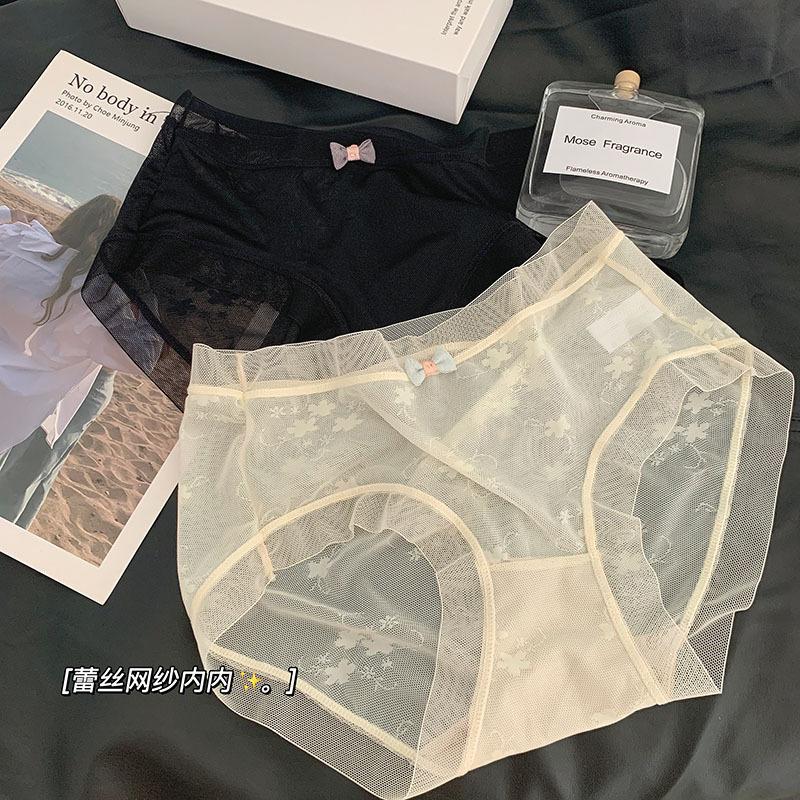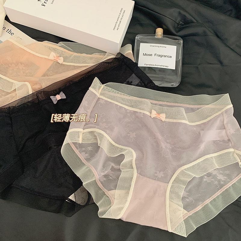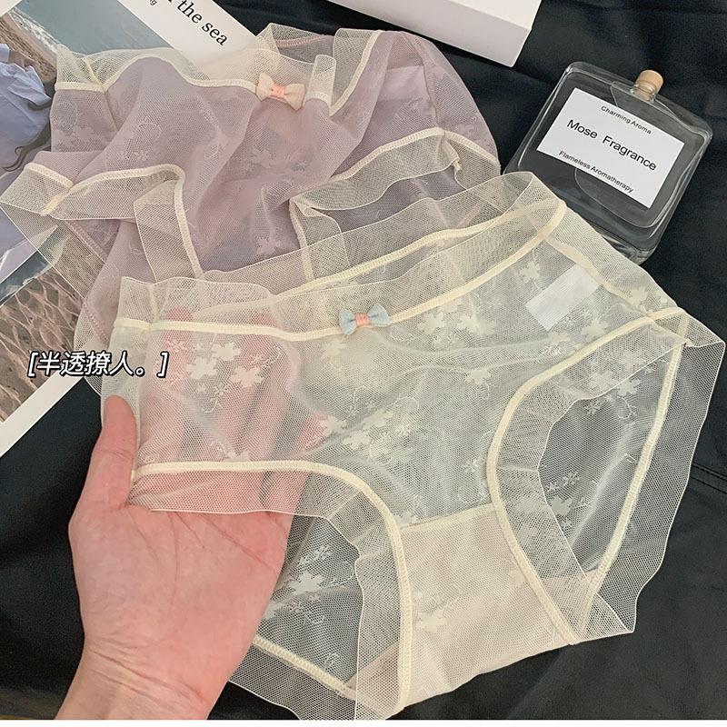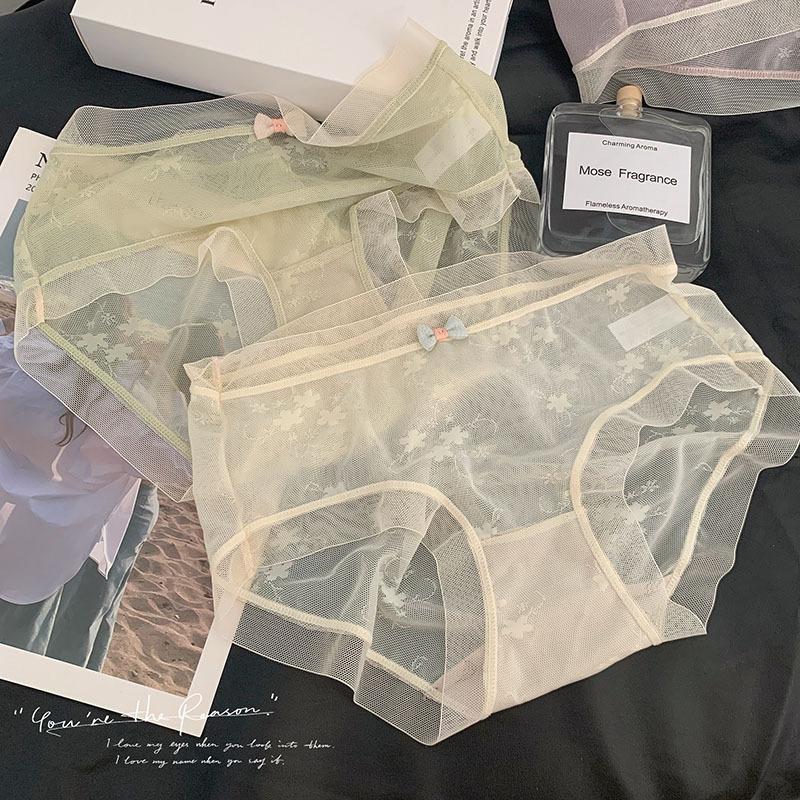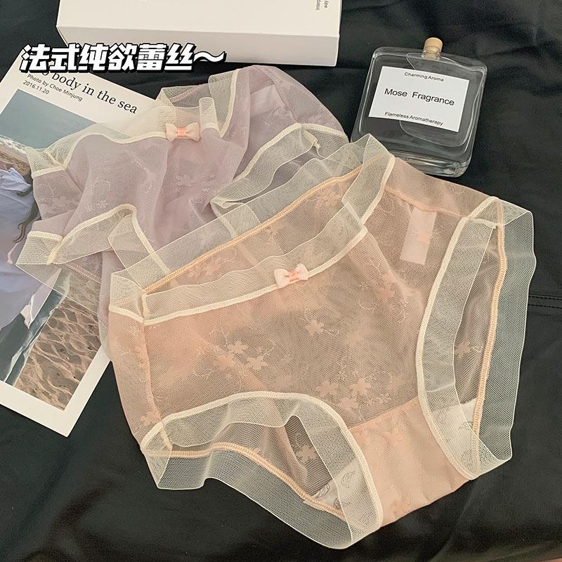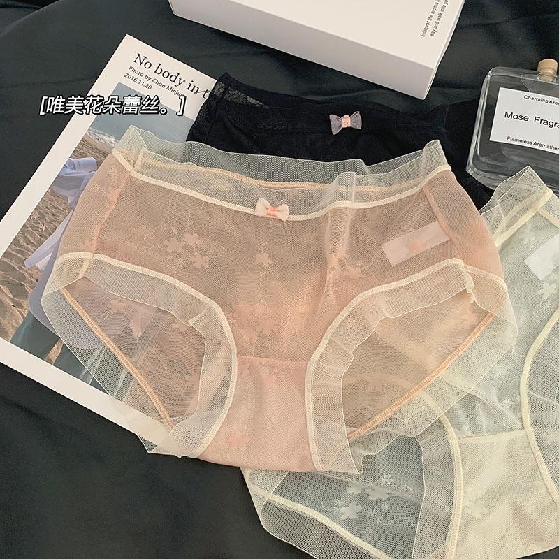 Deseo Puro Panties de Encaje Ultradelgados de Cintura Media para Mujer Transparentes Sexy Malla Jacquard Bragas Tipo Vaina Transpirables de Secado Rápido para Niña