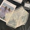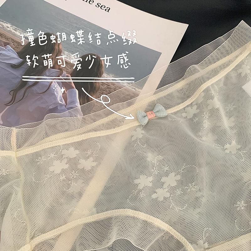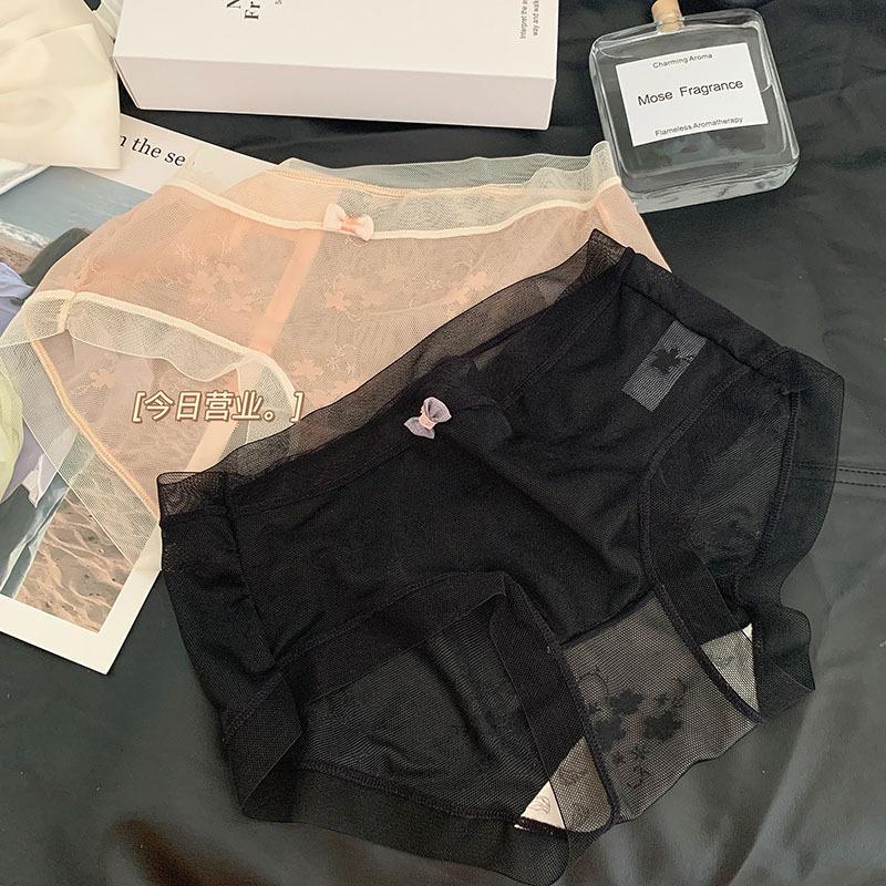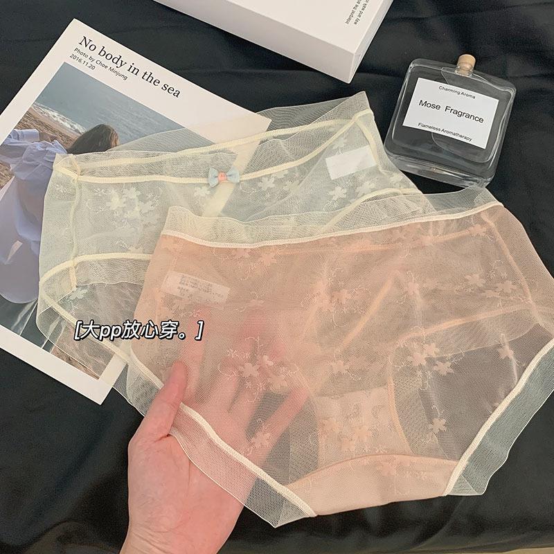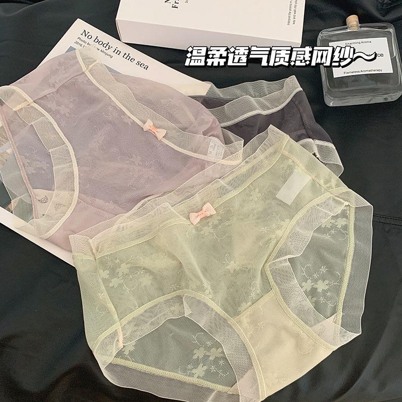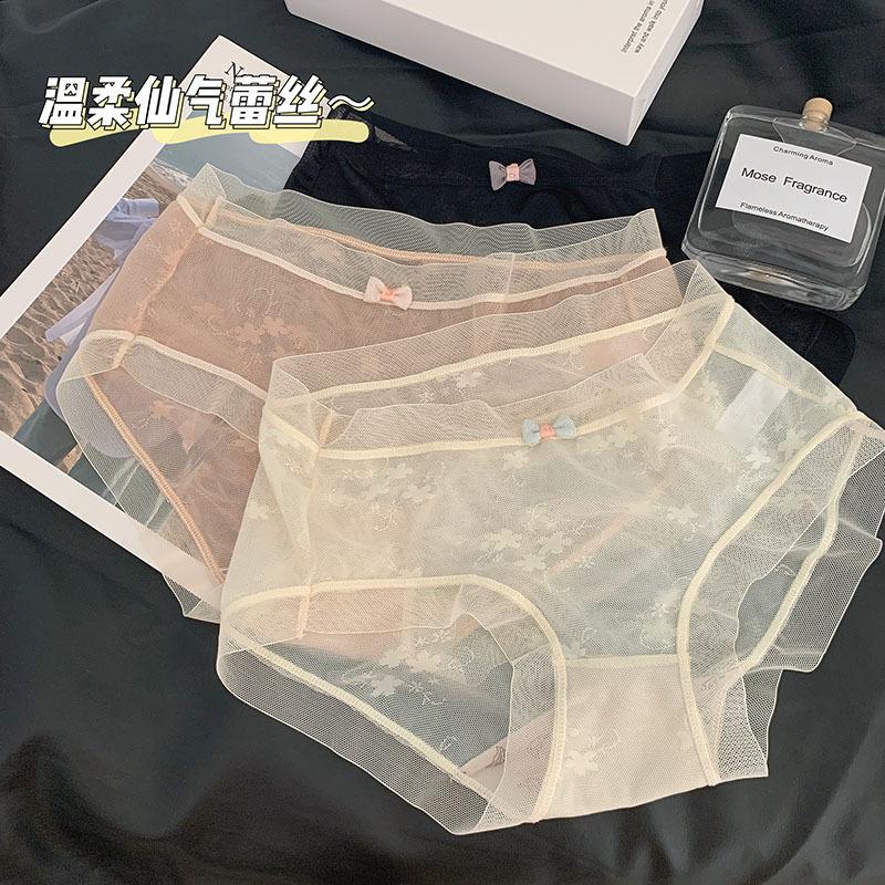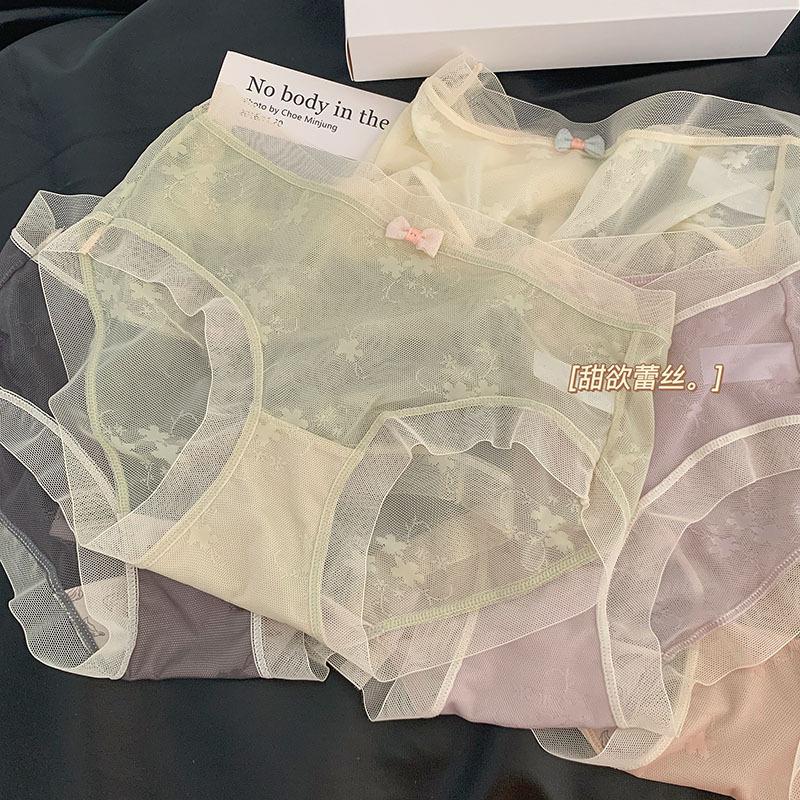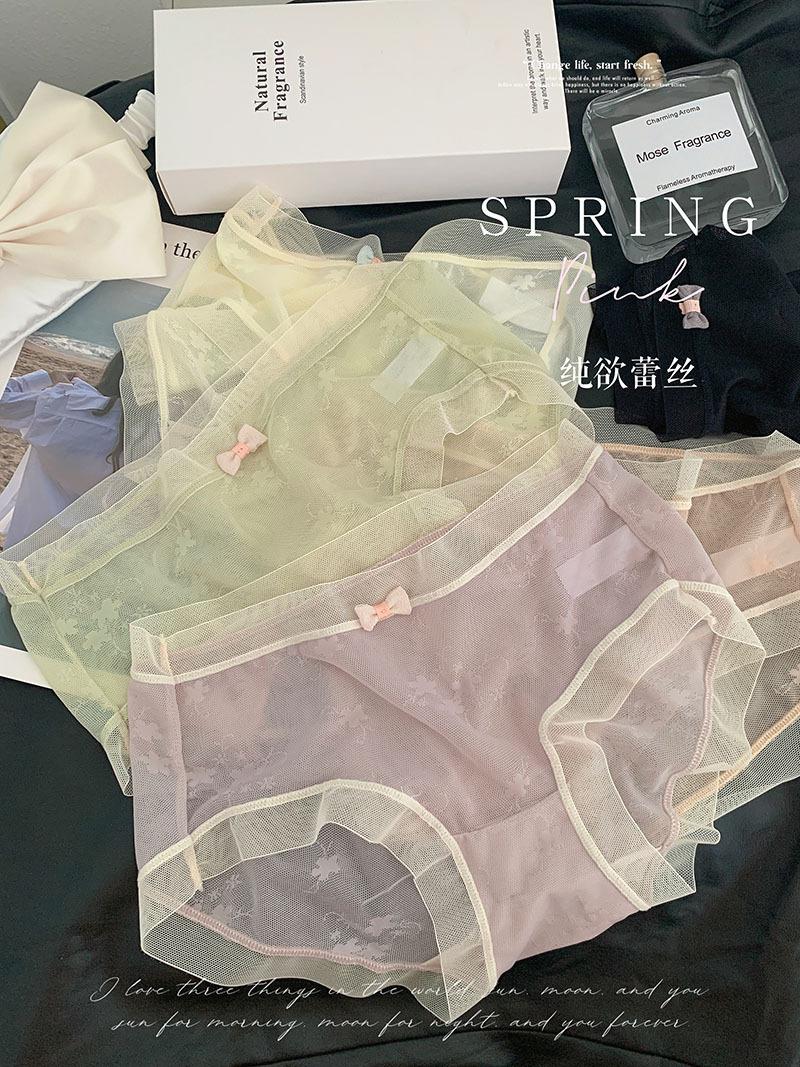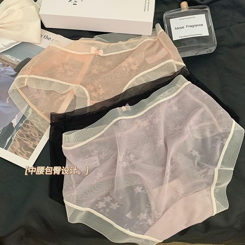 Deseo Puro Panties de Encaje Ultradelgados de Cintura Media para Mujer Transparentes Sexy Malla Jacquard Bragas Tipo Vaina Transpirables de Secado Rápido para Niña