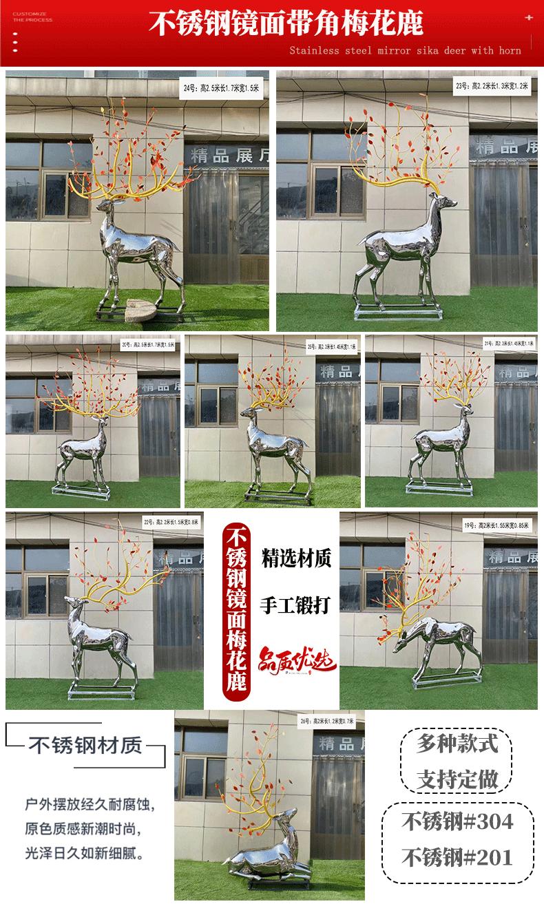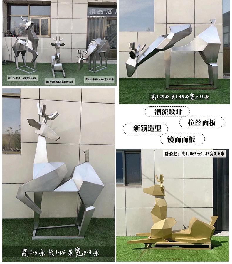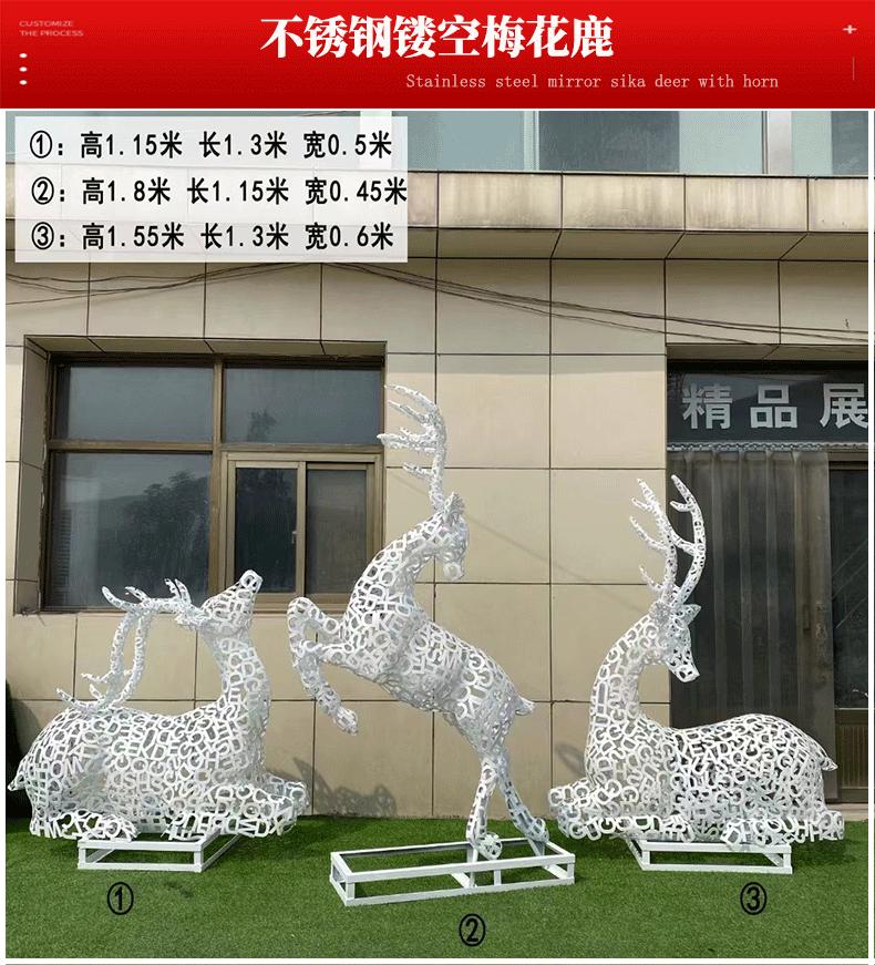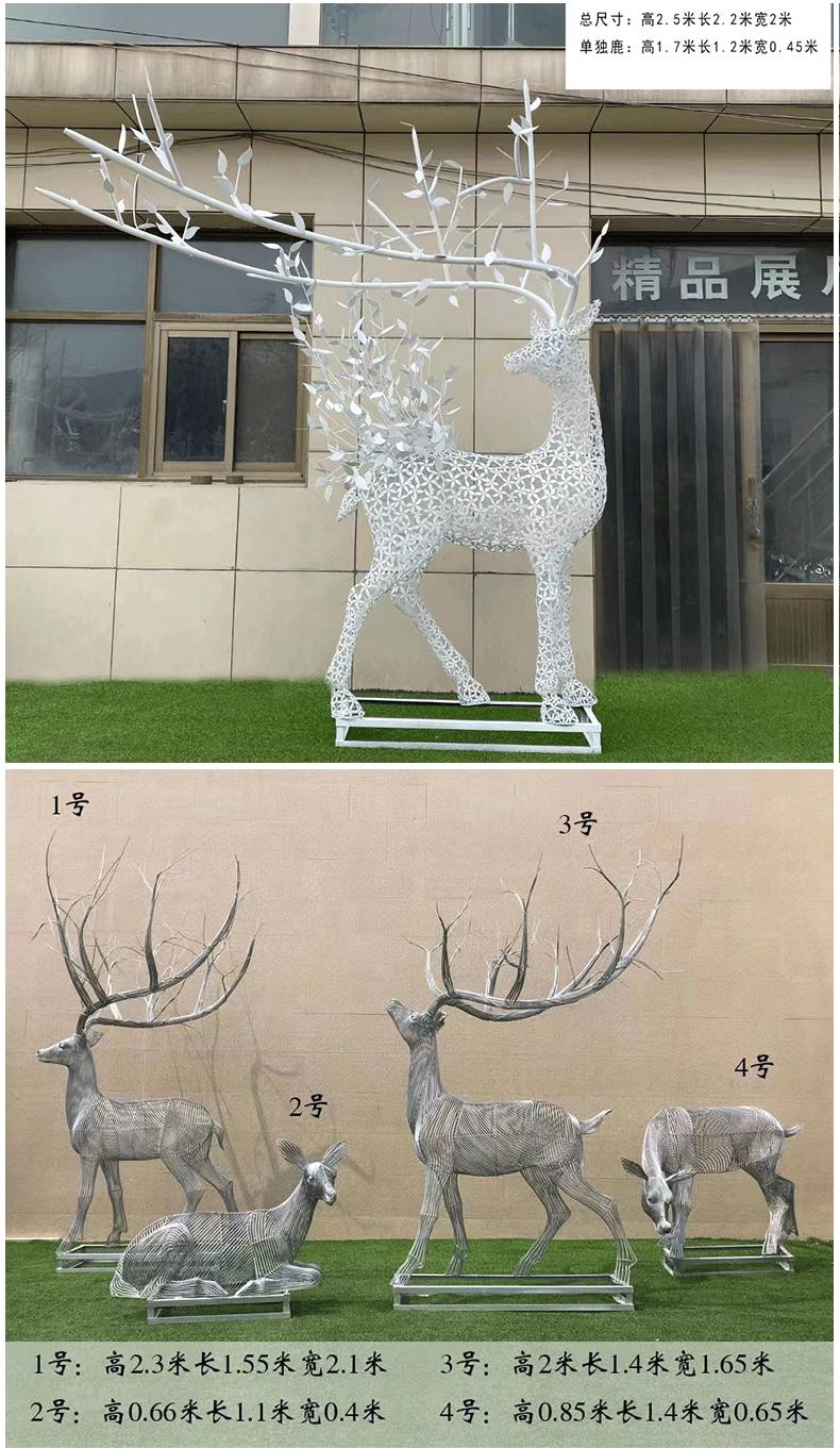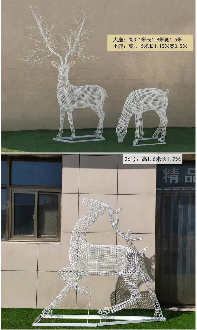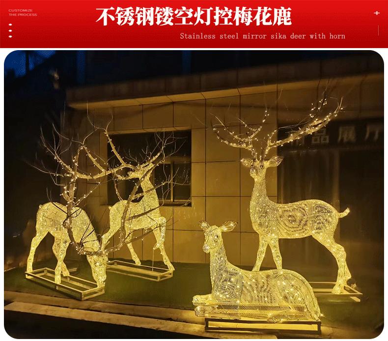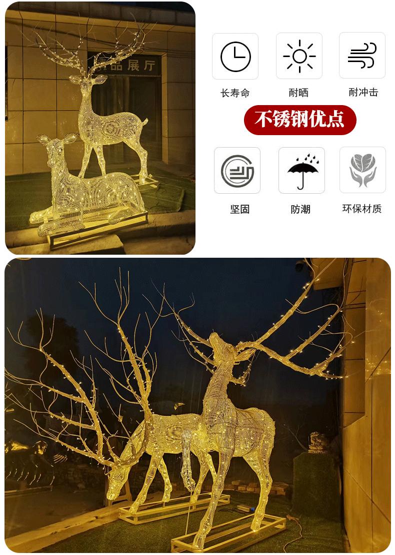 Escultura de Ciervo de Acero Inoxidable Personalizada Calado Noche Plaza Parque Paisaje Exterior Adorno de Ciervo Tejido Modelo con Acabado Espejo