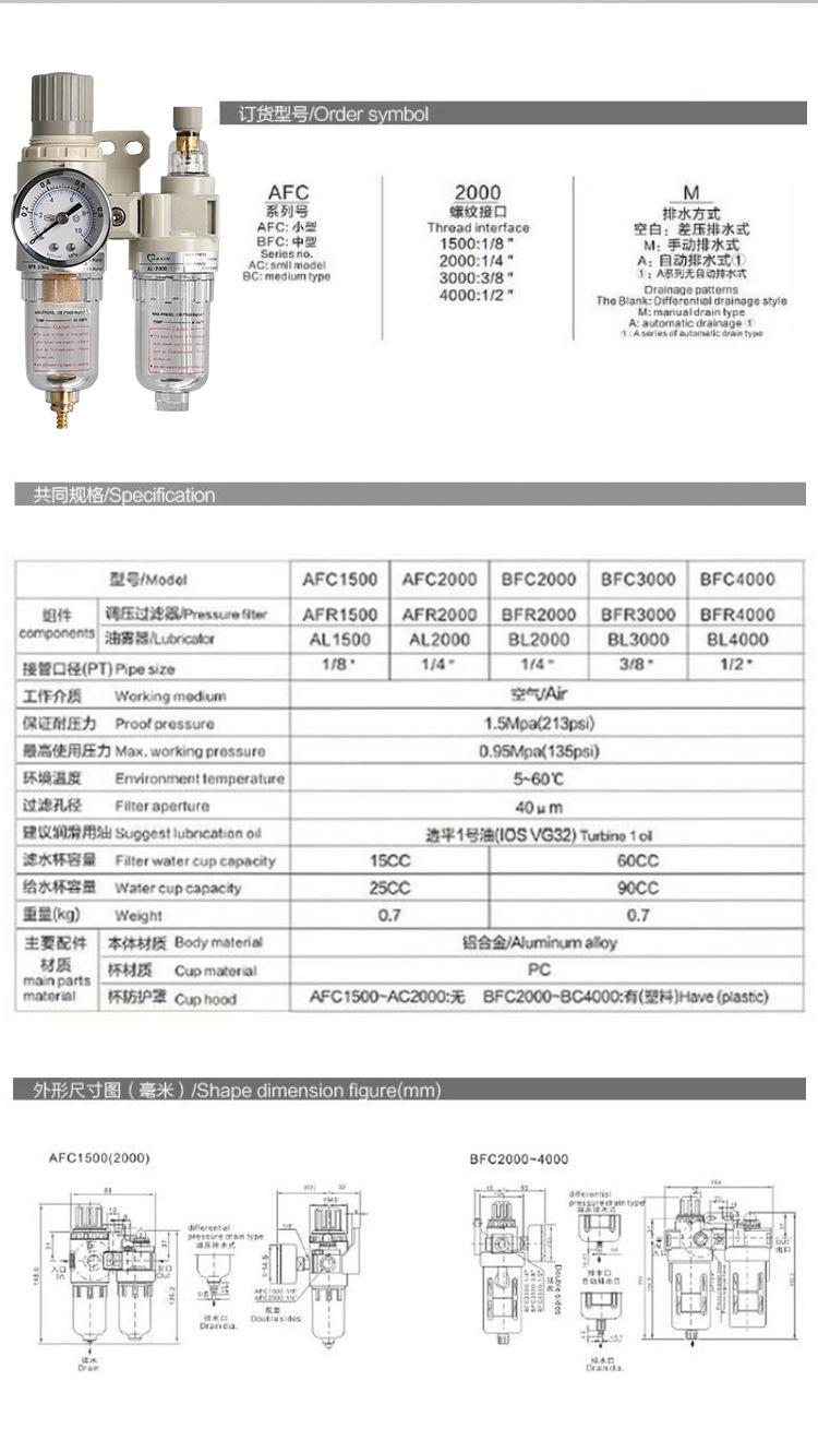 Compra Filtro regulador de presión de aire separador de aceite y agua del procesador de fuente de aire neumático de dos piezas BFC4000 tipo Yadke al por mayor en Joom.pro