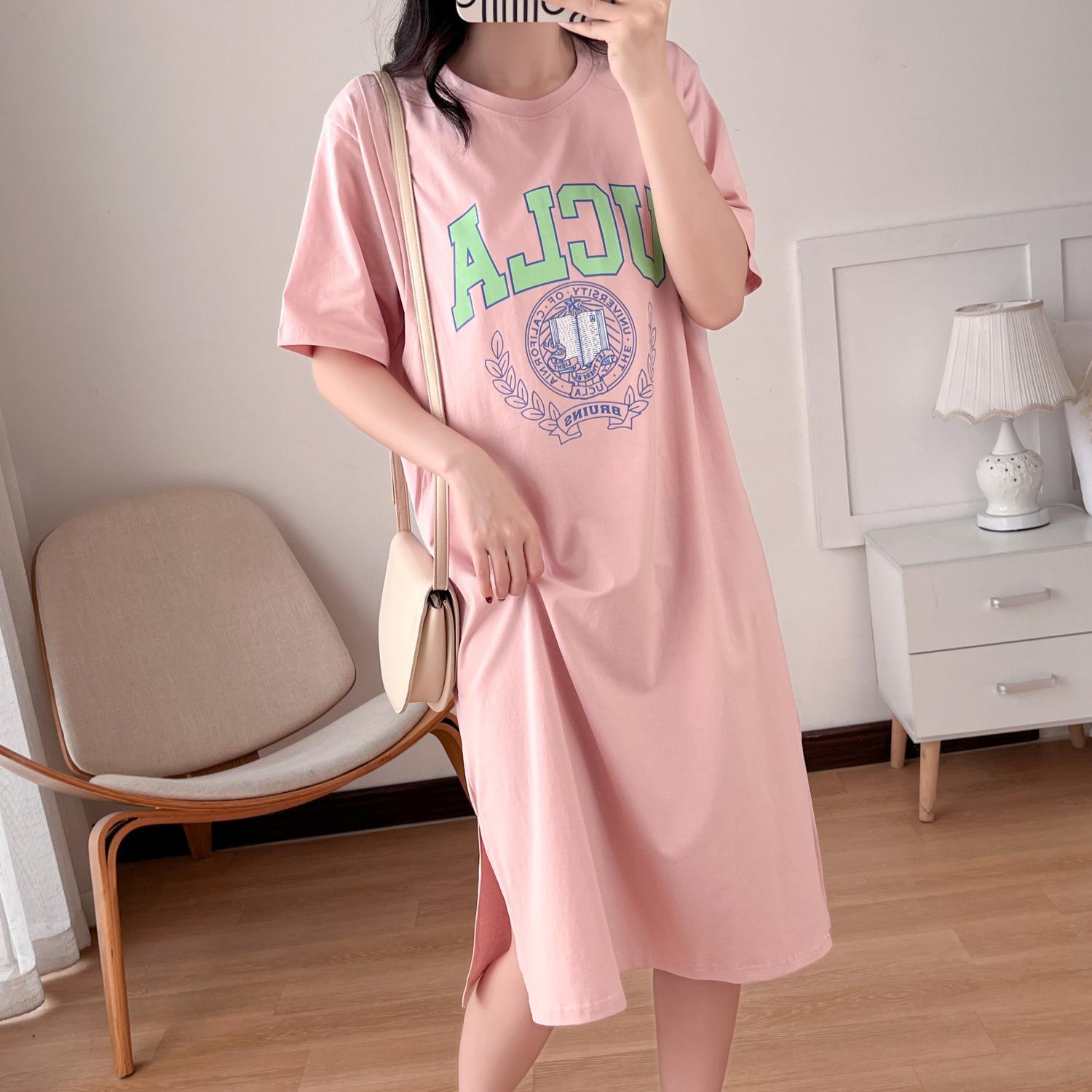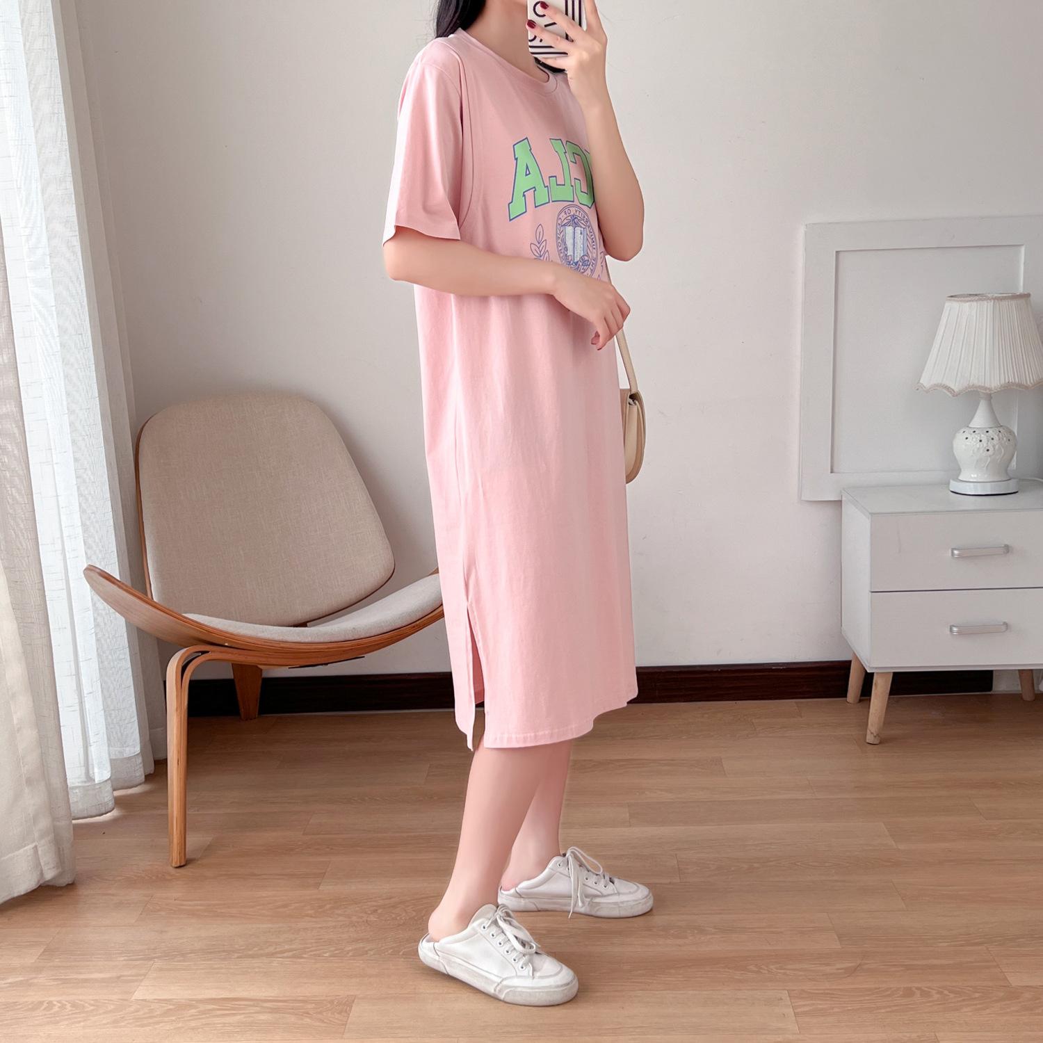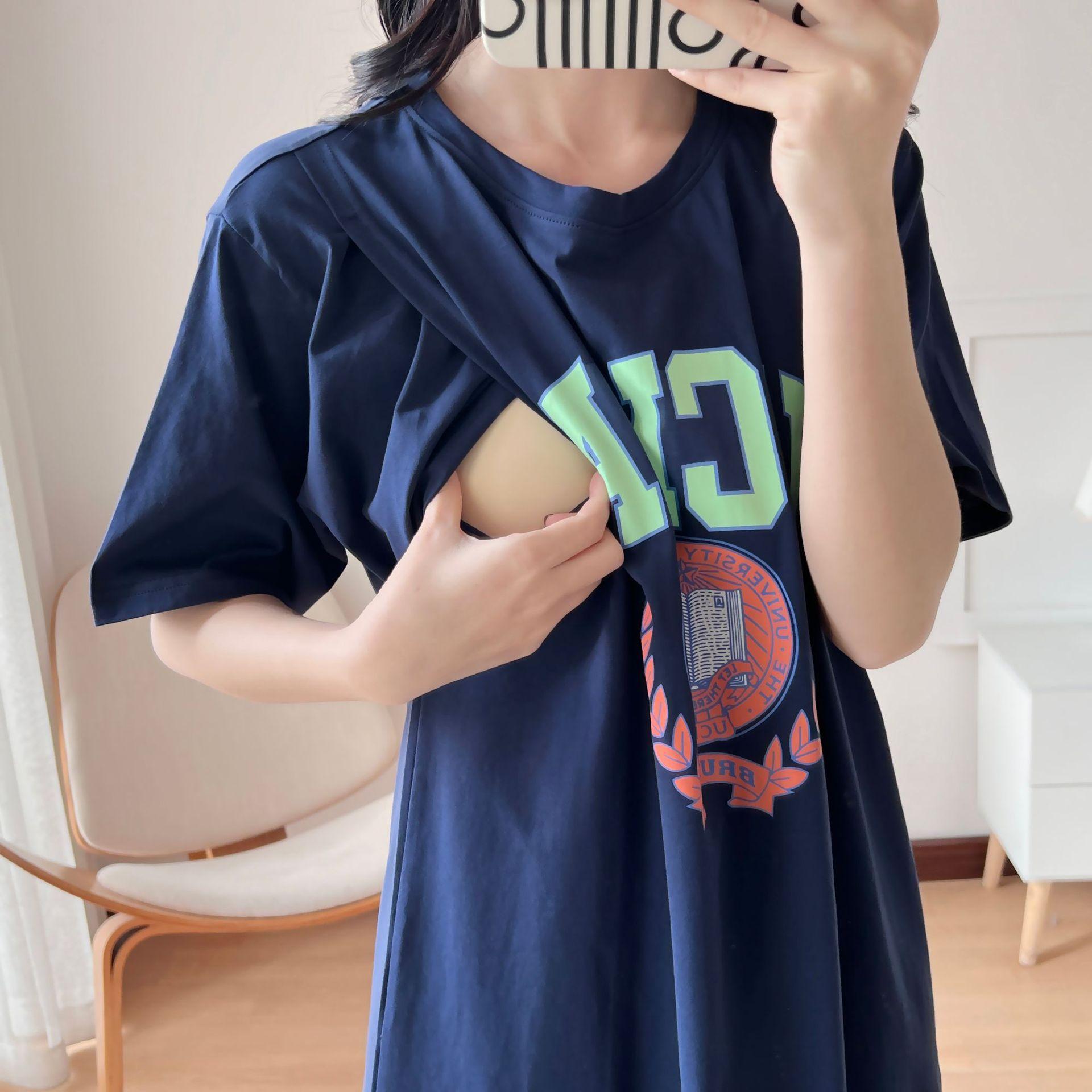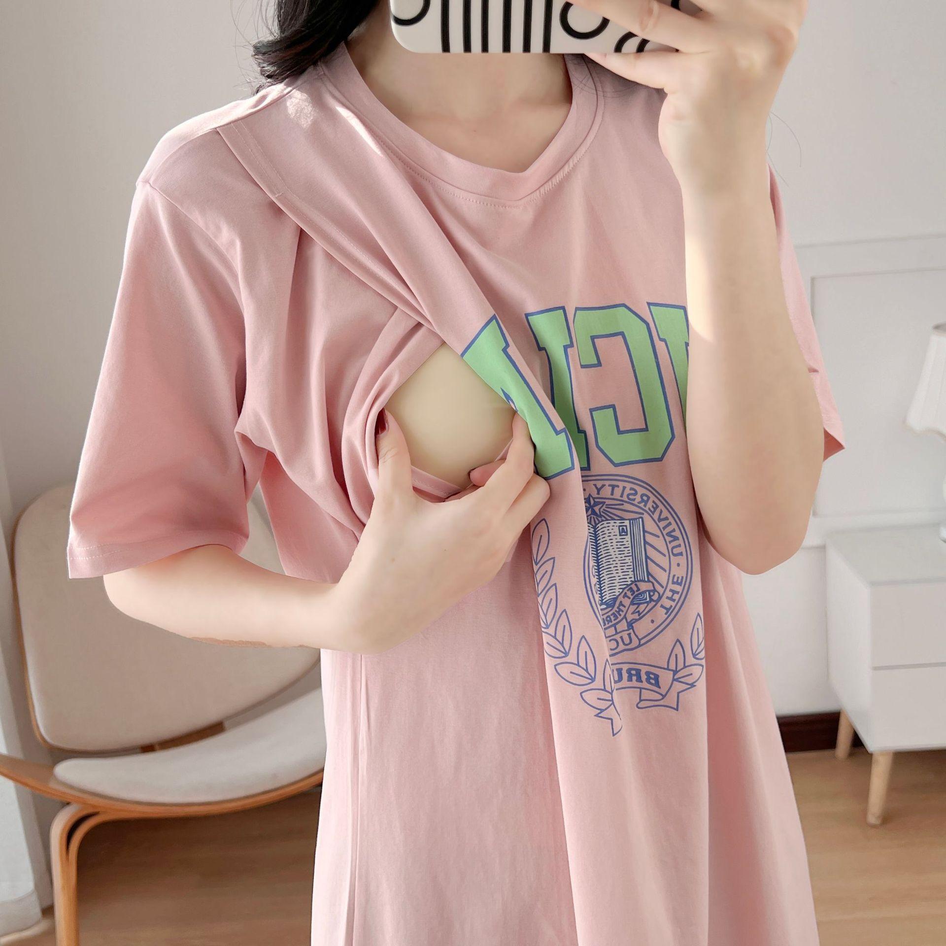 Camisón de Lactancia Verano Delgado Pijama de Mujer Embarazada Manga Corta Para Salir Lactancia Hogar Falda Algodón Puro Vestido de Luna Vestido