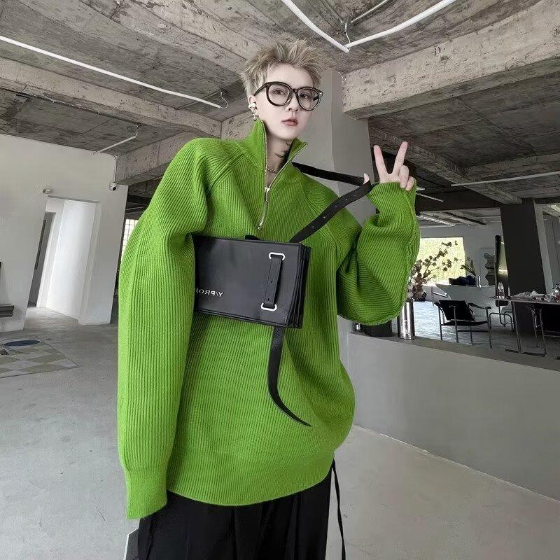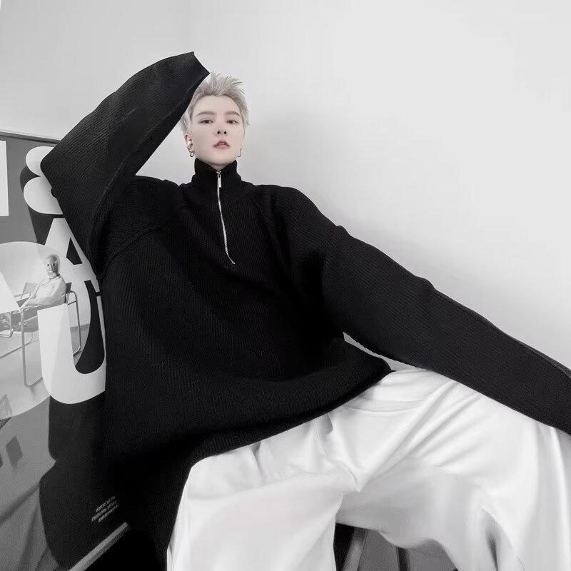 Suéter de cuello alto para hombre invierno de alta calidad engrosado cálido suéter estilo coreano juvenil moderno holgado top de media cremallera