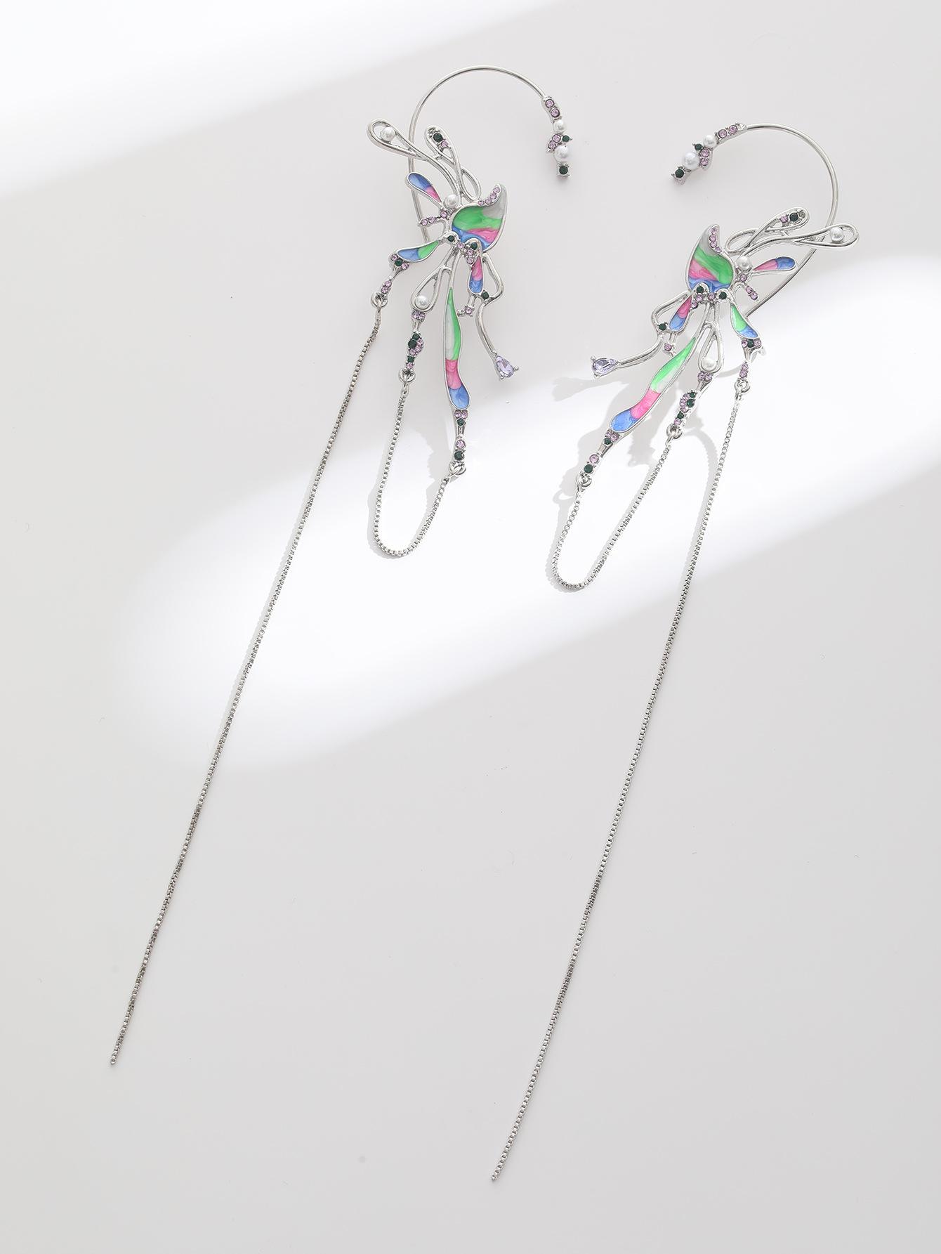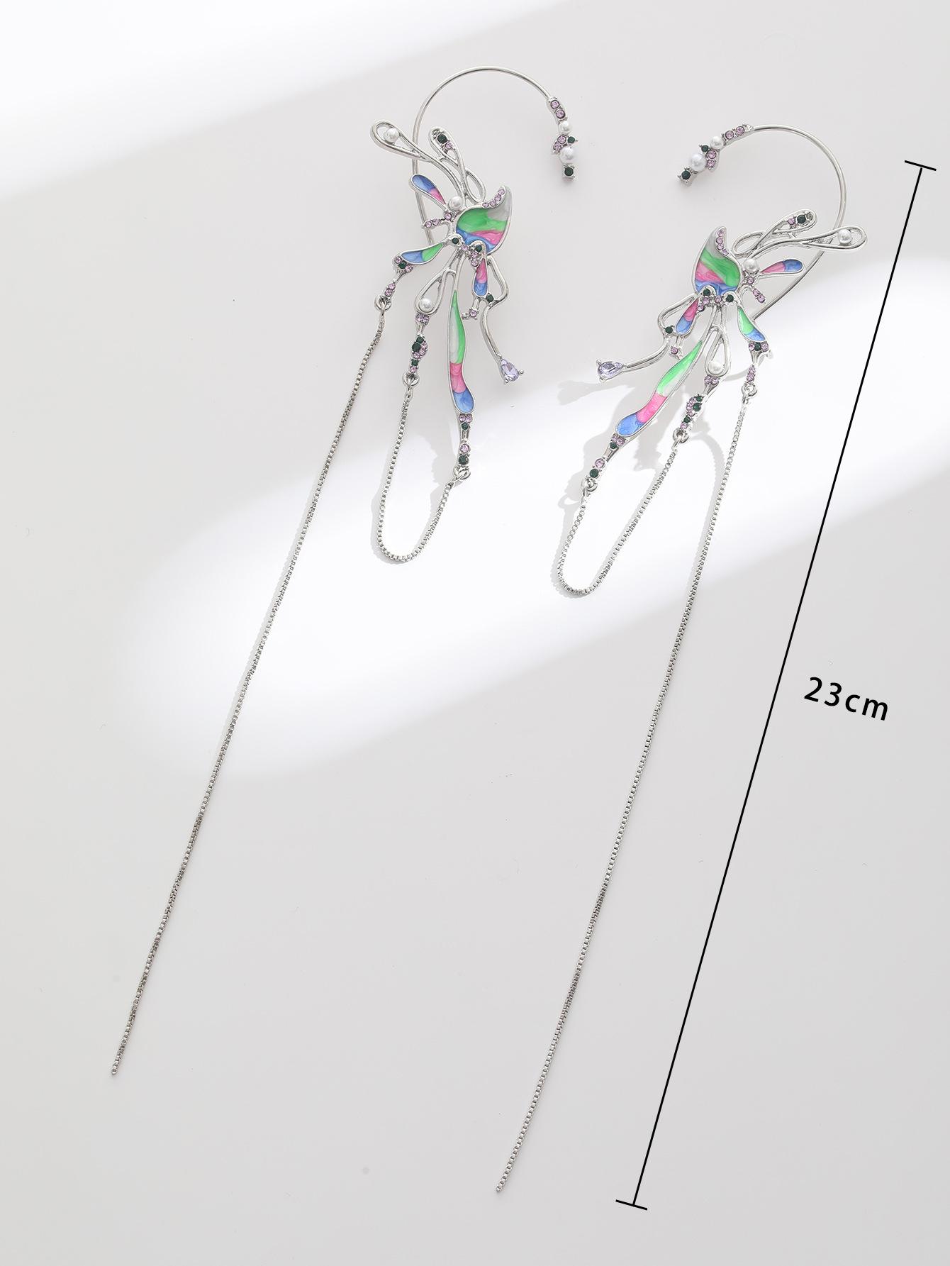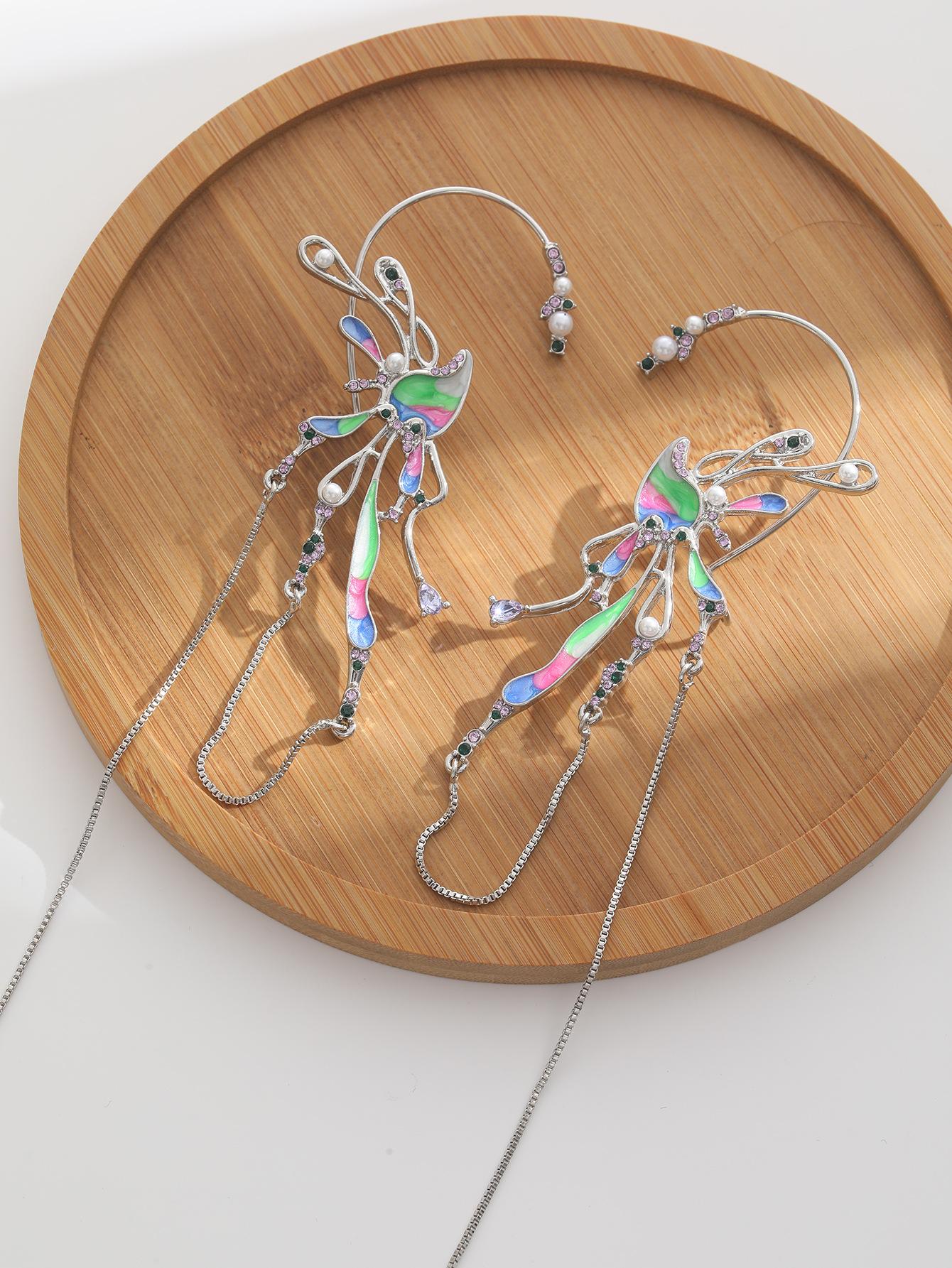 Collar largo Mori con borla, colgante de mariposa, color al óleo, gancho para la oreja con alas, aretes sin perforación, clip nuevo para el cartílago de la oreja, venta al por mayor