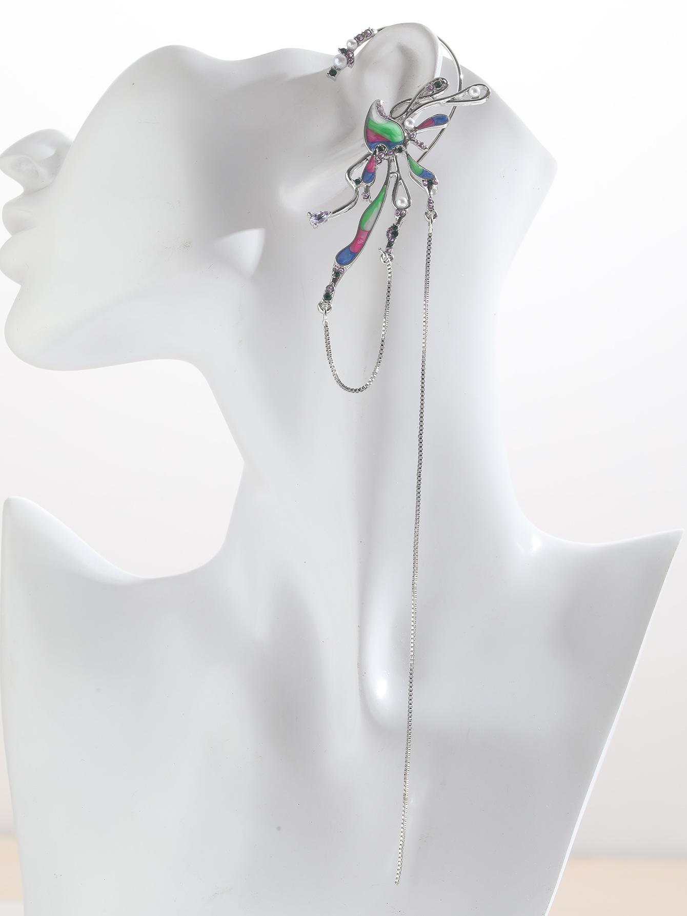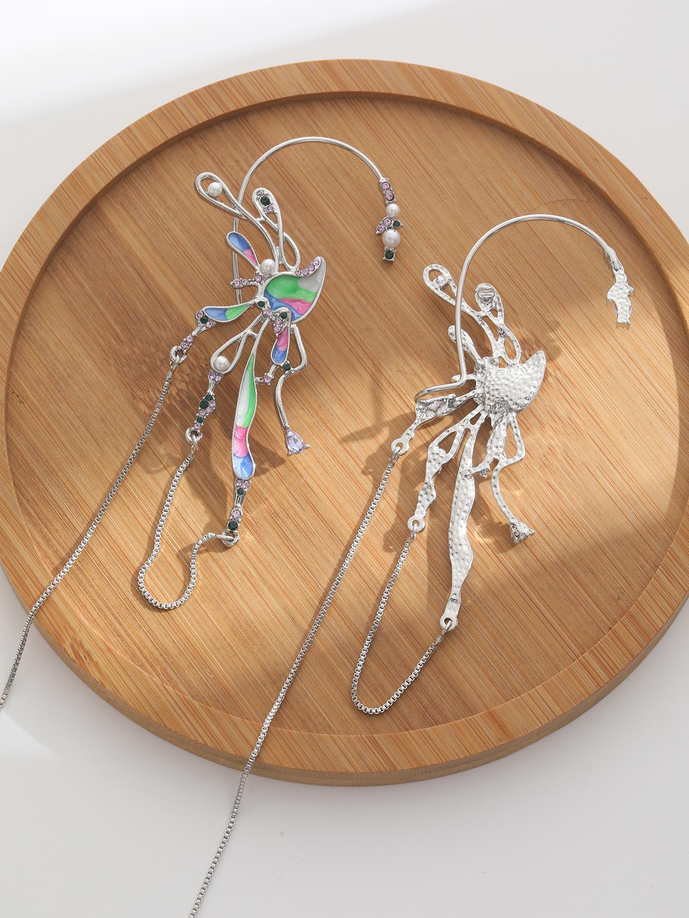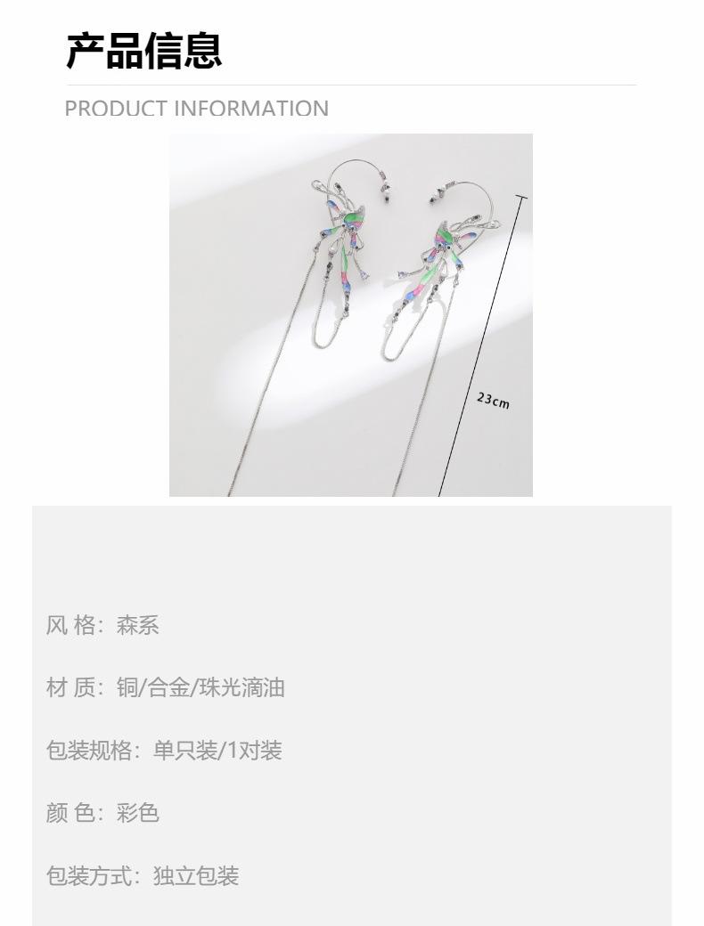 Collar largo Mori con borla, colgante de mariposa, color al óleo, gancho para la oreja con alas, aretes sin perforación, clip nuevo para el cartílago de la oreja, venta al por mayor