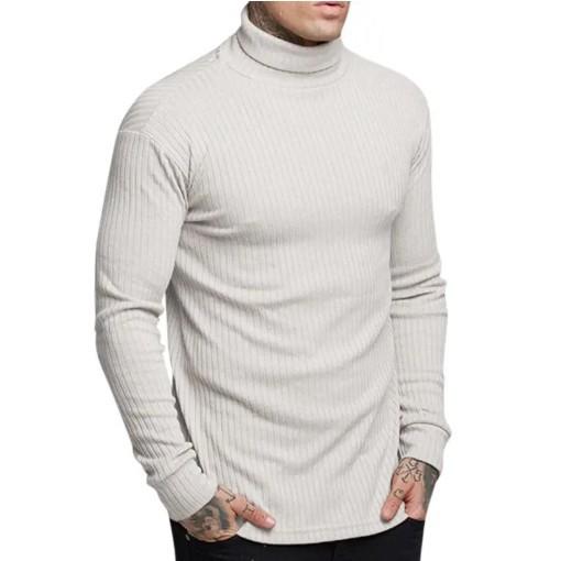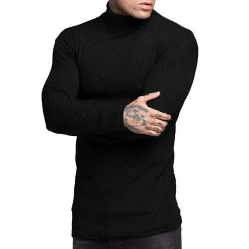 Suéter de otoño e invierno de comercio exterior para hombre, nuevo, informal, de moda, de color sólido, con cuello alto, a rayas, ajustado