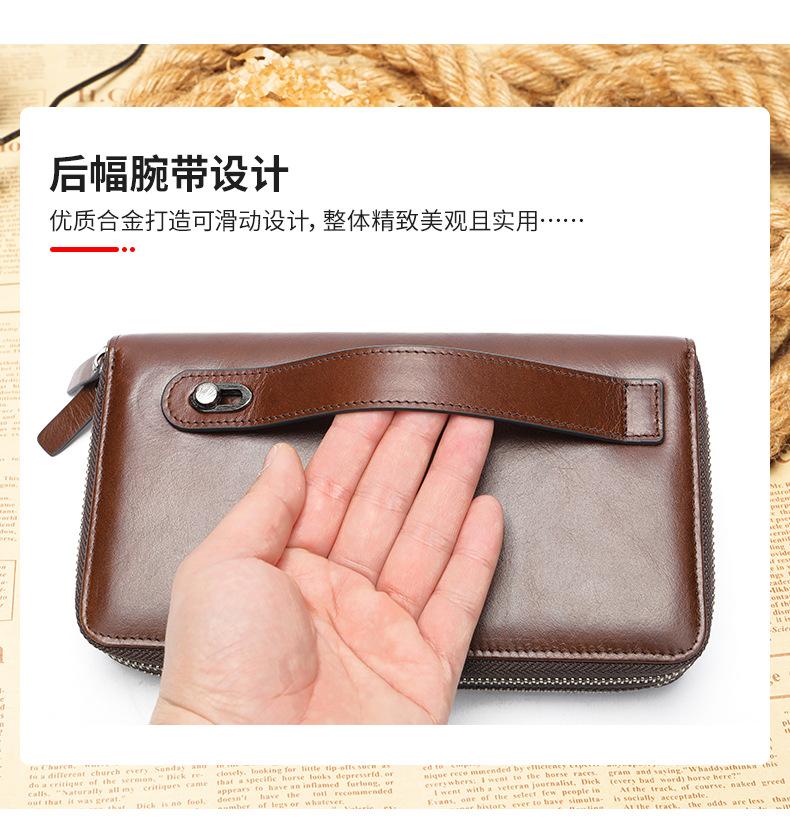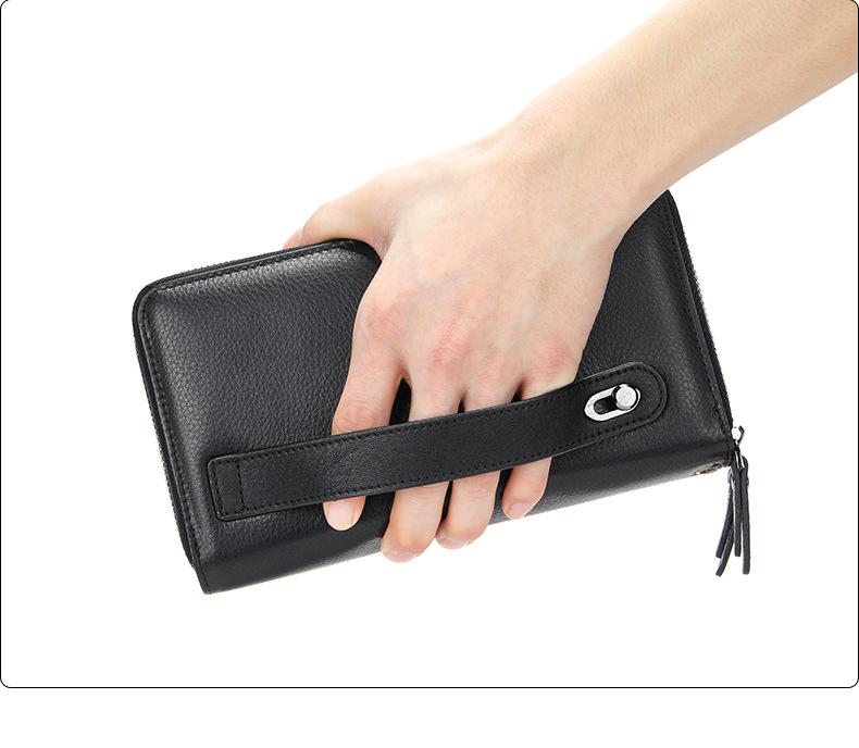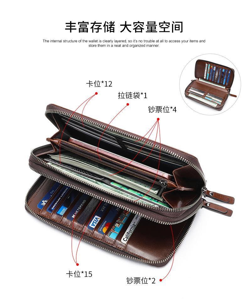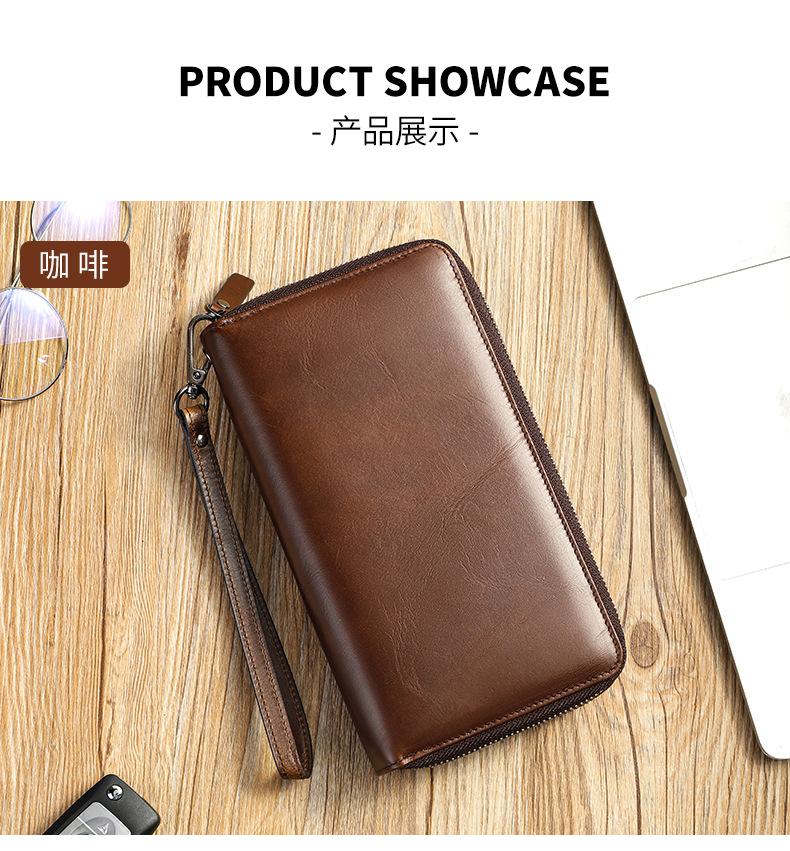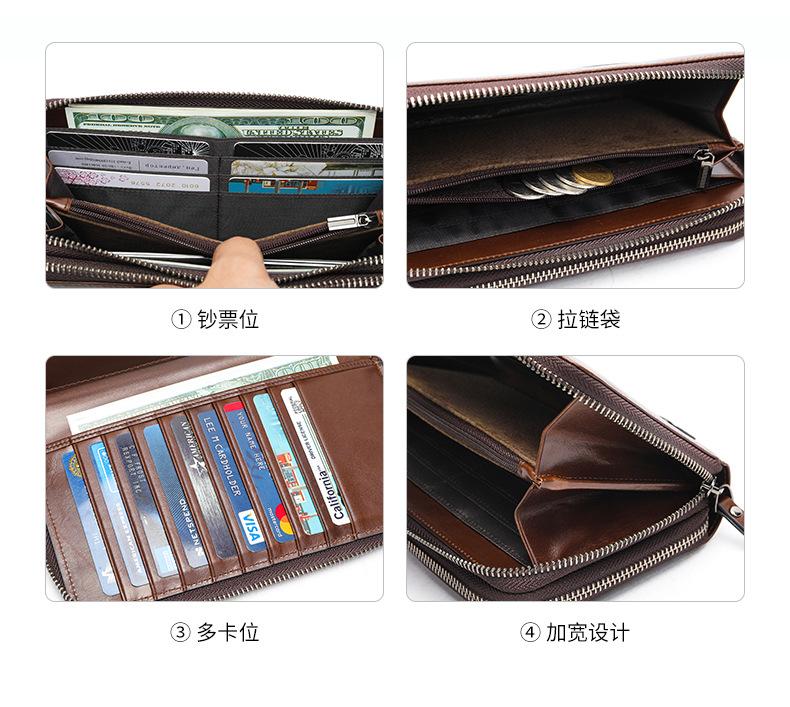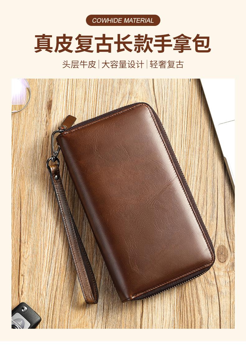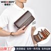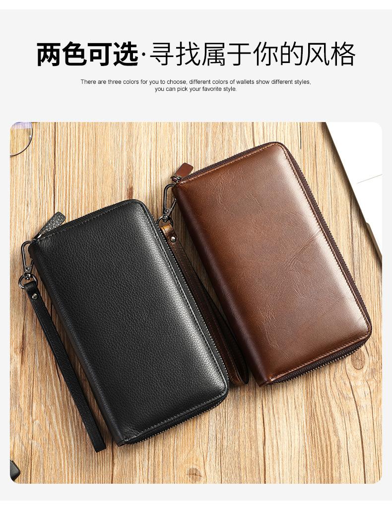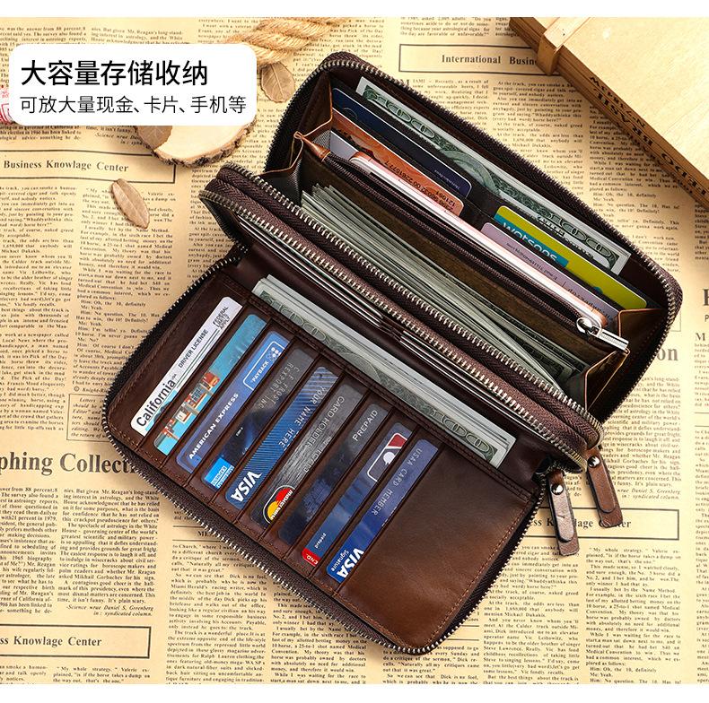 Cartera de hombre con dos bolsillos, billetera larga con ranuras para múltiples tarjetas, bolso de mano de cuero genuino para hombre, bolso de mano, negocio de suministro transfronterizo