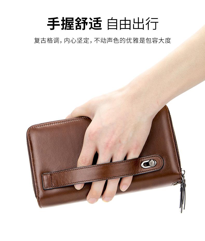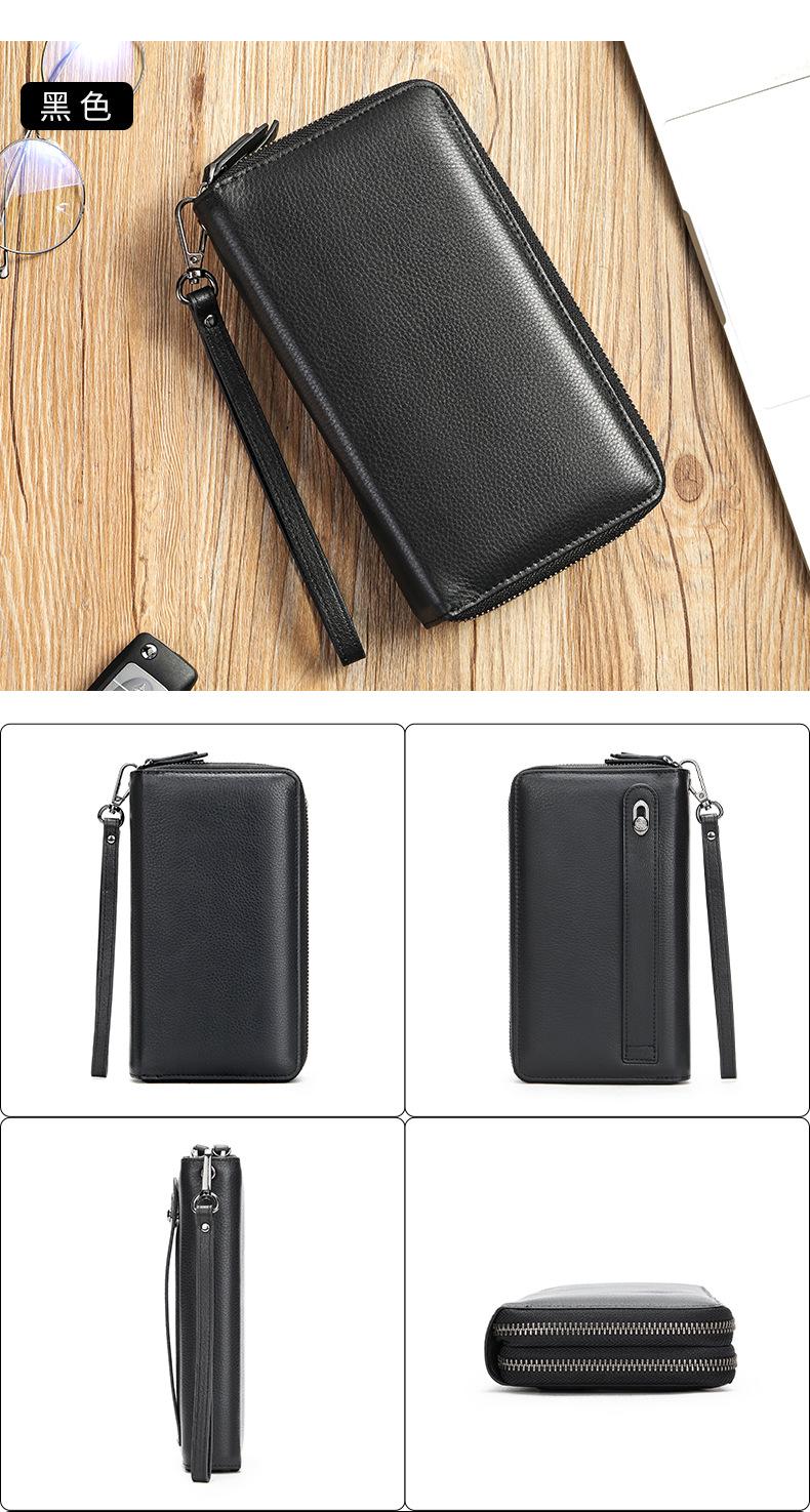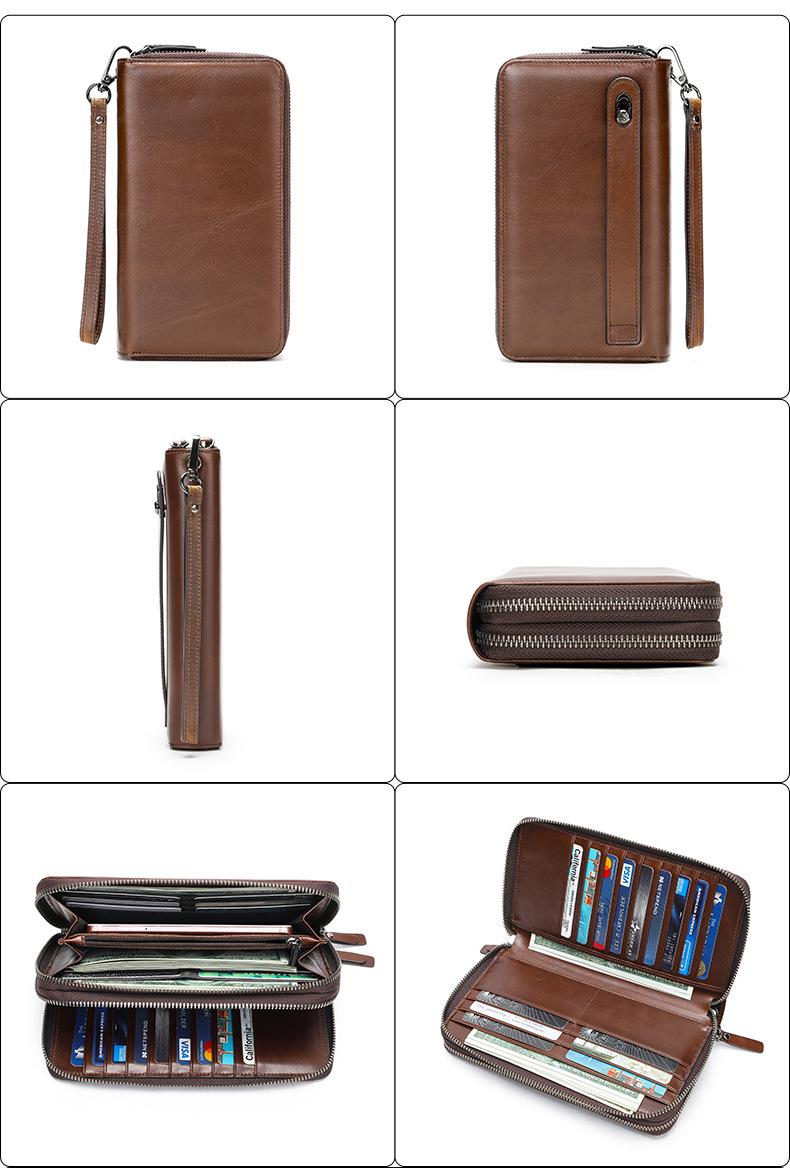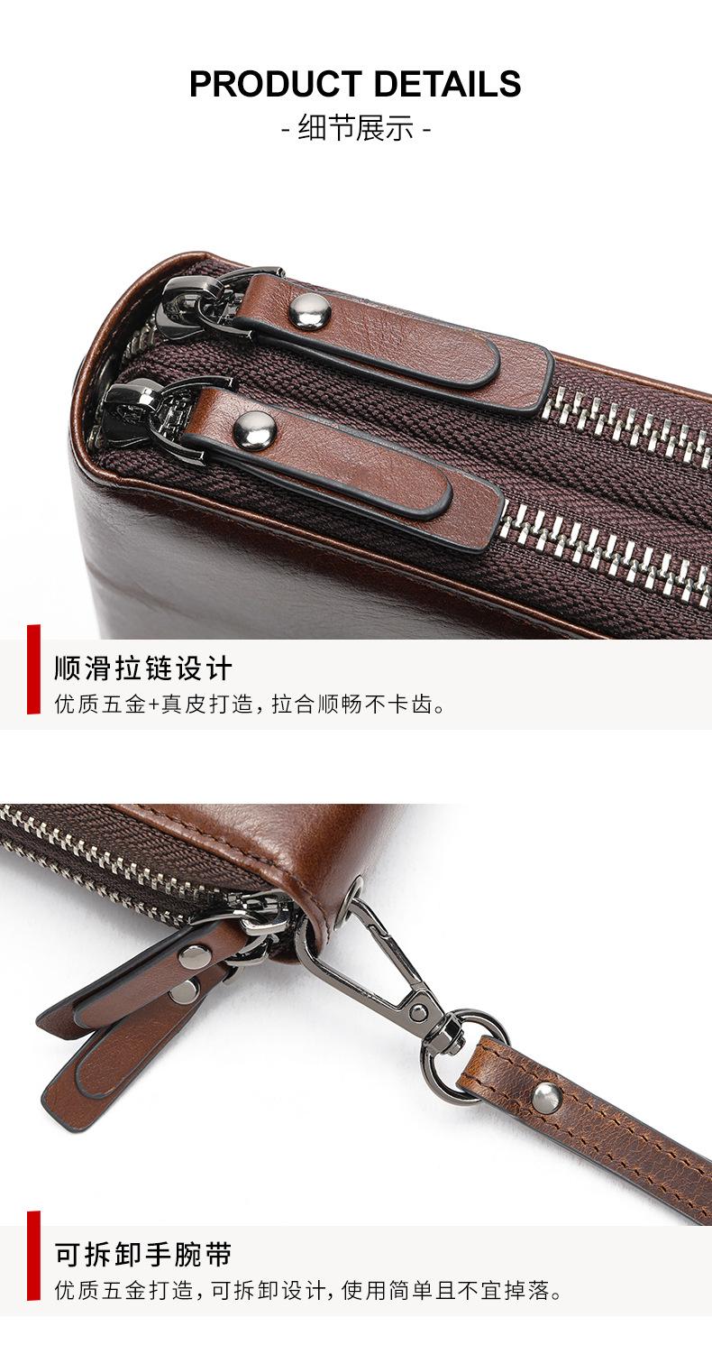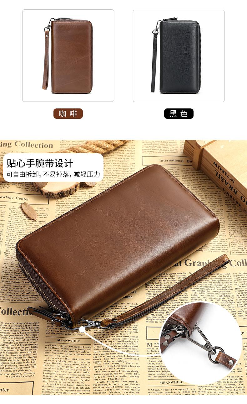 Cartera de hombre con dos bolsillos, billetera larga con ranuras para múltiples tarjetas, bolso de mano de cuero genuino para hombre, bolso de mano, negocio de suministro transfronterizo