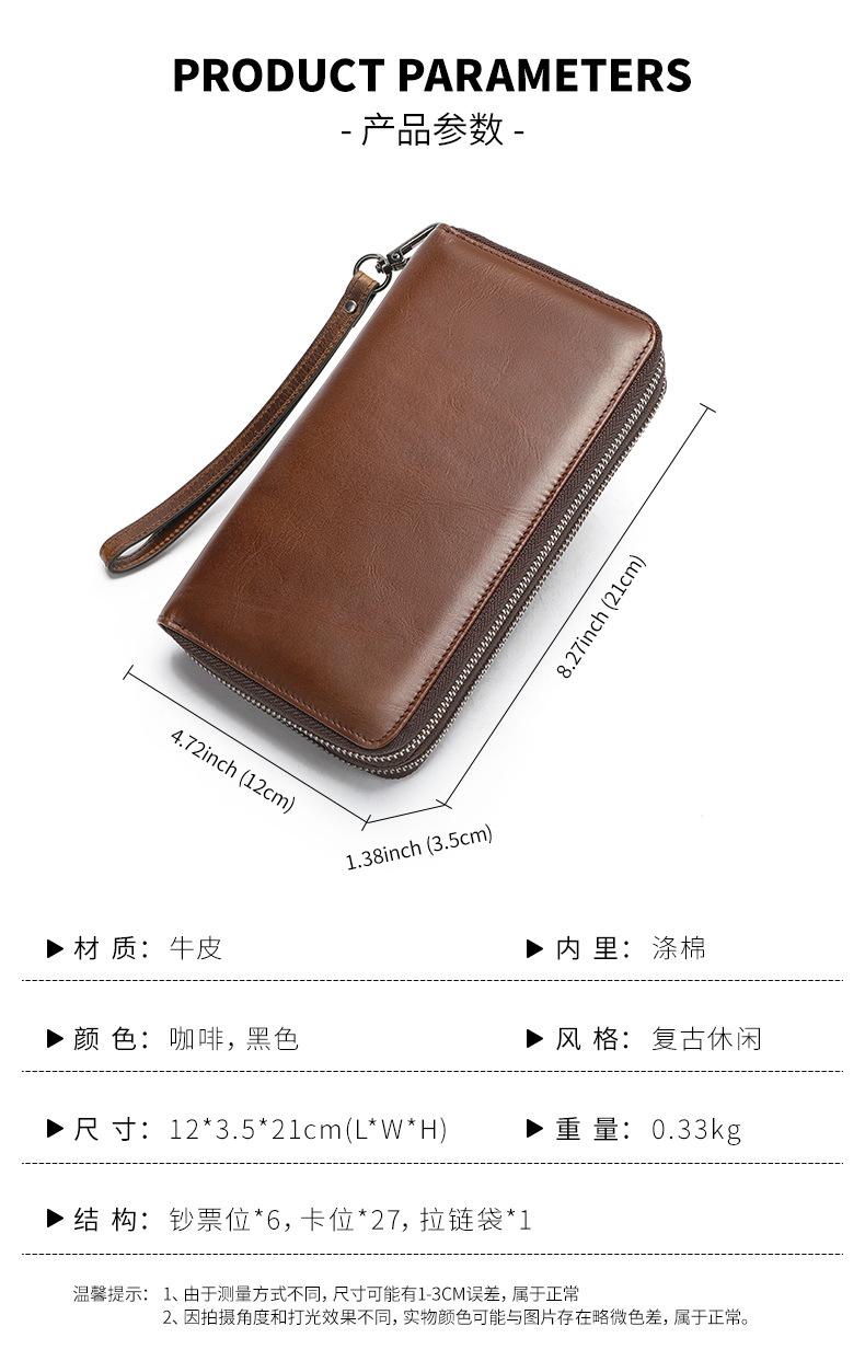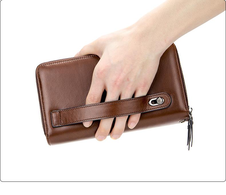 Cartera de negocios al por mayor para hombre, bolso de mano de piel de vaca de capa superior larga, monedero con cremallera de doble capa, monedero para hombre 9069