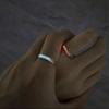 Anillo abierto de acero inoxidable con tira vertical cruzada de color, estilo japonés y coreano, con marcado personalizado, para niñas, estilo refinado.