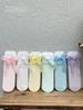 Calcetines para niños, primavera y verano, de malla fina, transpirables, con lazo de color caramelo, de longitud media, de algodón.
