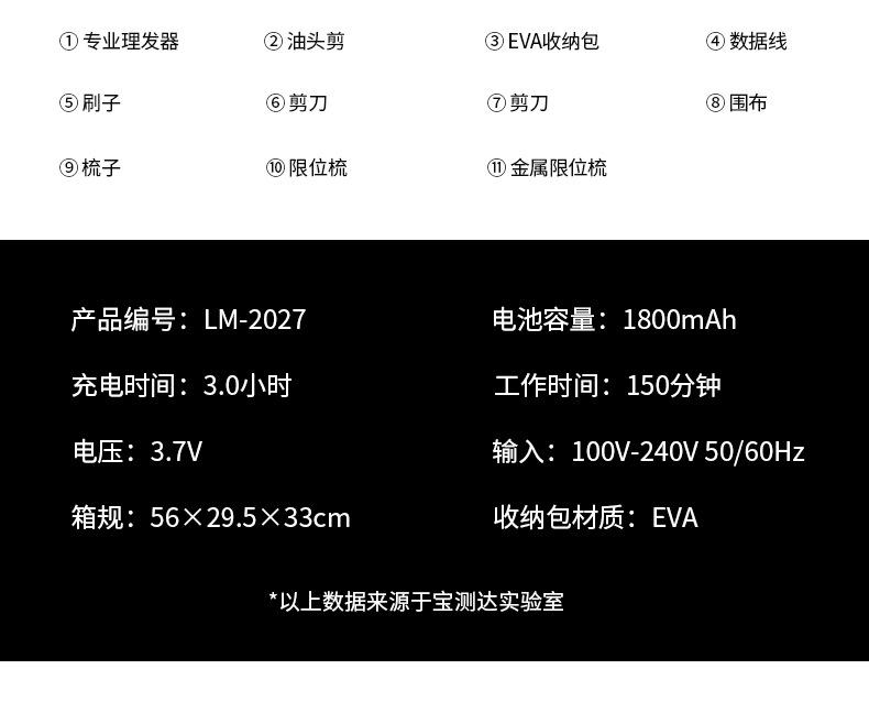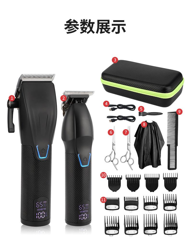 Accesorios incluidos: máquinas grandes y pequeñas para madre e hijo + cable de carga USB * 2 + peine guía para máquina grande * 8 + peine guía para máquina pequeña * 4 + cepillo de limpieza * 1 + peine de peluquería * 1 + delantal negro * 1 + tijeras * 2