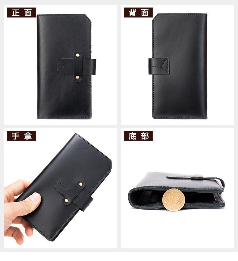 Venta directa de fábrica, billetera larga de cuero genuino para hombre, primera capa de piel de vaca, billetera de negocios negra, bolso de mano cuadrado horizontal