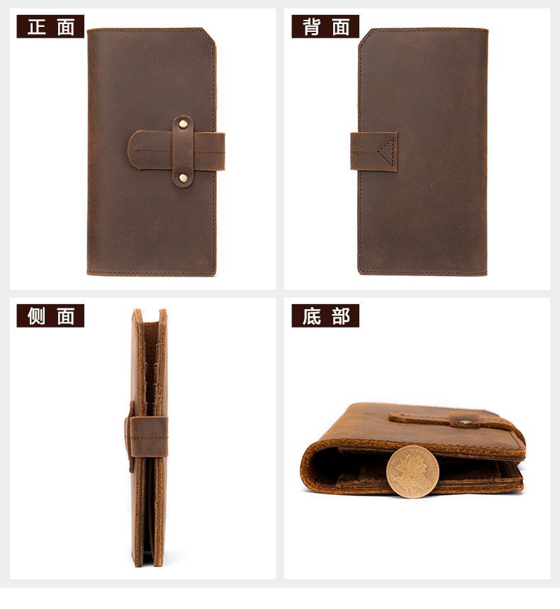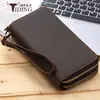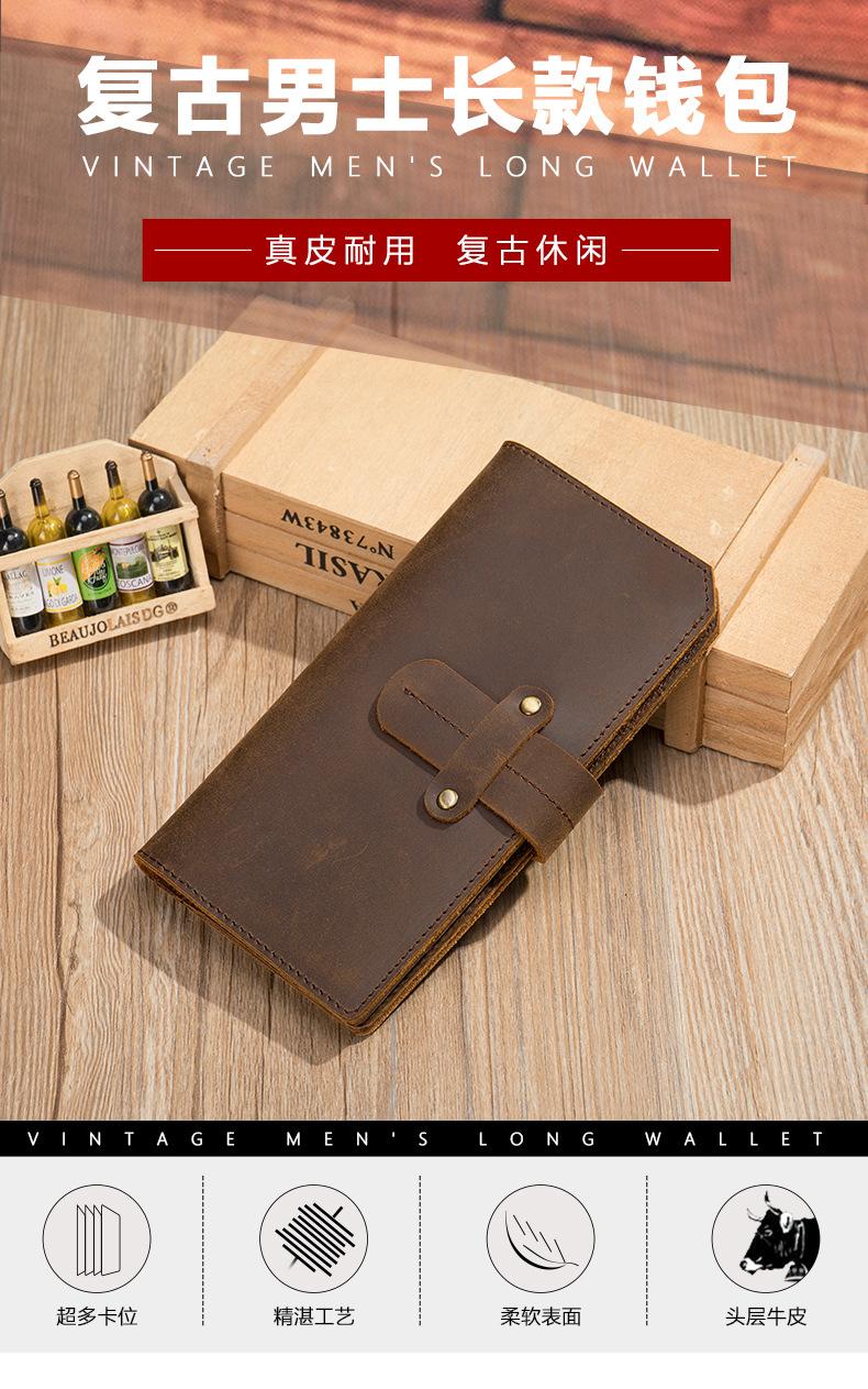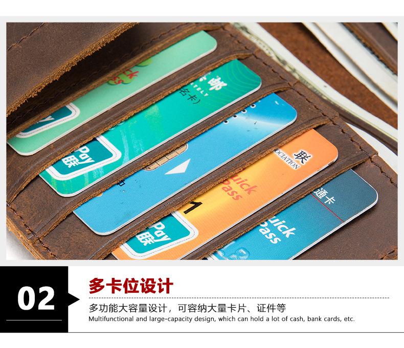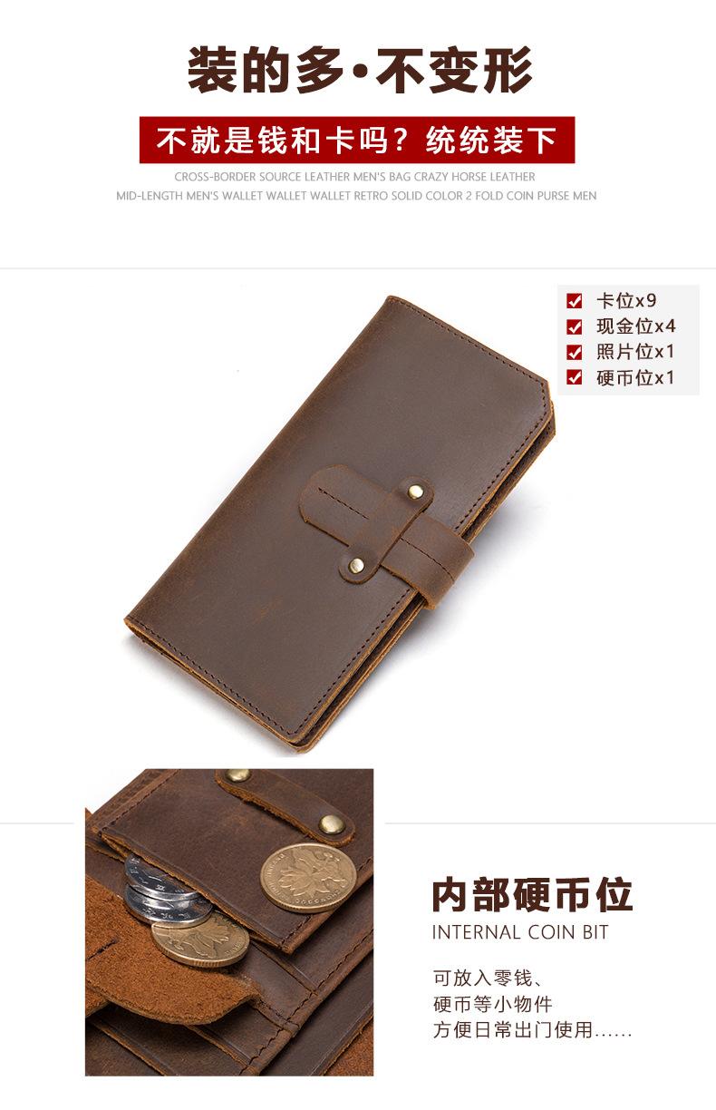 Cartera de hombre con dos bolsillos, billetera larga con ranuras para múltiples tarjetas, bolso de mano de cuero genuino para hombre, bolso de mano, negocio de suministro transfronterizo