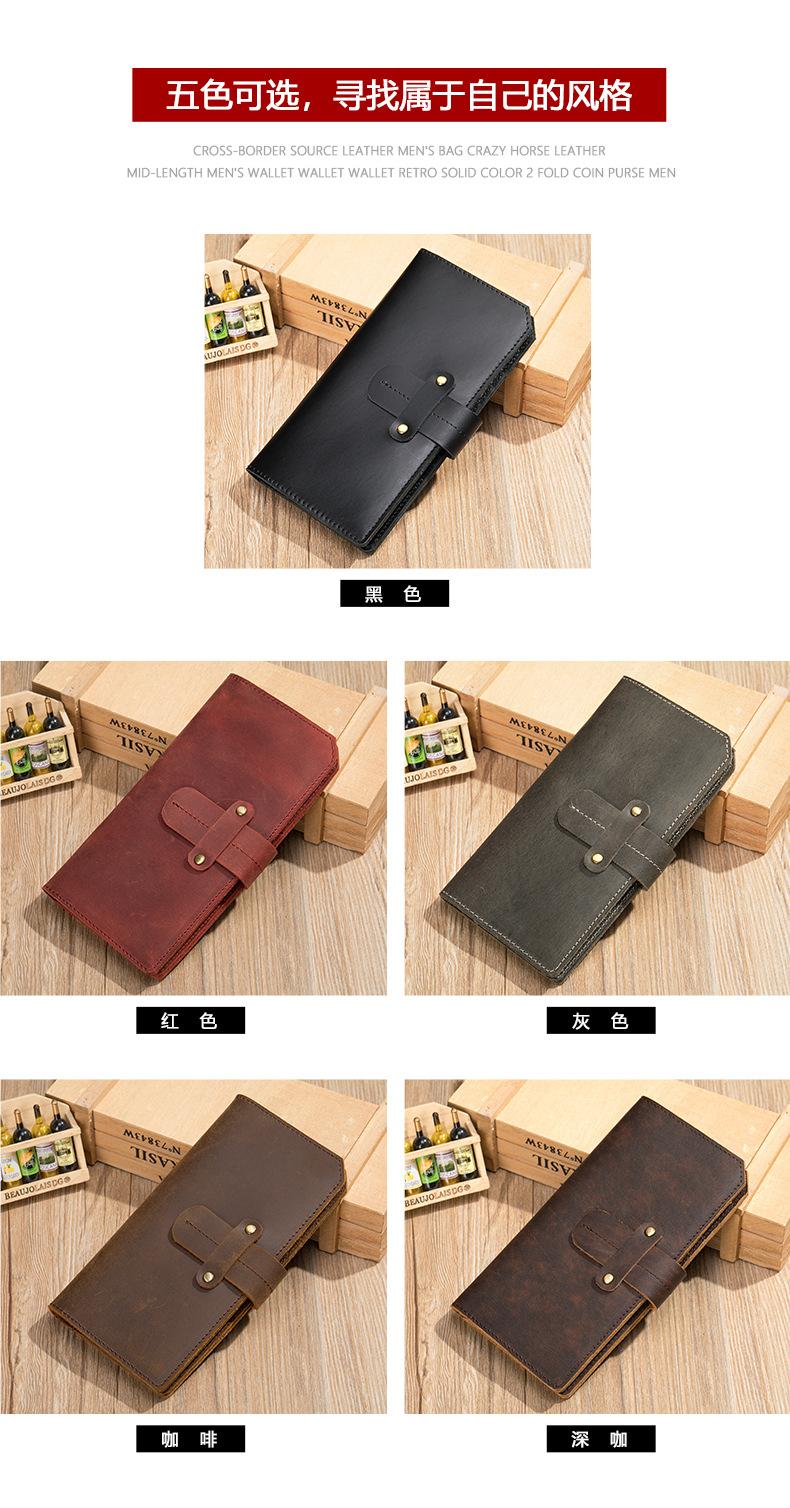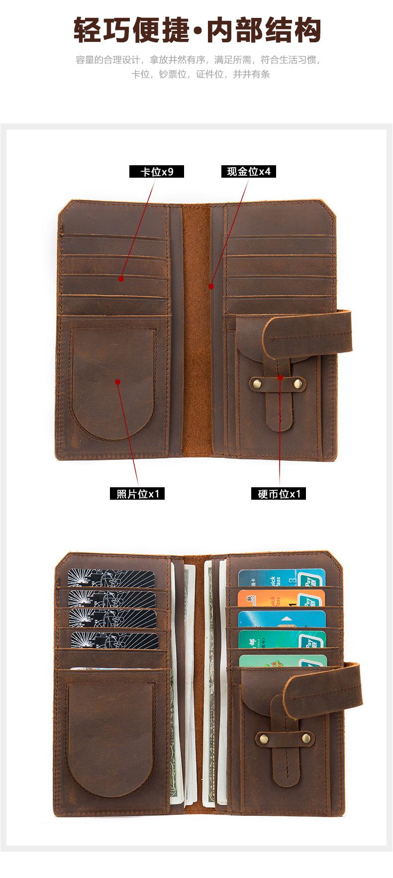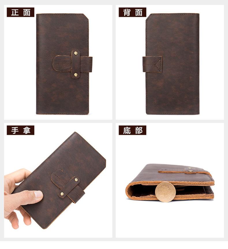 Cartera de hombre con dos bolsillos, billetera larga con ranuras para múltiples tarjetas, bolso de mano de cuero genuino para hombre, bolso de mano, negocio de suministro transfronterizo