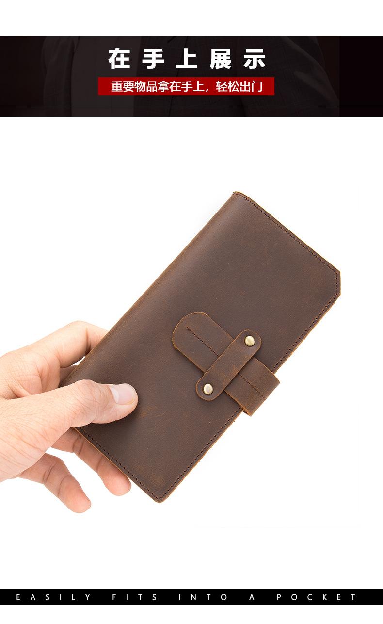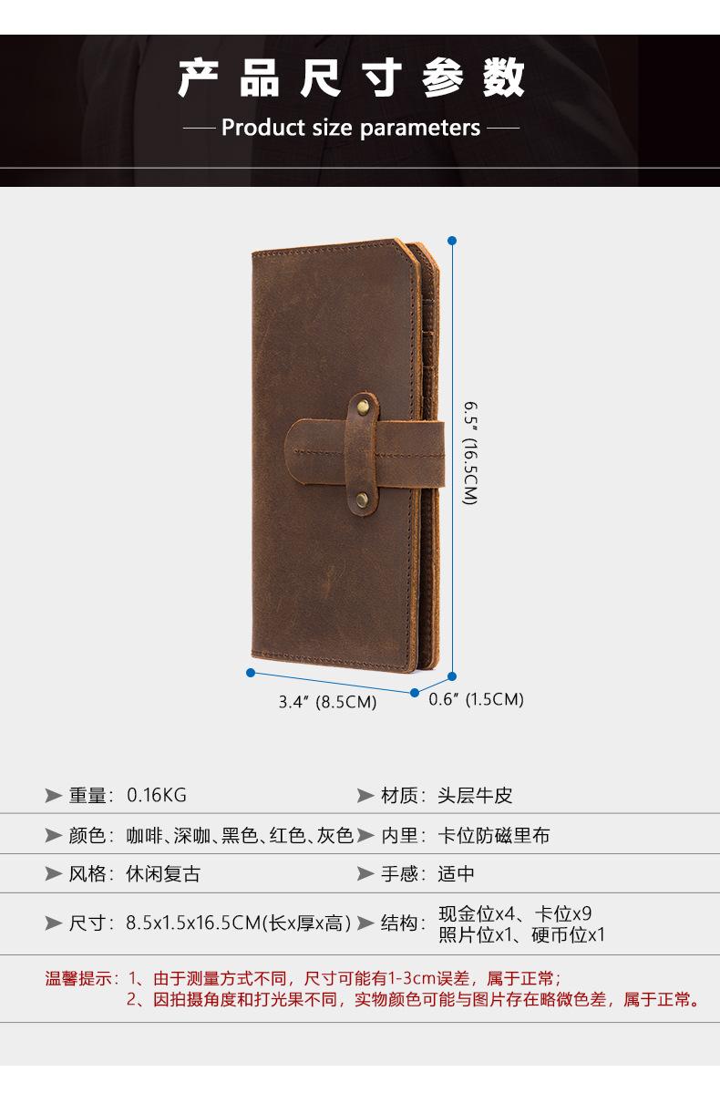 Cartera de negocios al por mayor para hombre, bolso de mano de piel de vaca de capa superior larga, monedero con cremallera de doble capa, monedero para hombre 9069