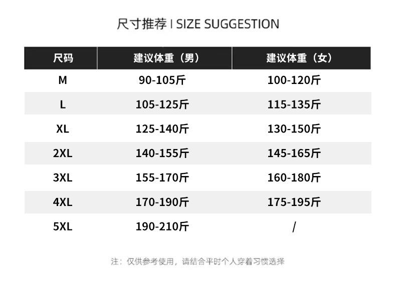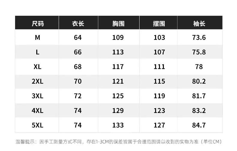 M, L, XL, 2XL, 3XL, 4XL, 5XL