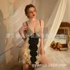Hermoso pijama nuevo y sexy con tirantes de hilo, traje de noche sexy con perspectiva de encaje en V profundo, pijama sexy para mujer
