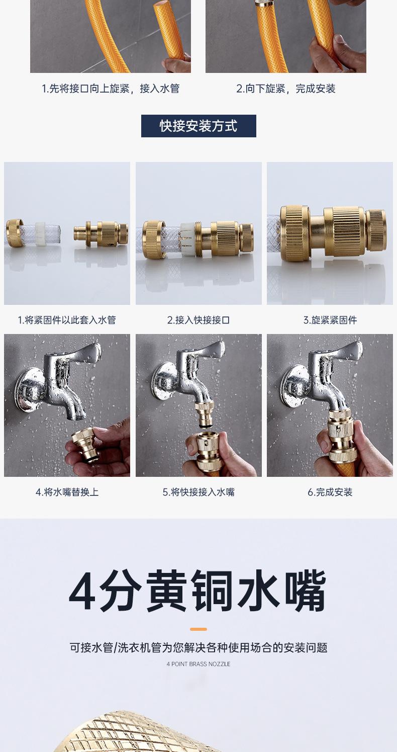 Conector de cobre para tubería de agua, adaptador de grifo para lavado de autos, boquilla de cobre de 4 puntos, inyección directa, descarga a alta presión