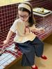 Conjunto de camiseta con cuello de encaje XY251374 y pantalón corto con bolsillo Love XK251375 para niñas, novedad de verano 2025
