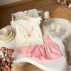 XQ251387 Falda para niñas 2025, chaleco de encaje de verano, falda para niñas, estilo occidental, lindo vestido de conejo