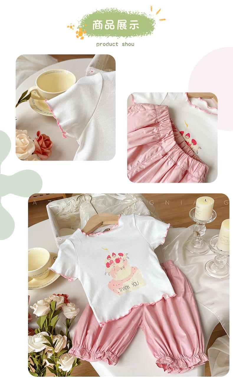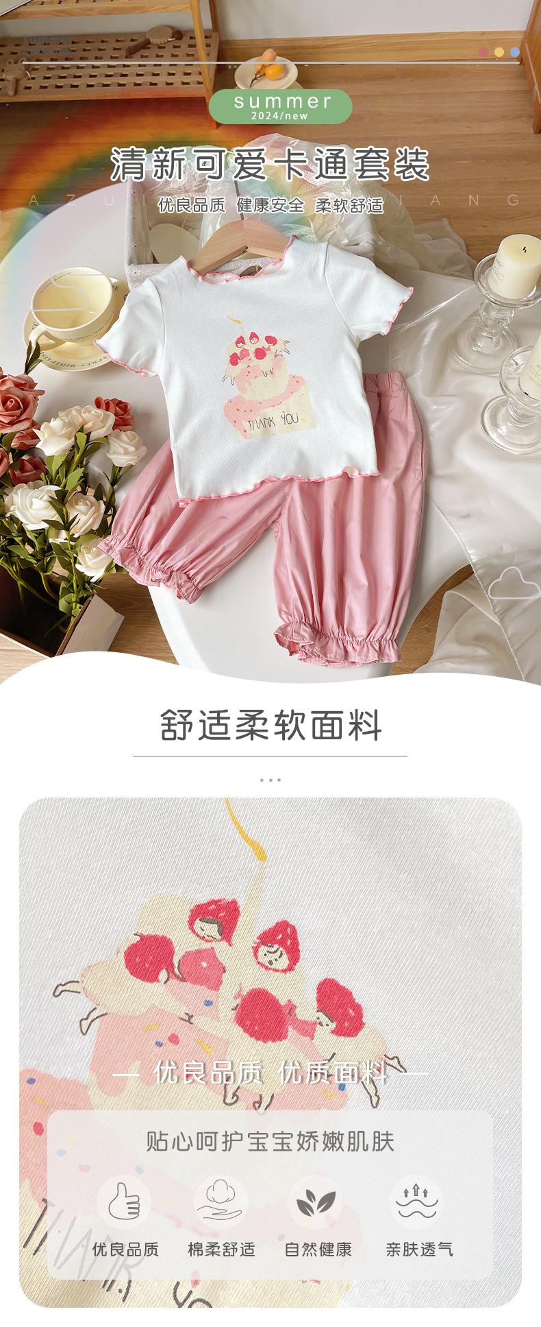 [Stock Listo] Traje para Niñas 2024 Verano Nuevo Traje para Niños Bebé Dibujos Animados Camiseta con Volantes Pantalones