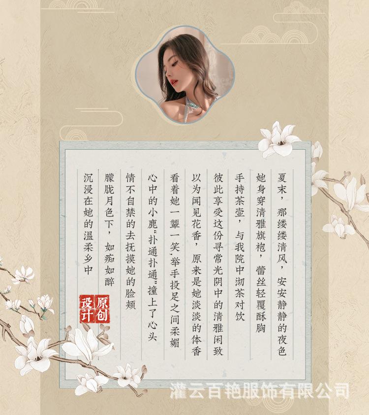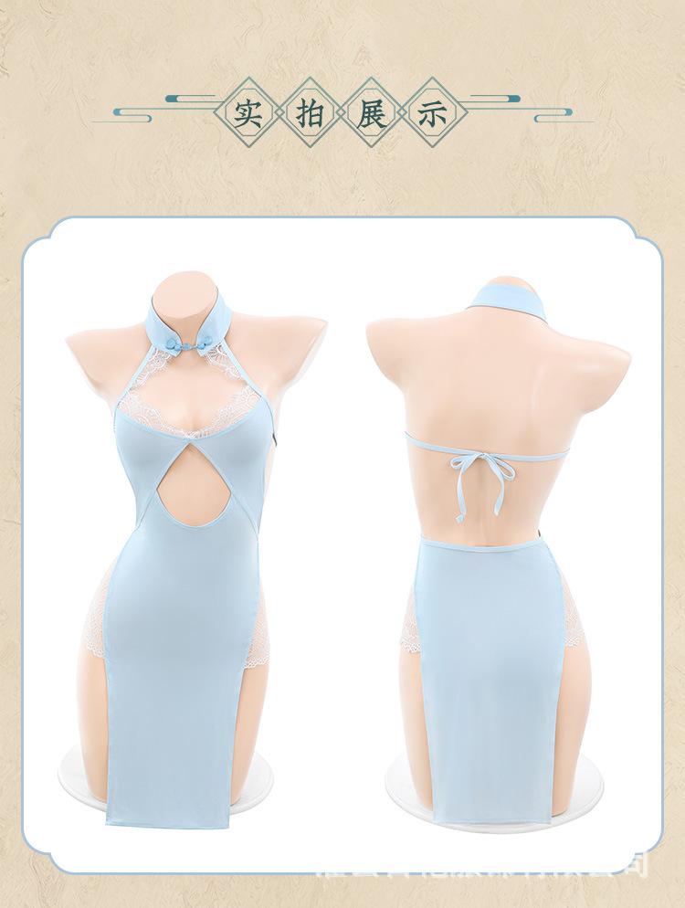 Lencería sexy con aberturas laterales en el pecho de seda helada, cheongsam, pasión, tentación, coqueteo, uniforme sexy 5391