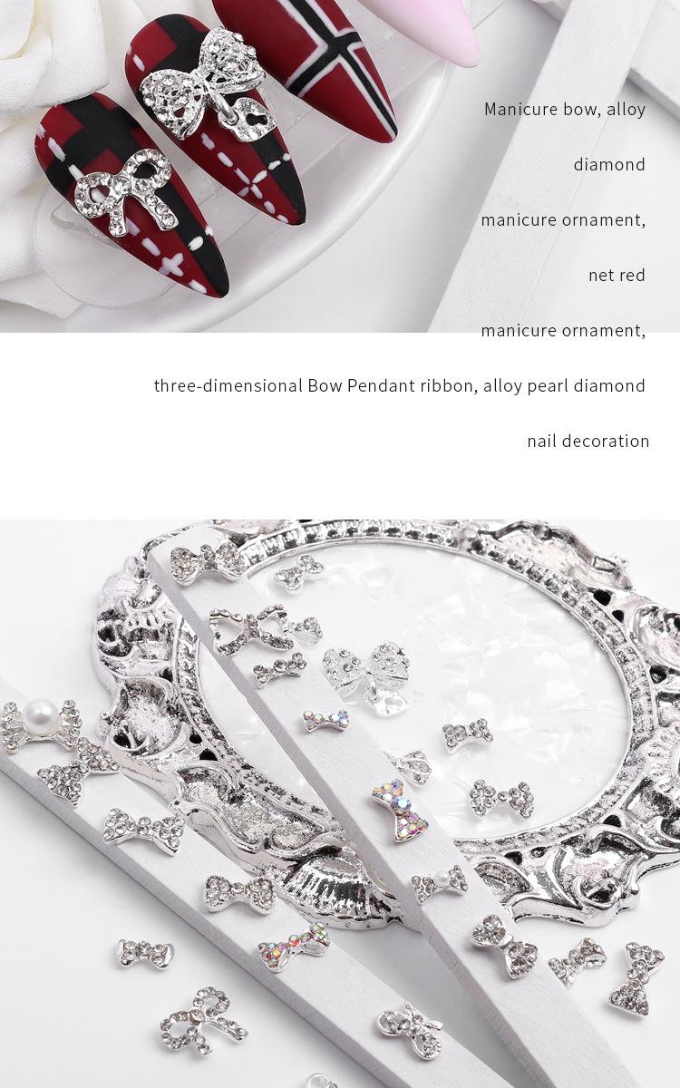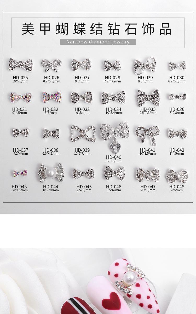 Joyería al por mayor para uñas Lazo Joyería de aleación para arte de uñas Lazo con incrustaciones de perlas Diamante Arte de uñas Diamante Hd-025