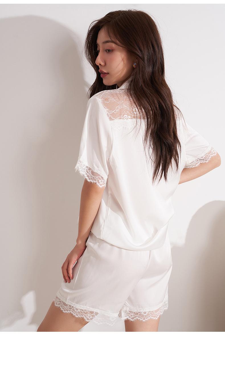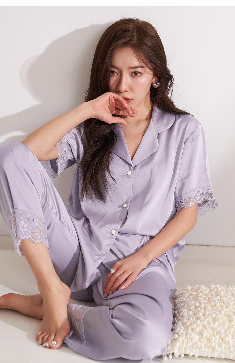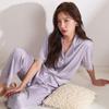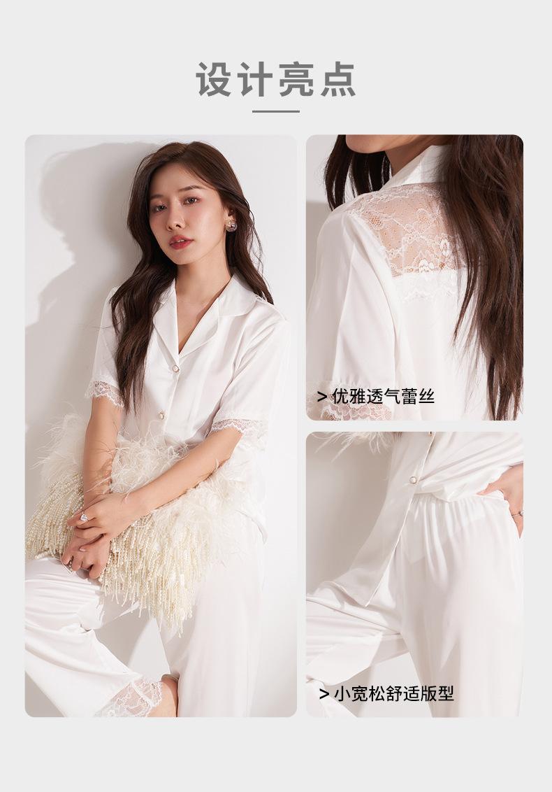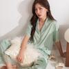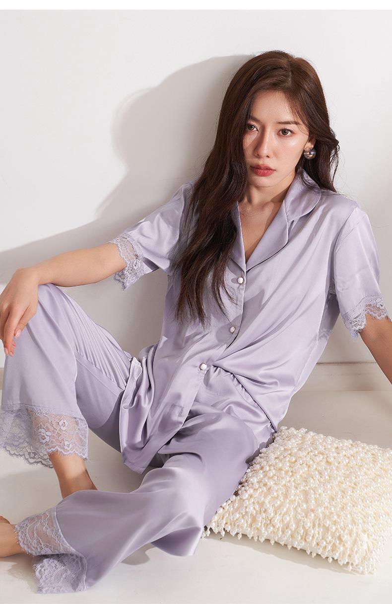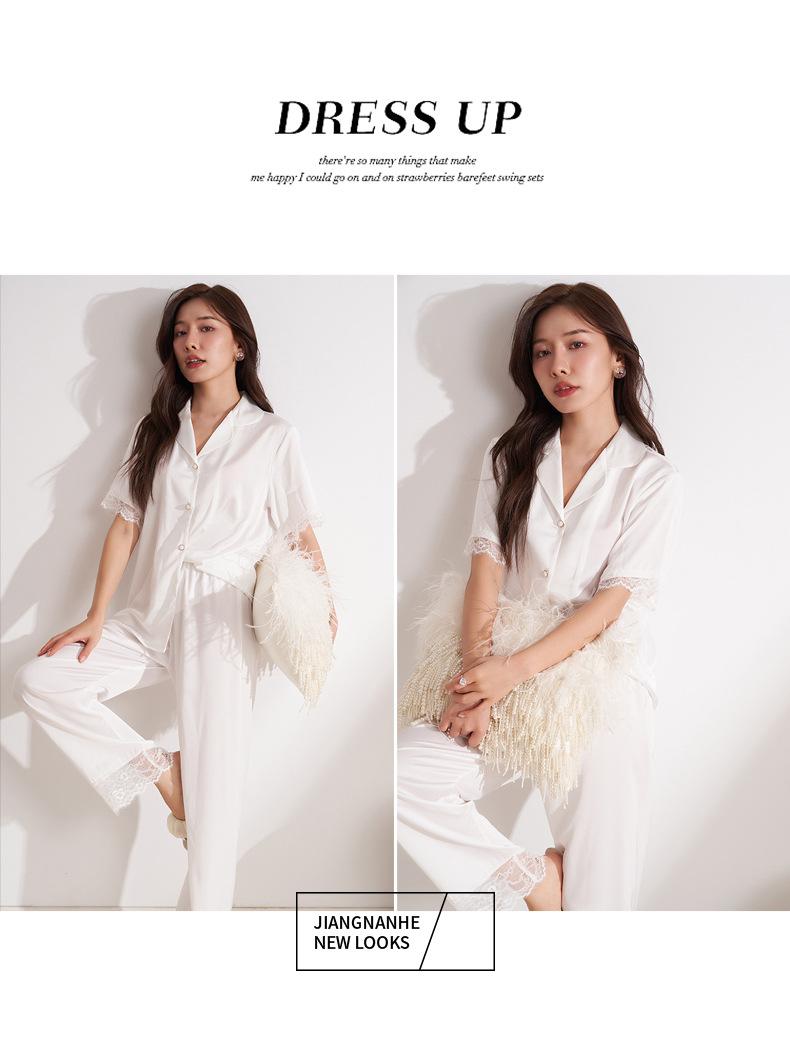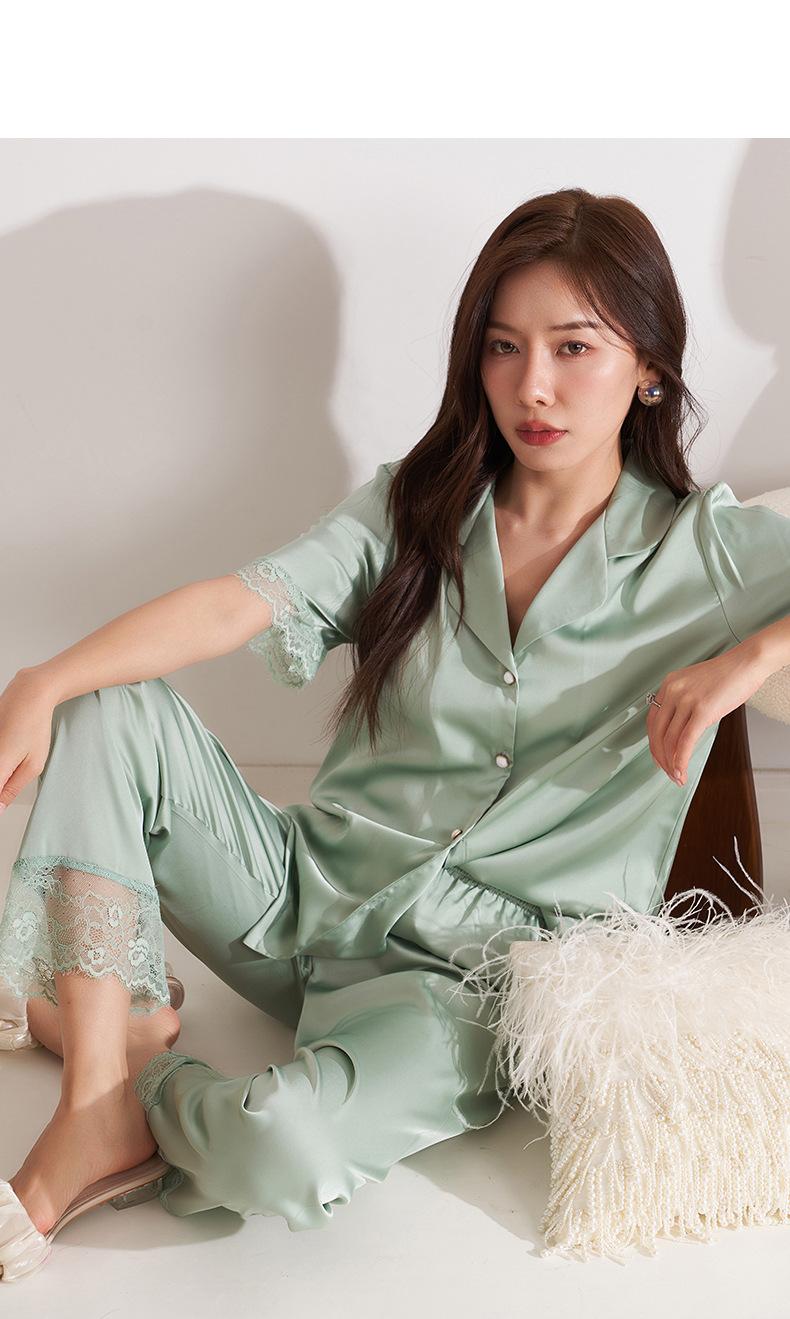 Pijama de seda de hielo 2023 para mujer, de verano, con encaje fino, calado, para usar en casa, con pantalones y pantalones cortos de manga corta, conjunto de tres piezas