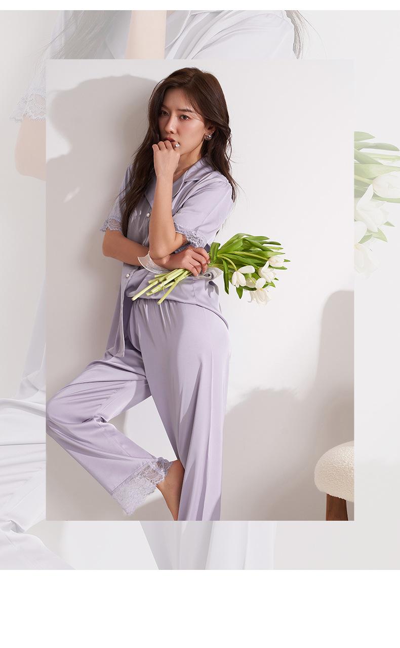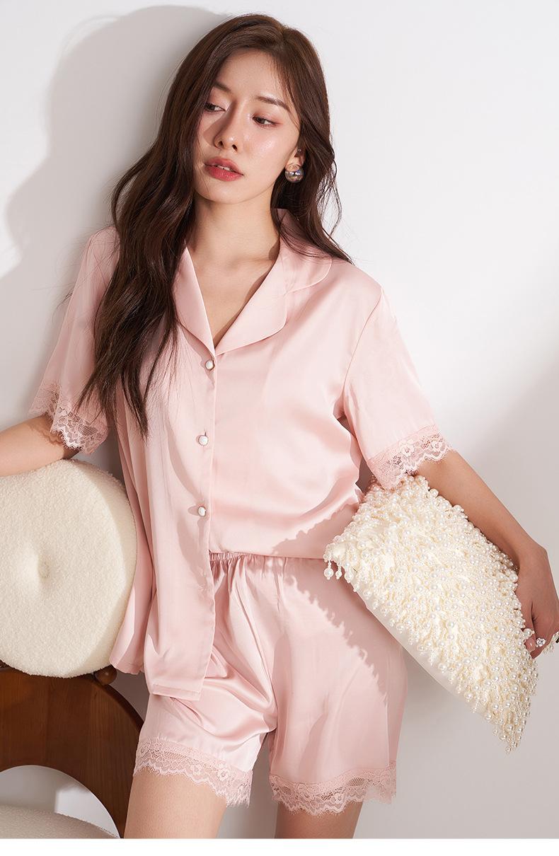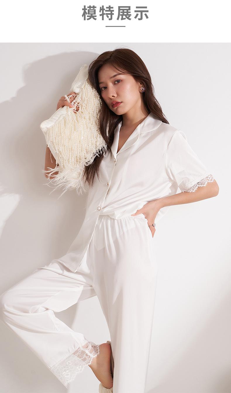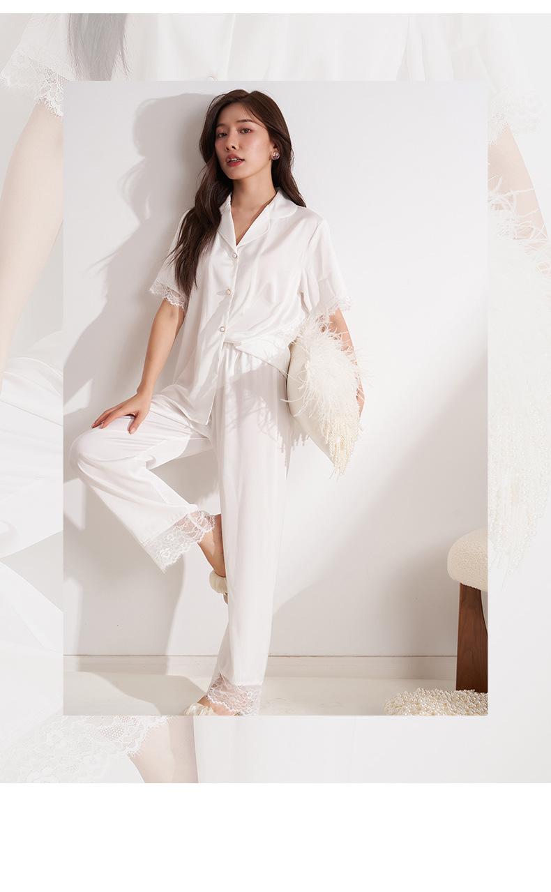Pijama de seda de hielo 2023 para mujer, de verano, con encaje fino, calado, para usar en casa, con pantalones y pantalones cortos de manga corta, conjunto de tres piezas